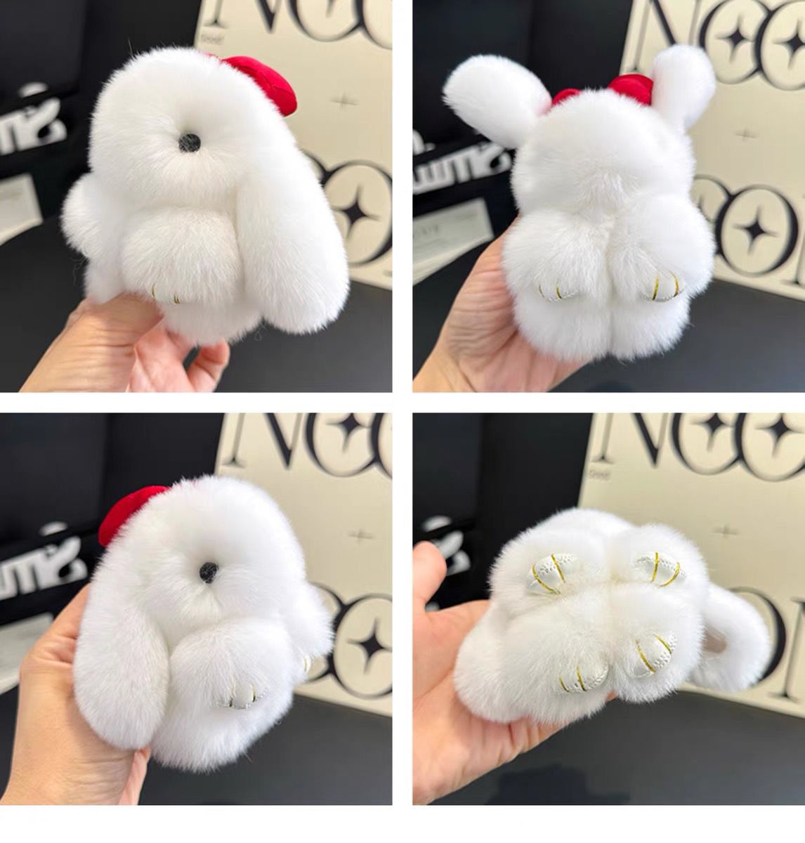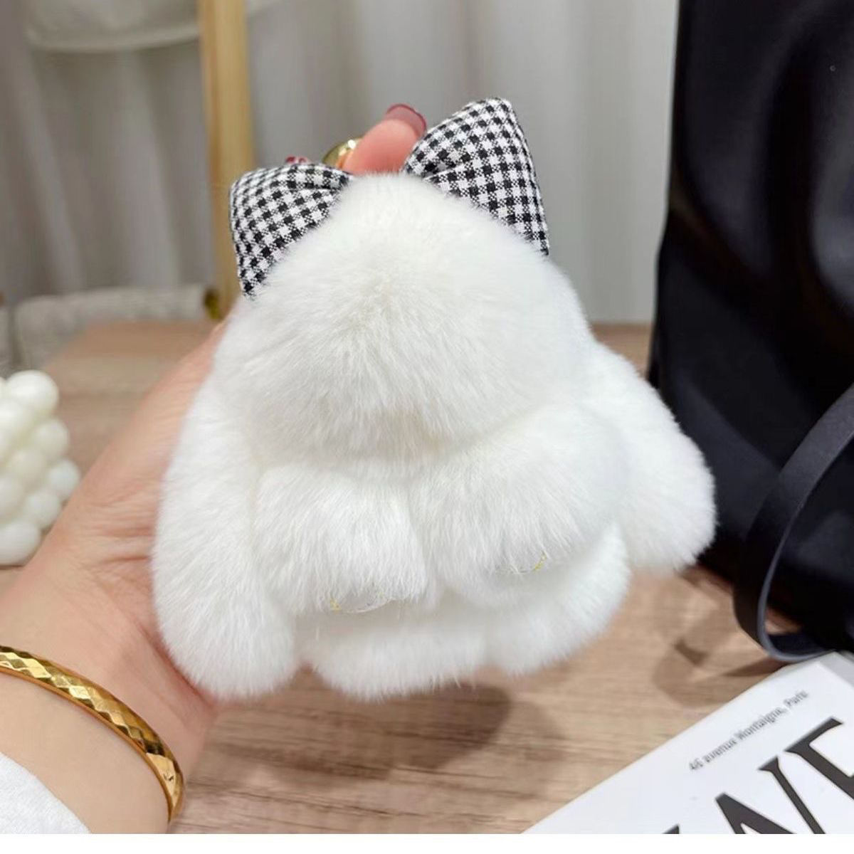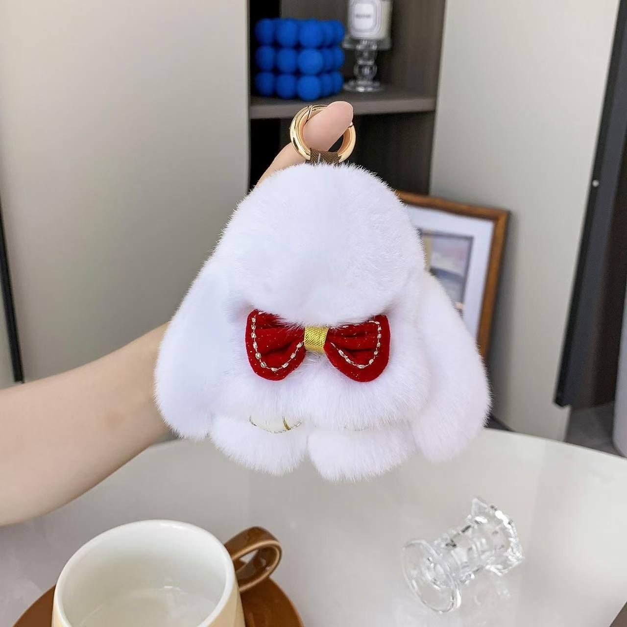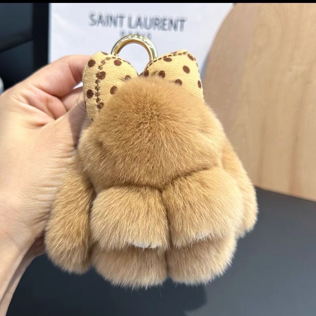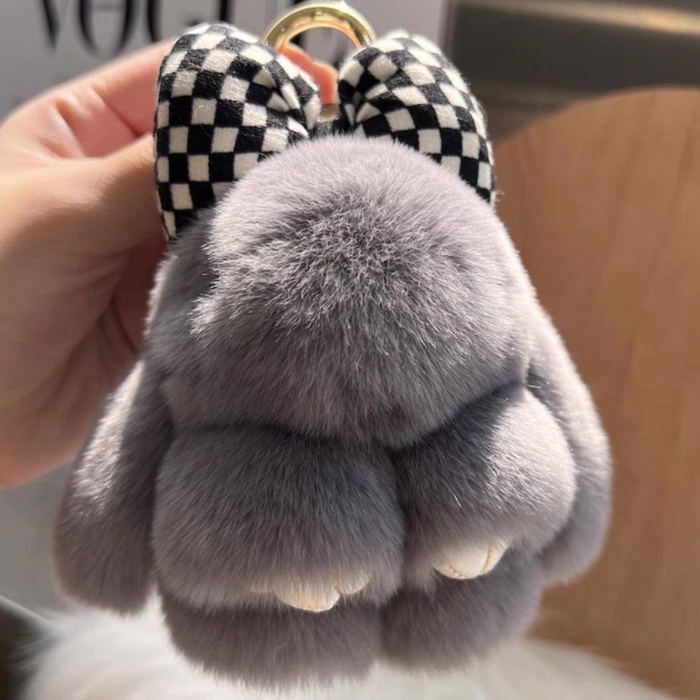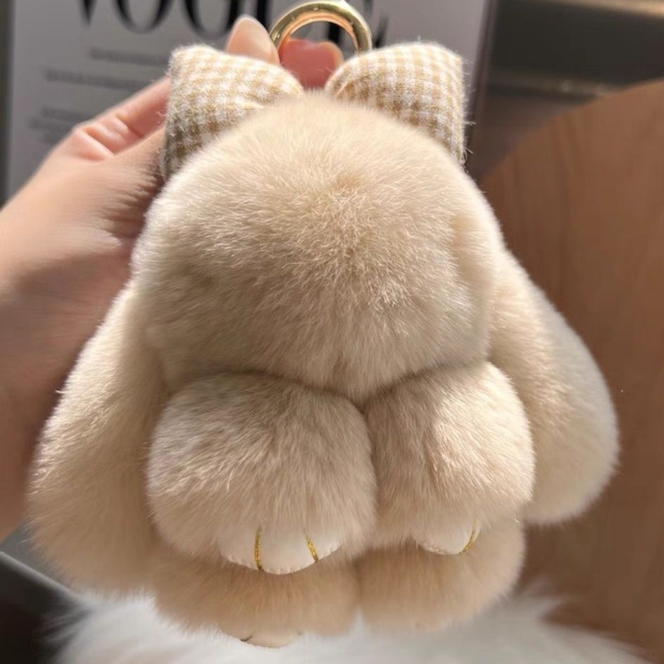 真獭兔毛蝴蝶结小车钥匙扣獭兔毛挂件礼物包包挂饰网红兔子