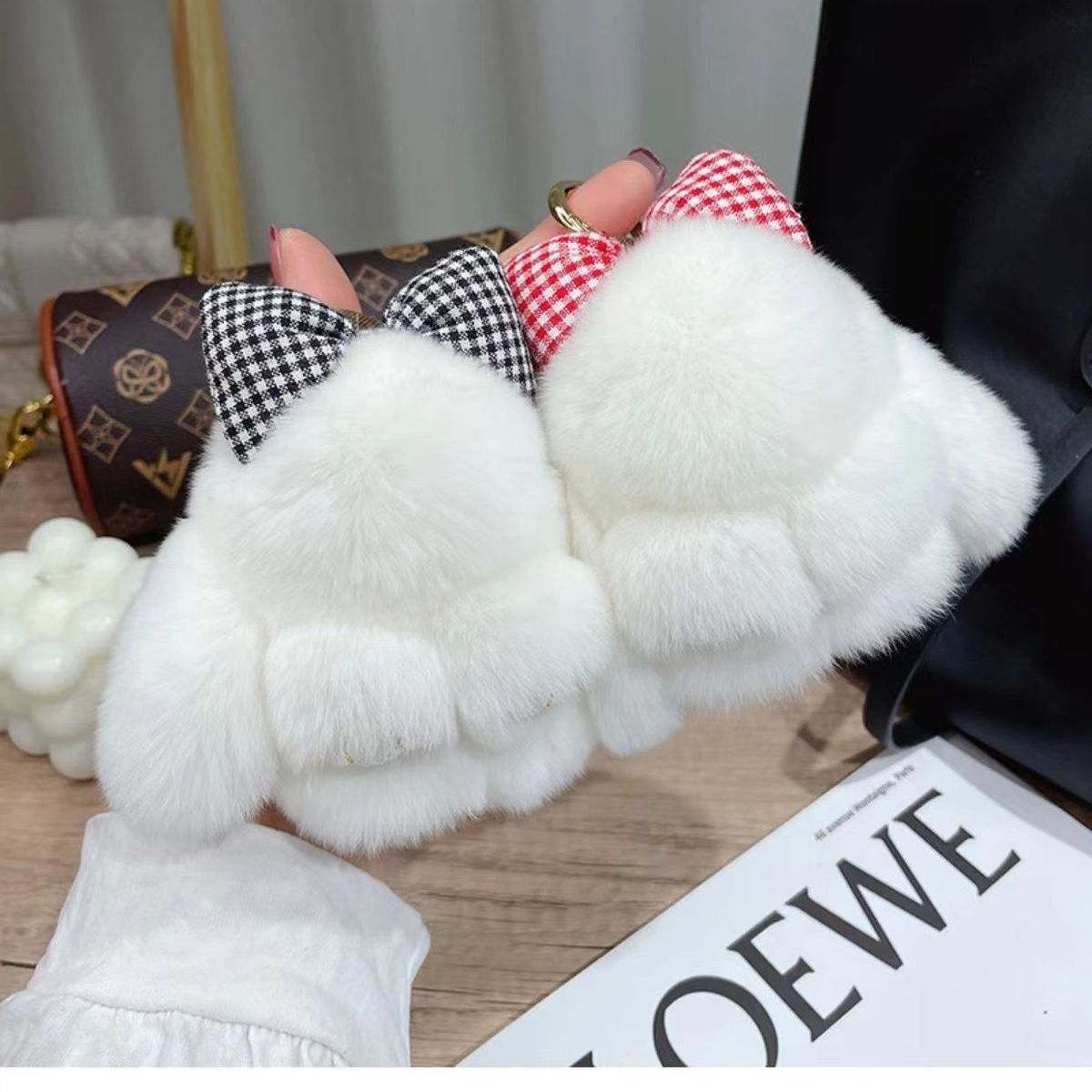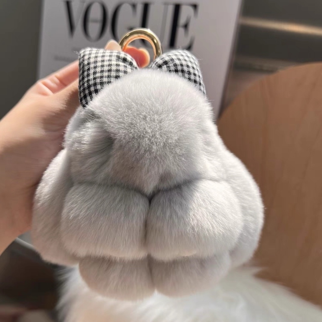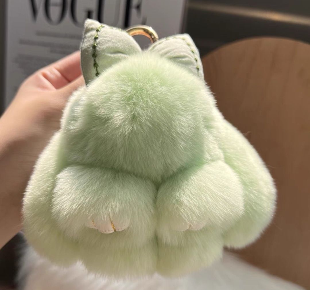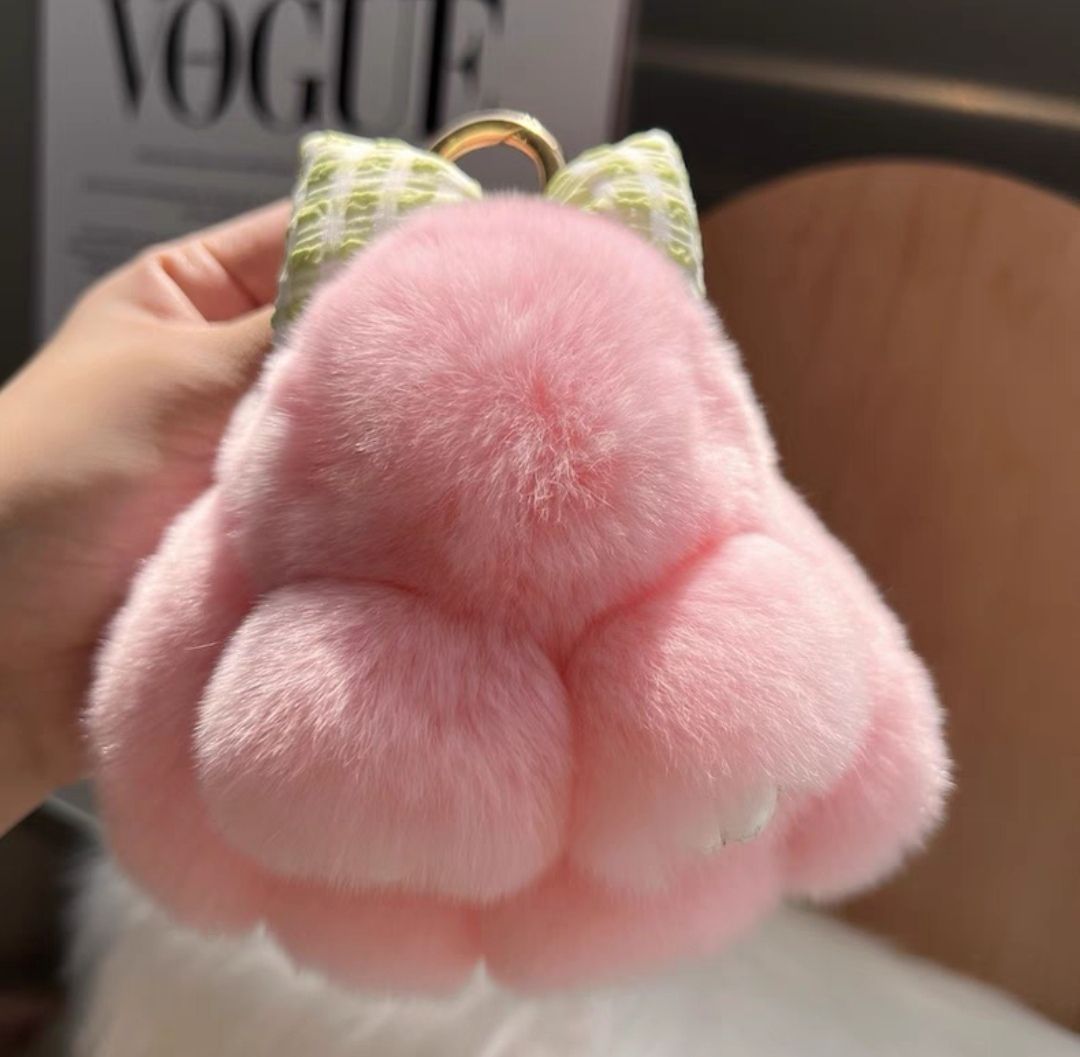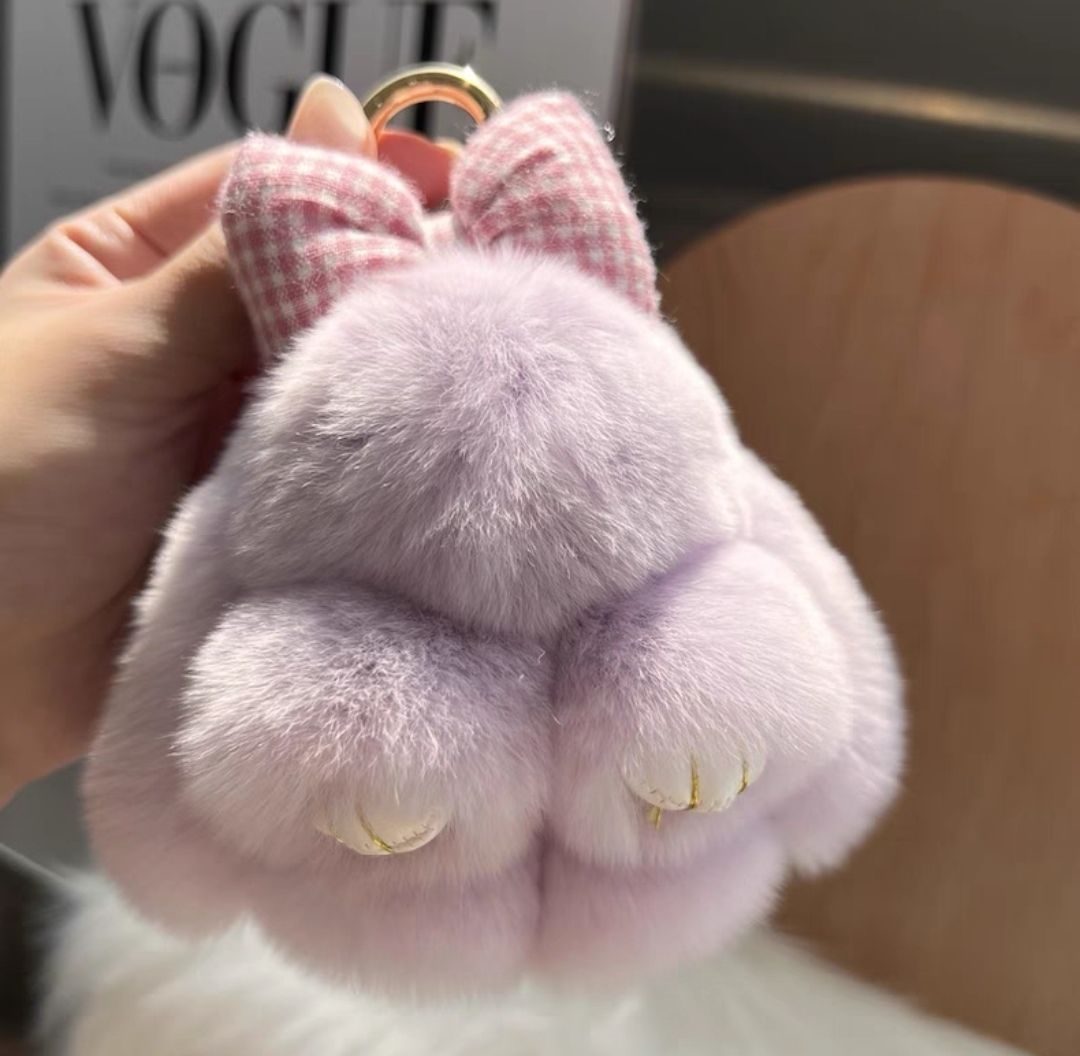 真獭兔毛蝴蝶结小车钥匙扣獭兔毛挂件礼物包包挂饰网红兔子