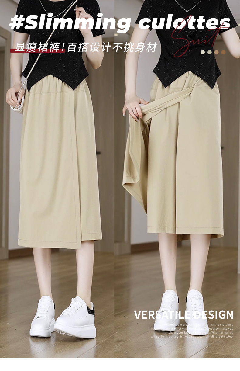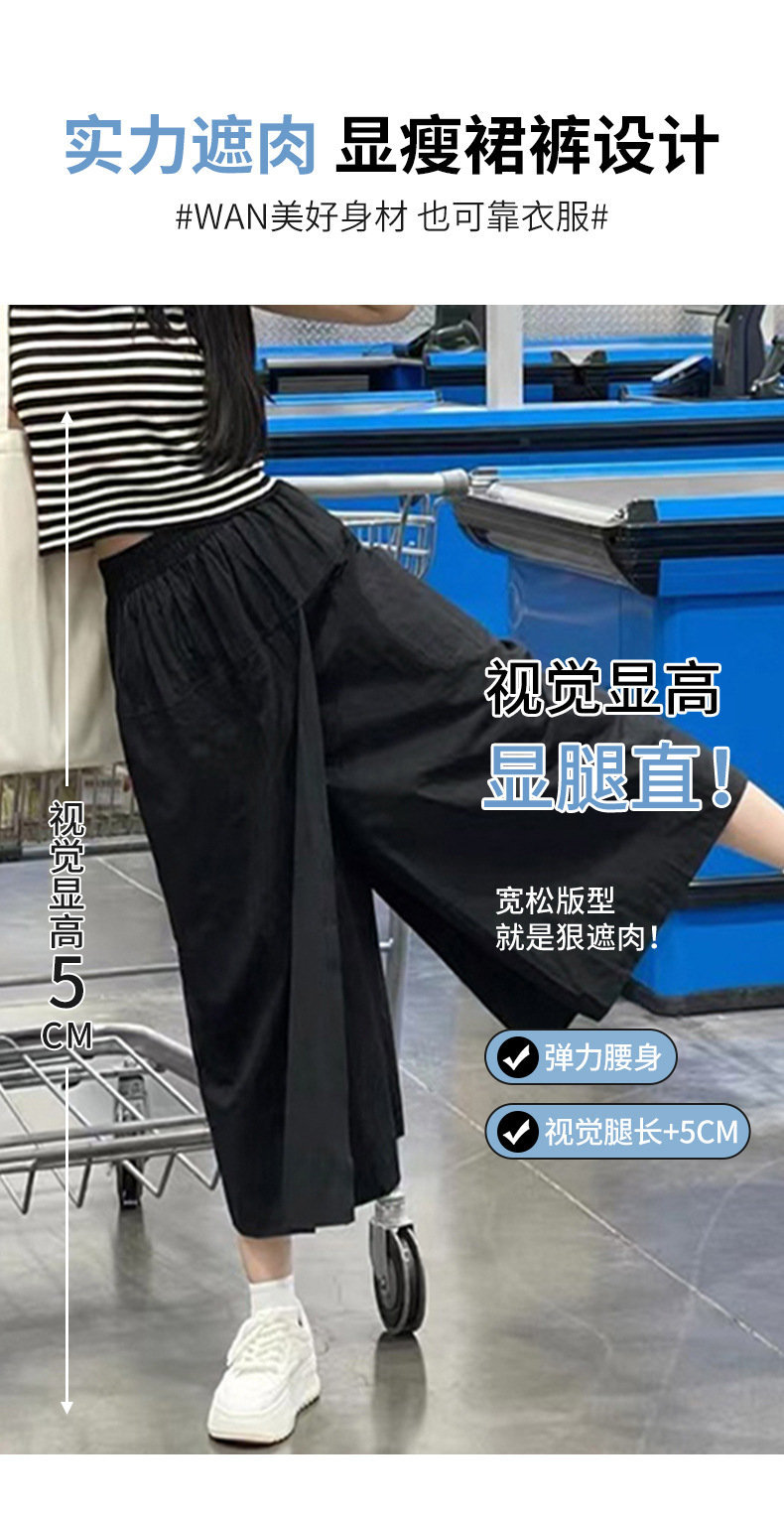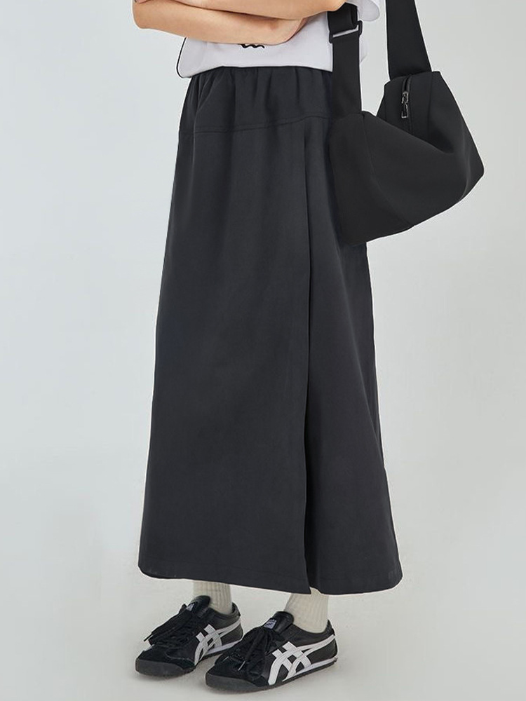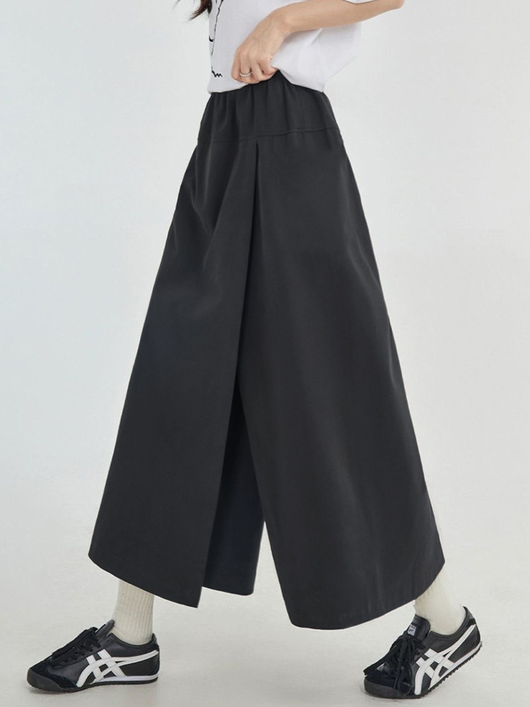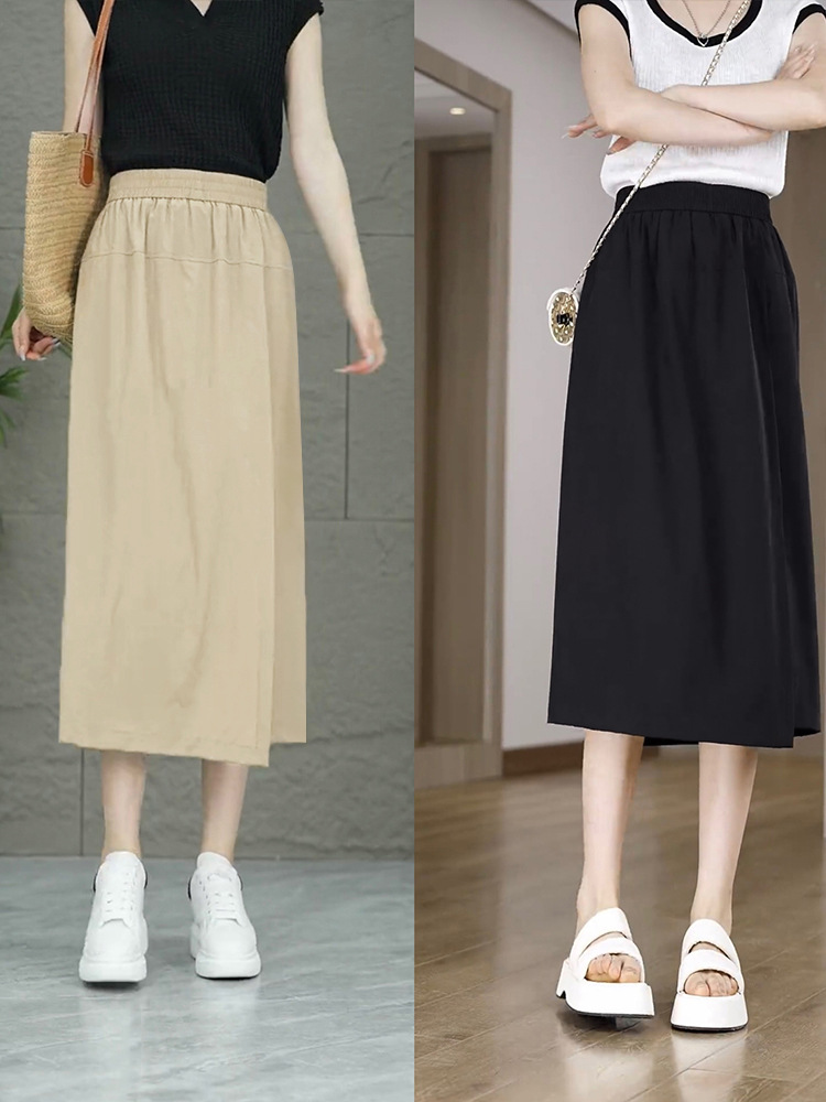 夏季山本工装半身裙裤女松紧腰显瘦A字小个子休闲中长款裙子