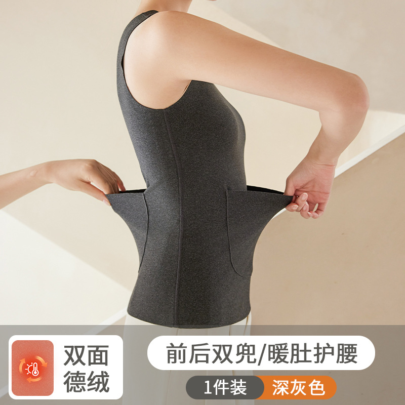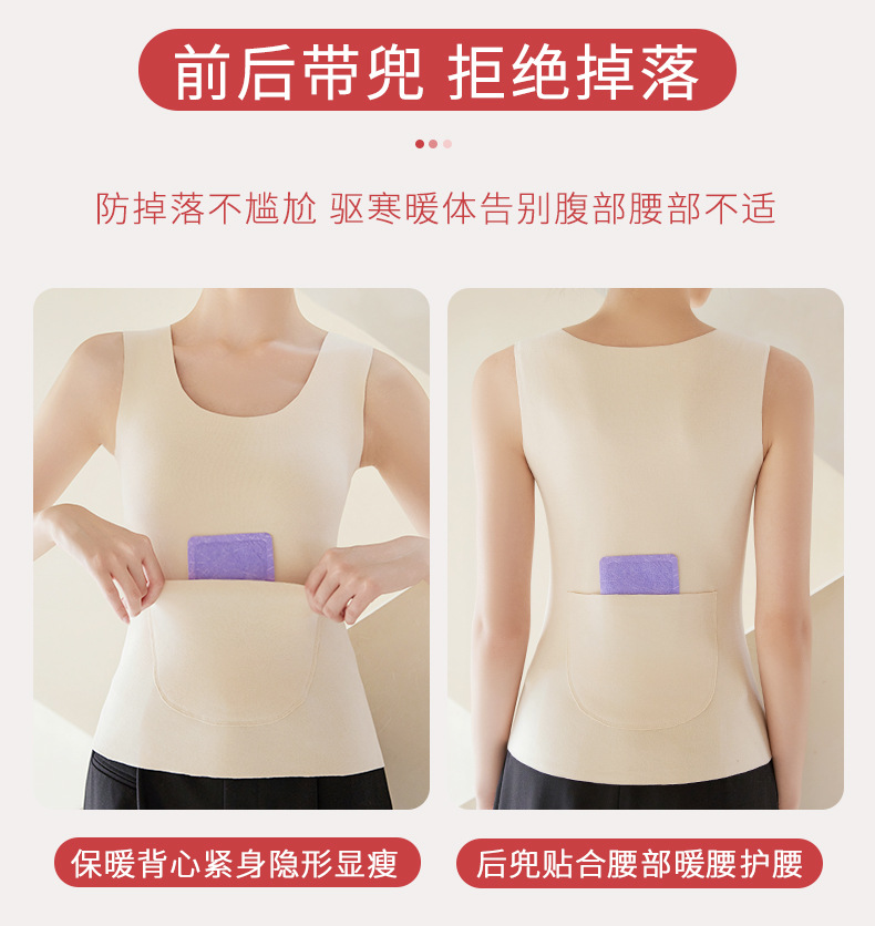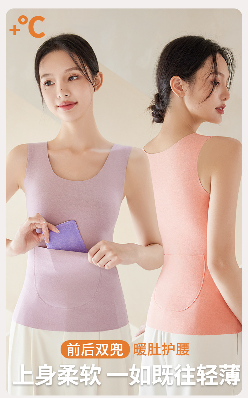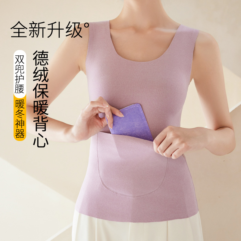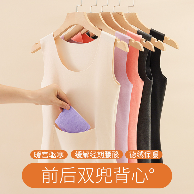 德绒保暖背心女冬季带兜护肚护腰加绒前后双兜上衣发热无痕内衣女