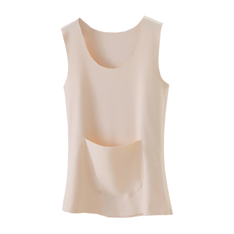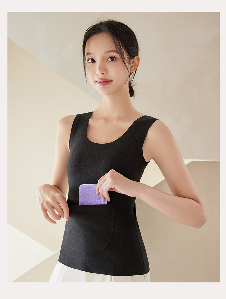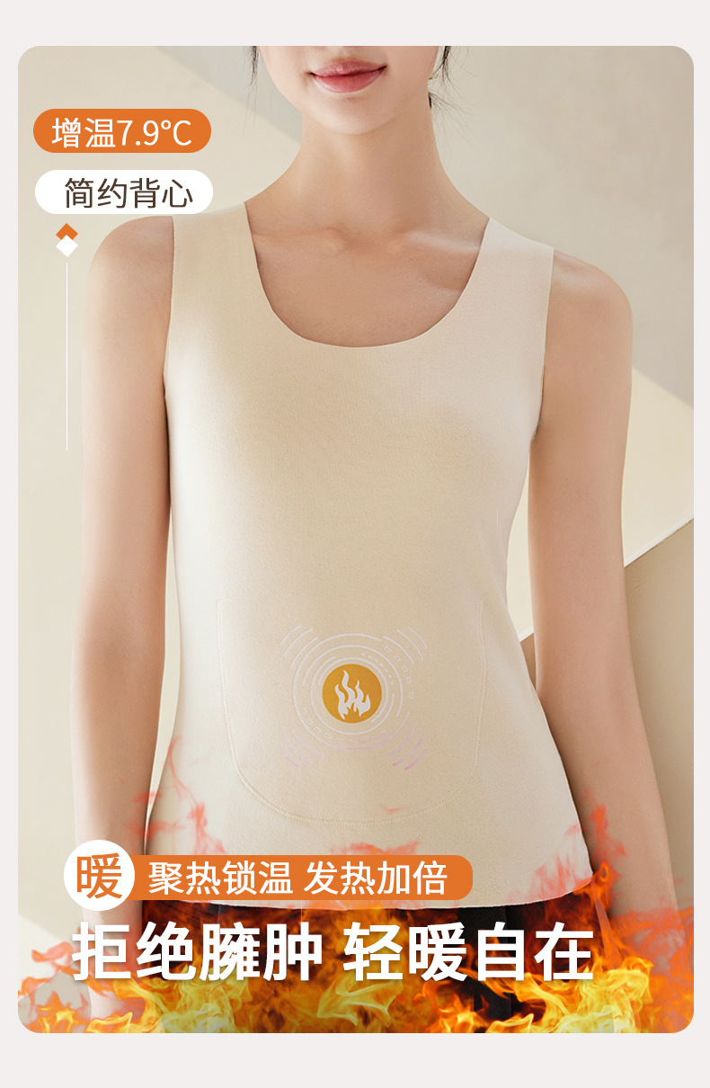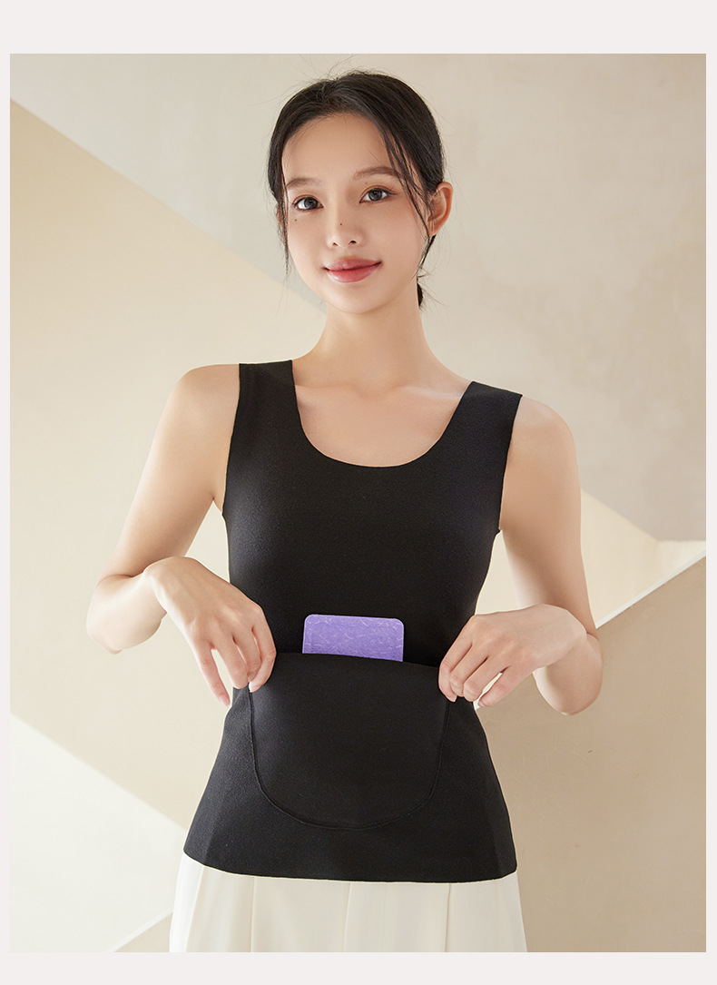 德绒保暖背心女冬季带兜护肚护腰加绒前后双兜上衣发热无痕内衣女