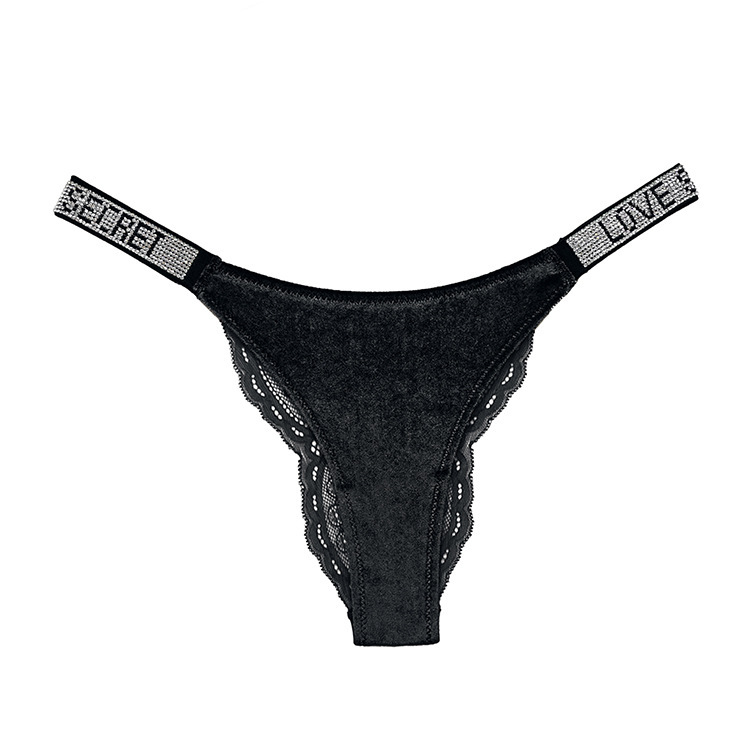 性感丝绒水钻欧美透明蕾丝秋冬时尚情趣酒红色低腰女士丁字内裤