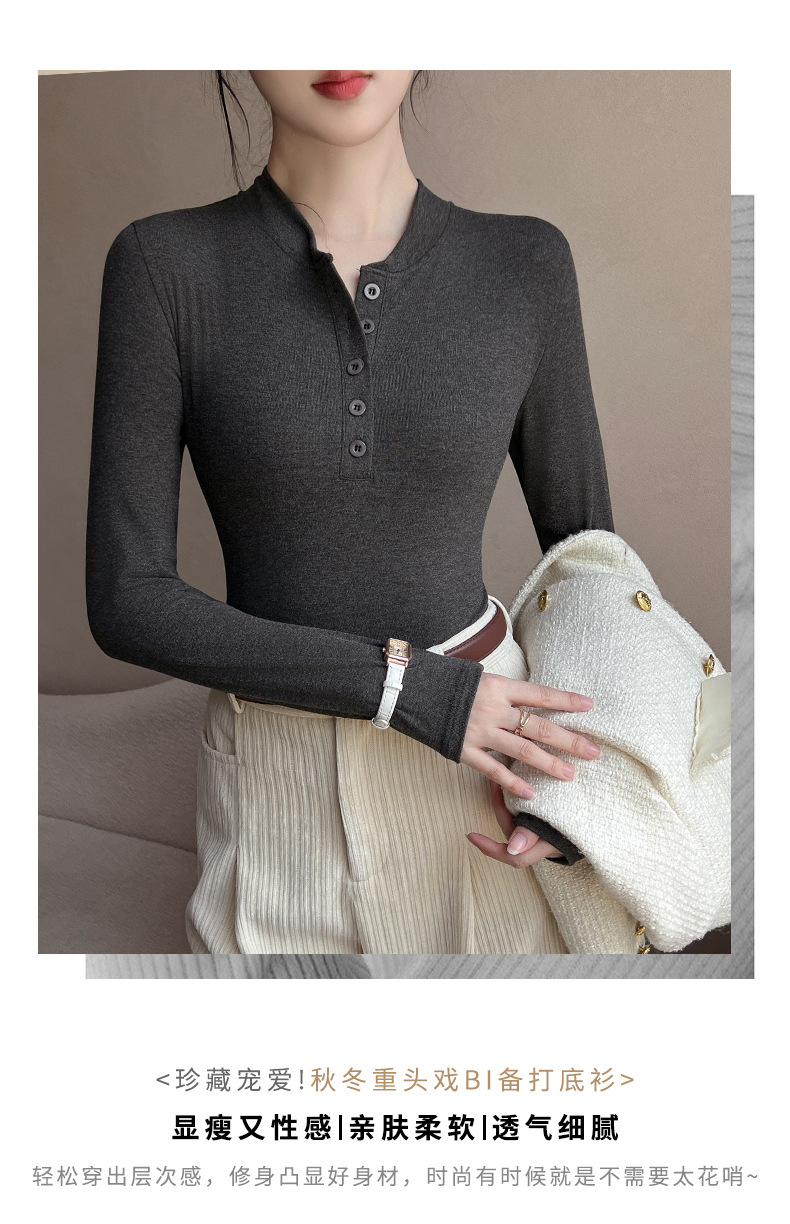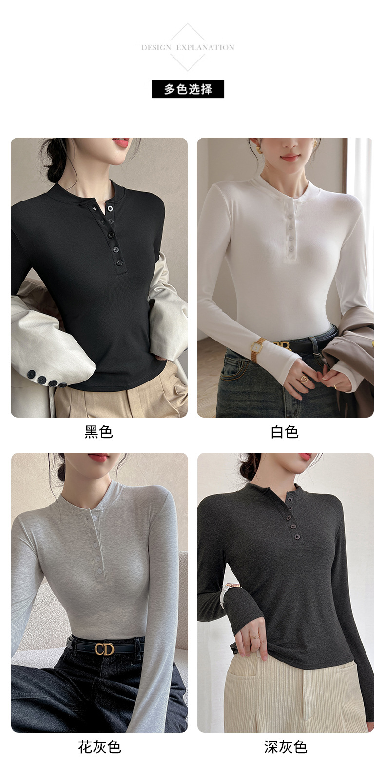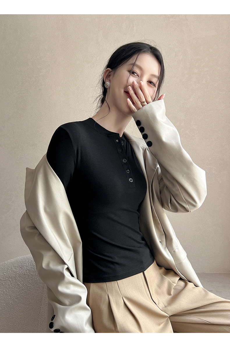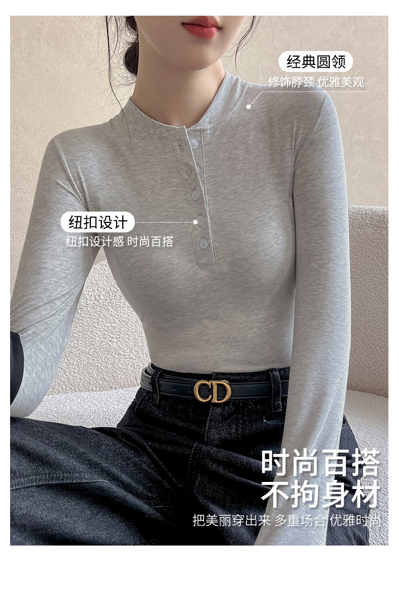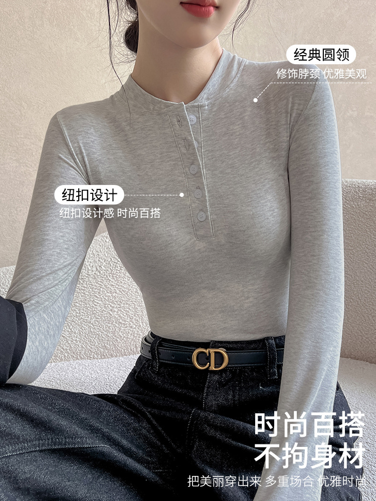 圆领单品纽扣修身显瘦25新款秋冬打底衫简约舒适亨利衫女