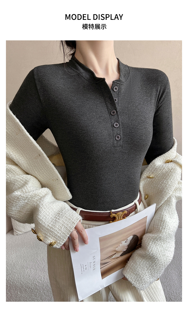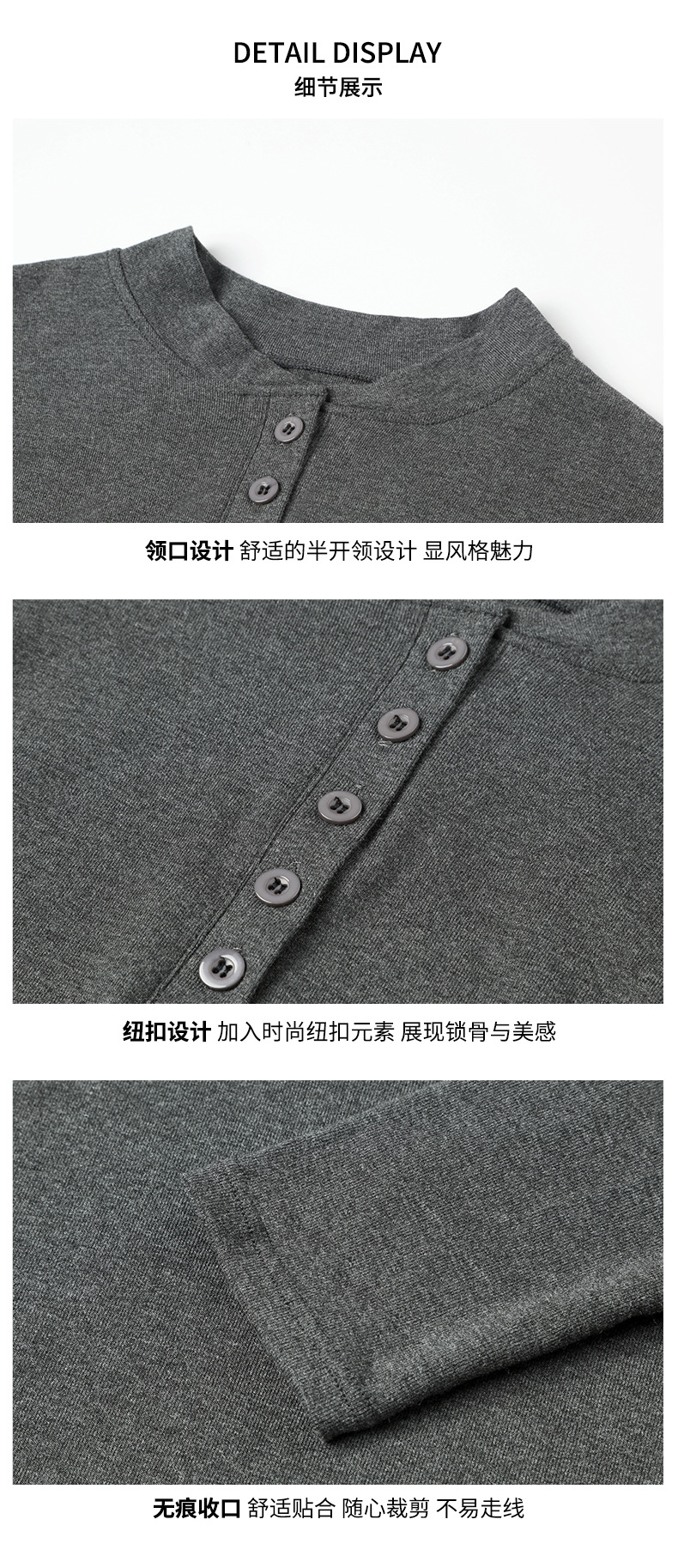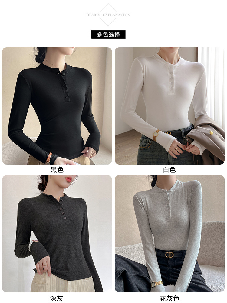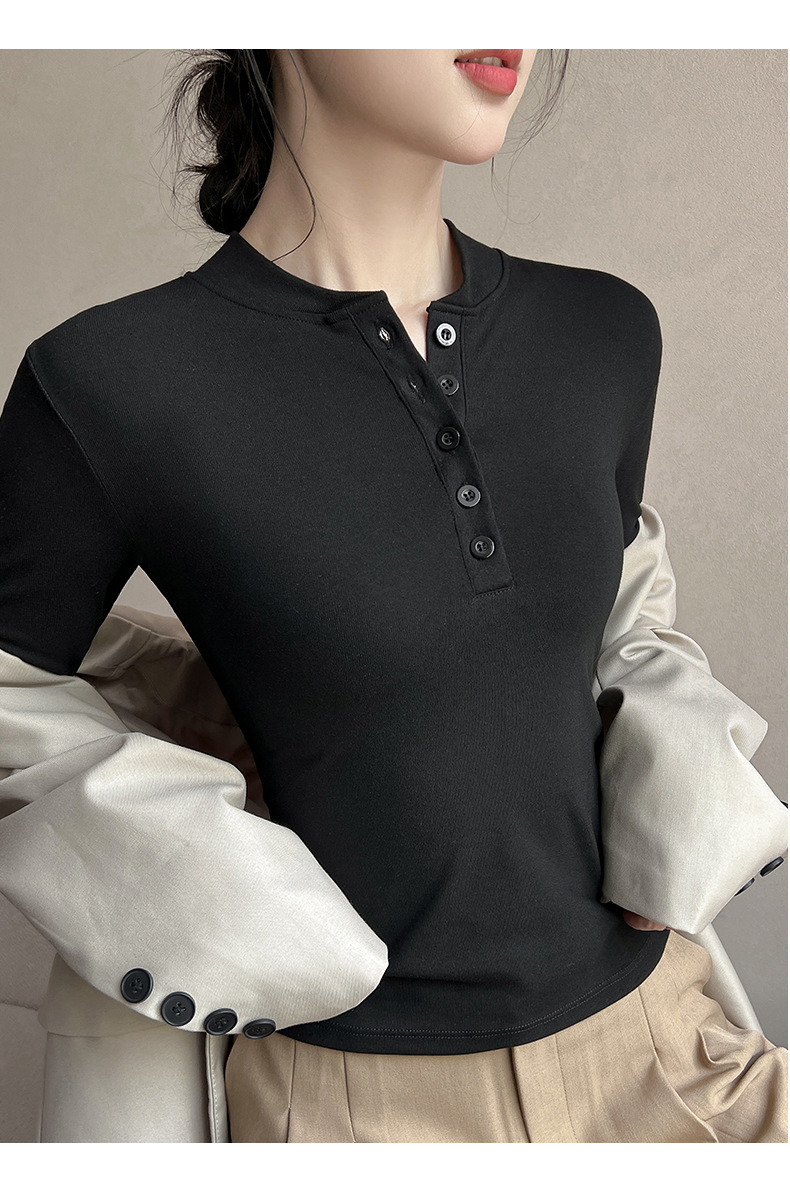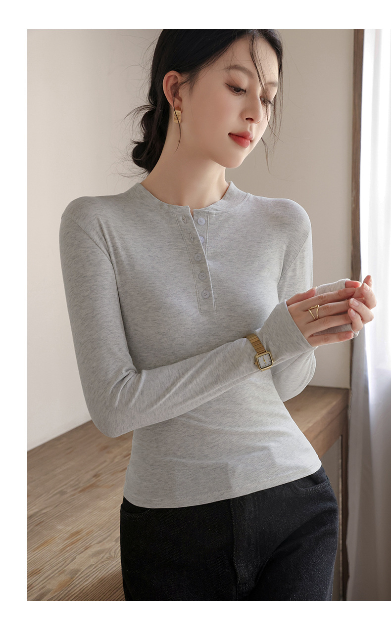 圆领单品纽扣修身显瘦25新款秋冬打底衫简约舒适亨利衫女