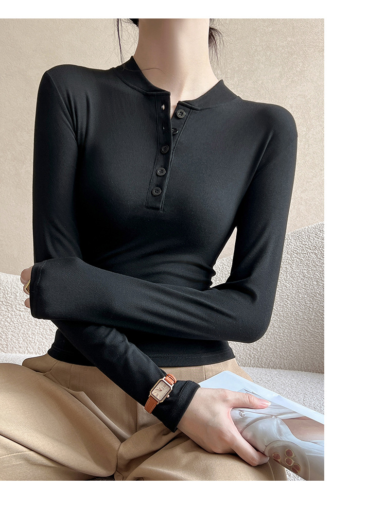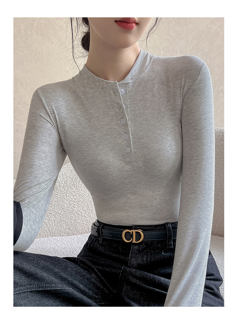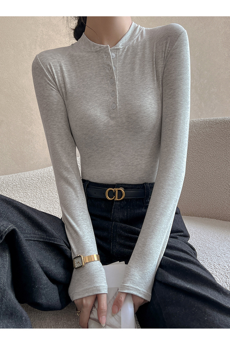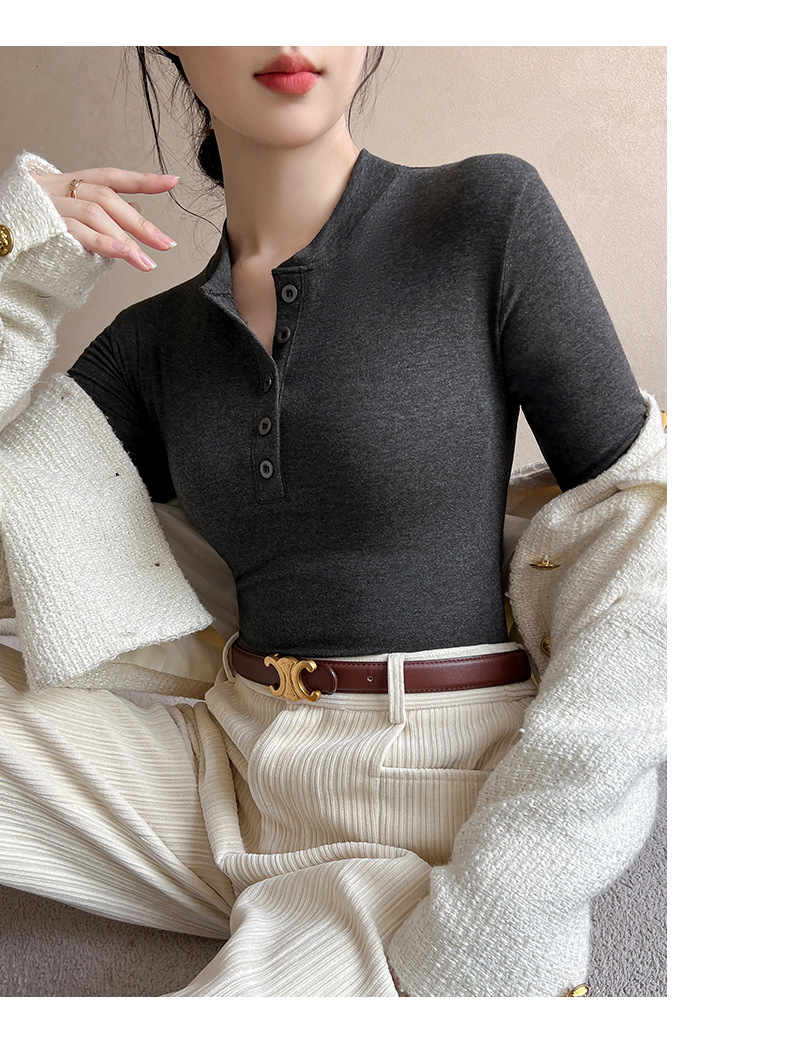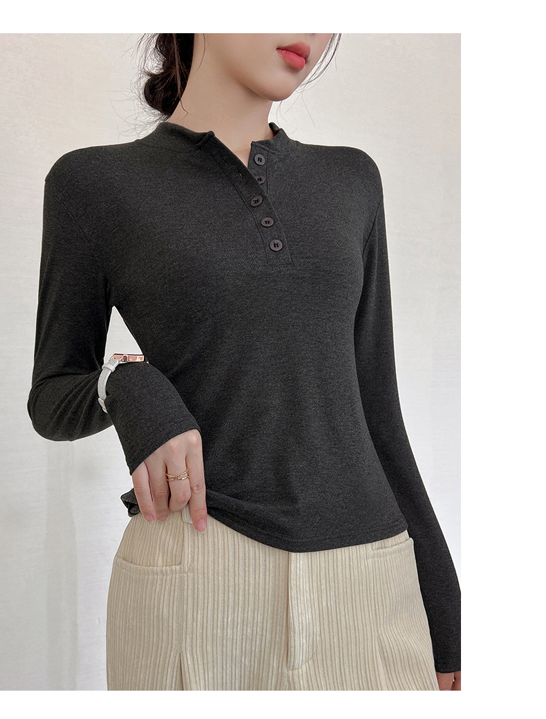 圆领单品纽扣修身显瘦25新款秋冬打底衫简约舒适亨利衫女