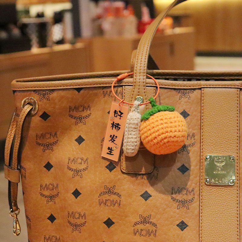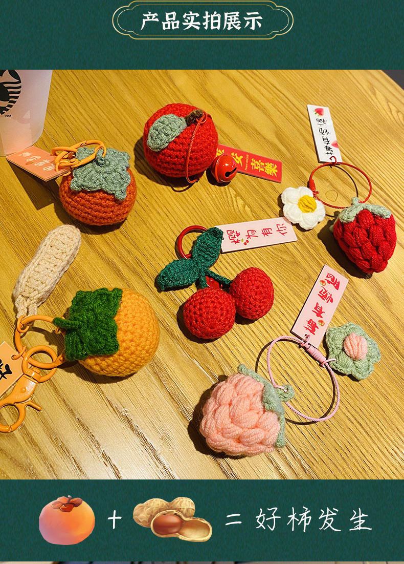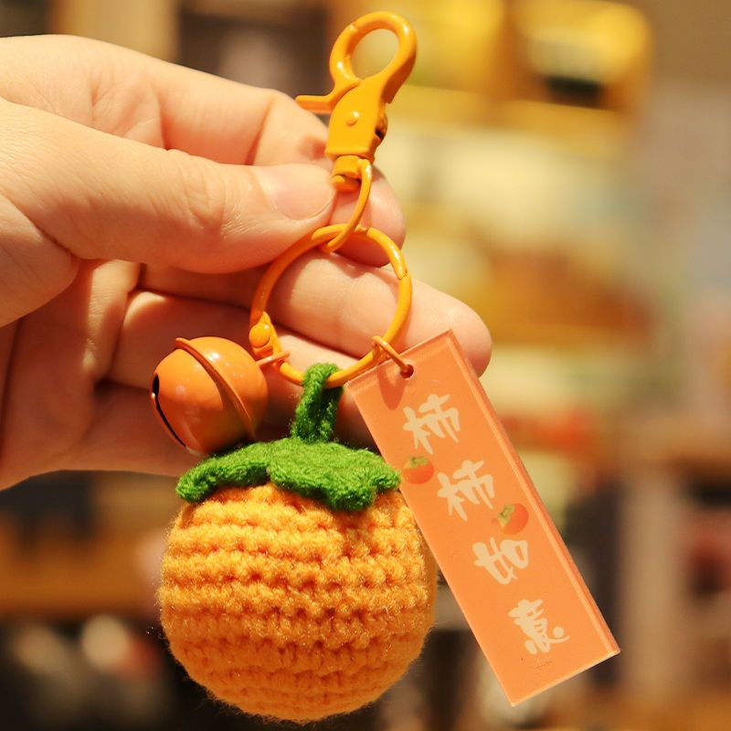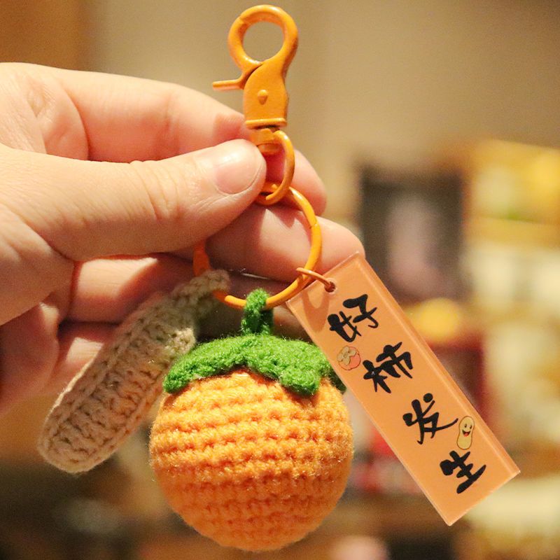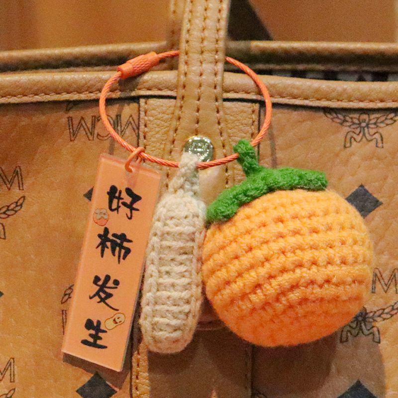 毛绒钩织钥匙扣好事发生挂件手工编织事事如意柿子包包挂饰小配饰