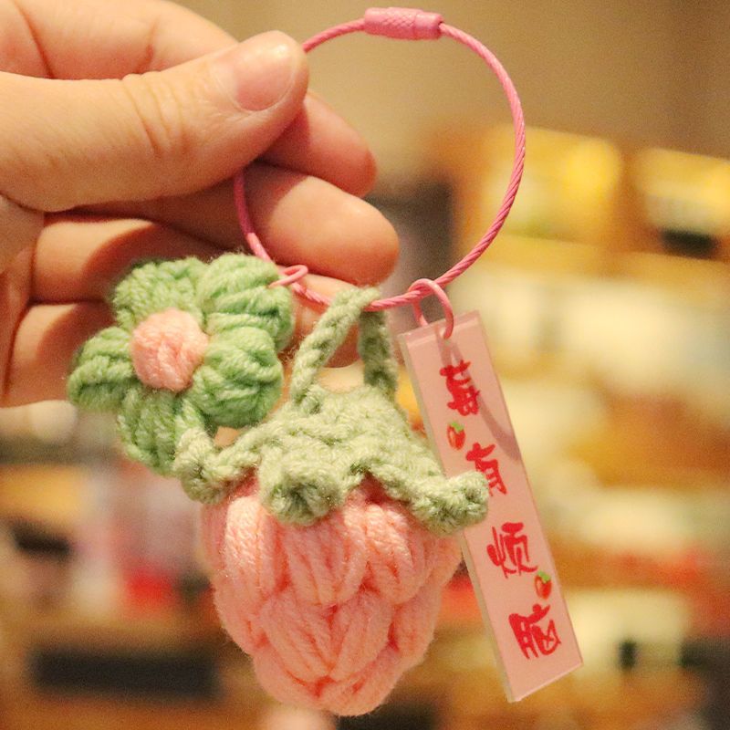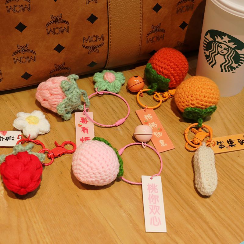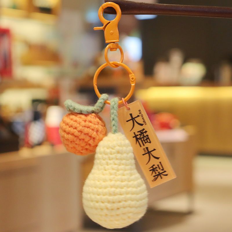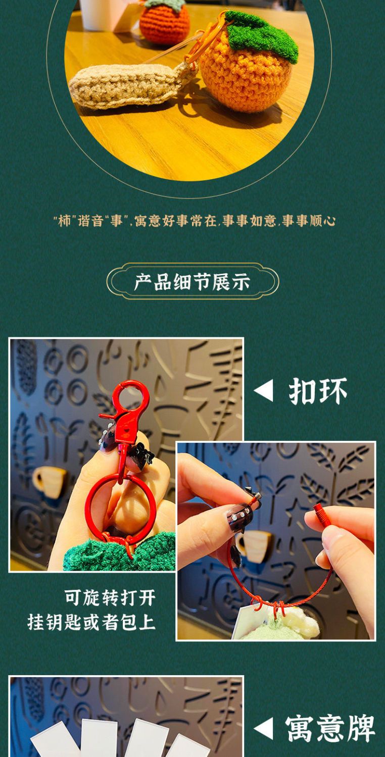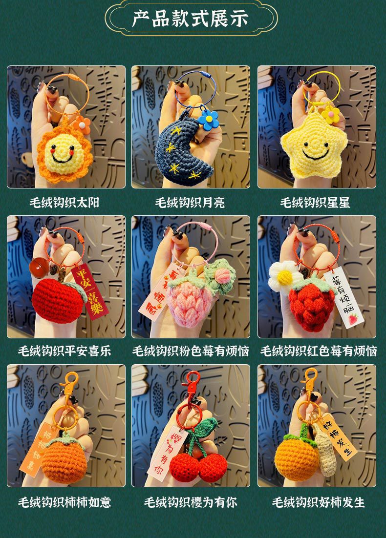 毛绒钩织钥匙扣好事发生挂件手工编织事事如意柿子包包挂饰小配饰