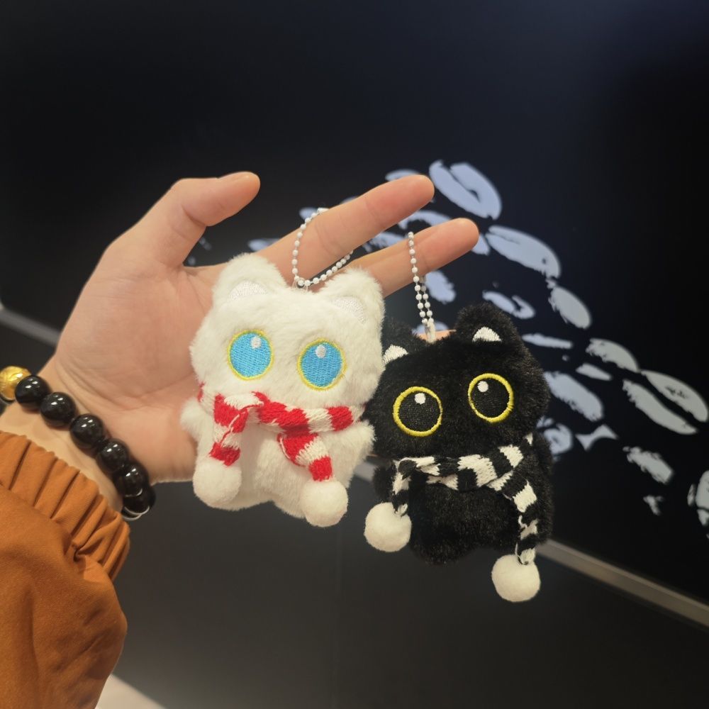 新款可爱情侣黑白小猫公仔挂件超萌毛绒玩偶钥匙扣学生书包包挂饰