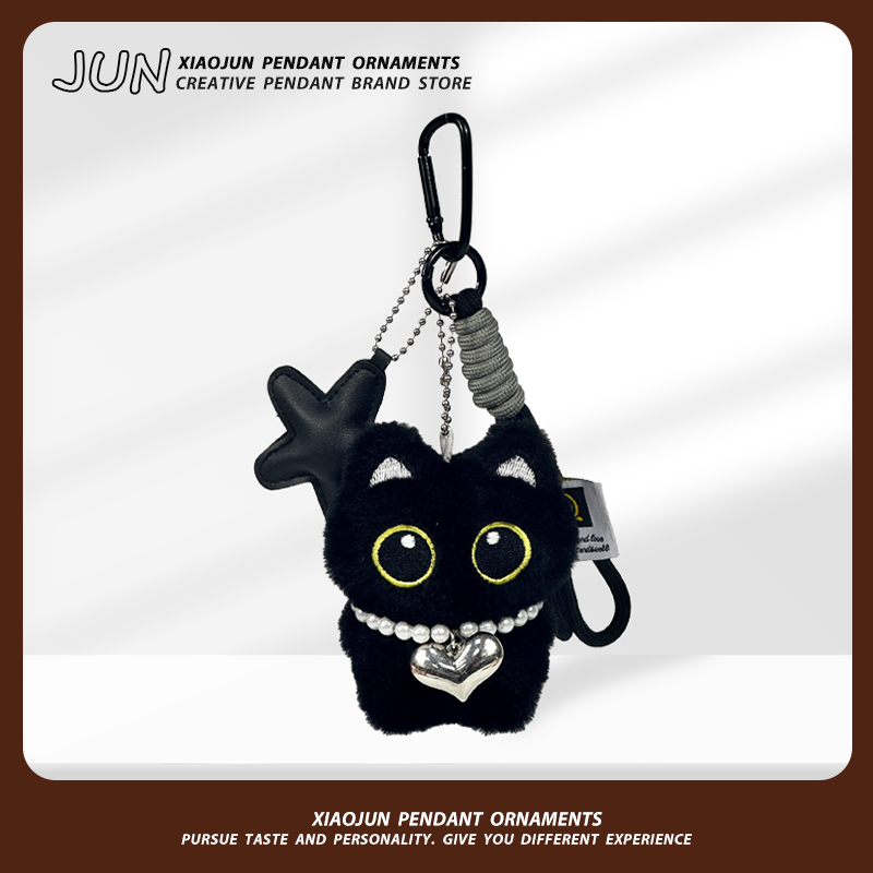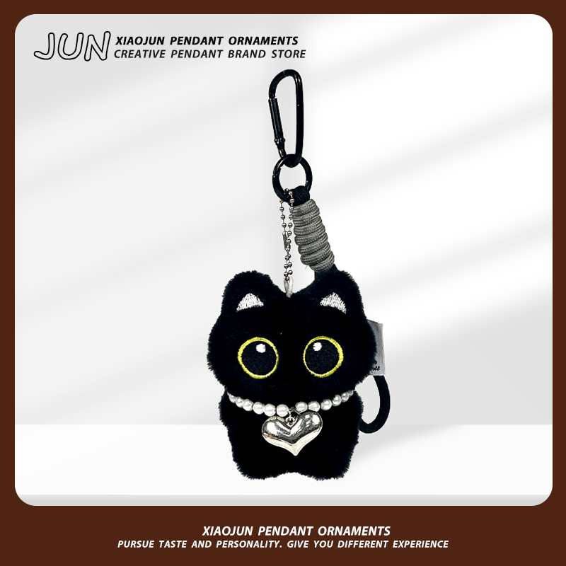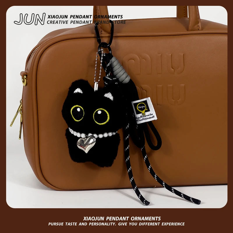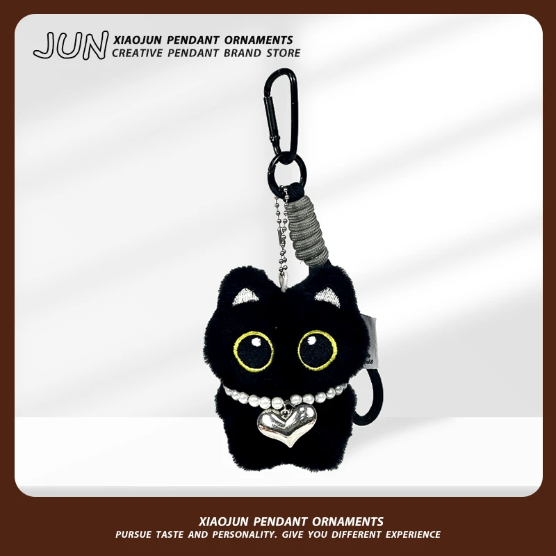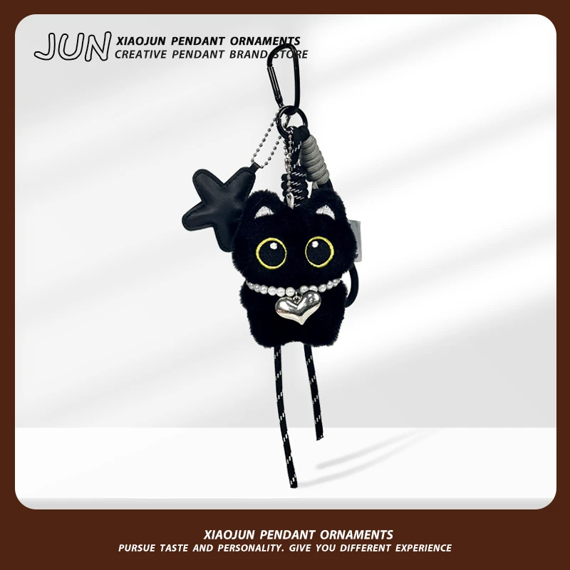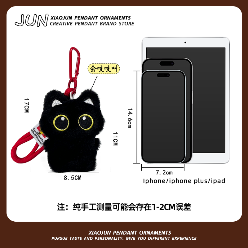 高颜值毛绒小黑猫公仔挂件少女吱吱叫百搭挂饰背包卡通玩偶钥匙扣