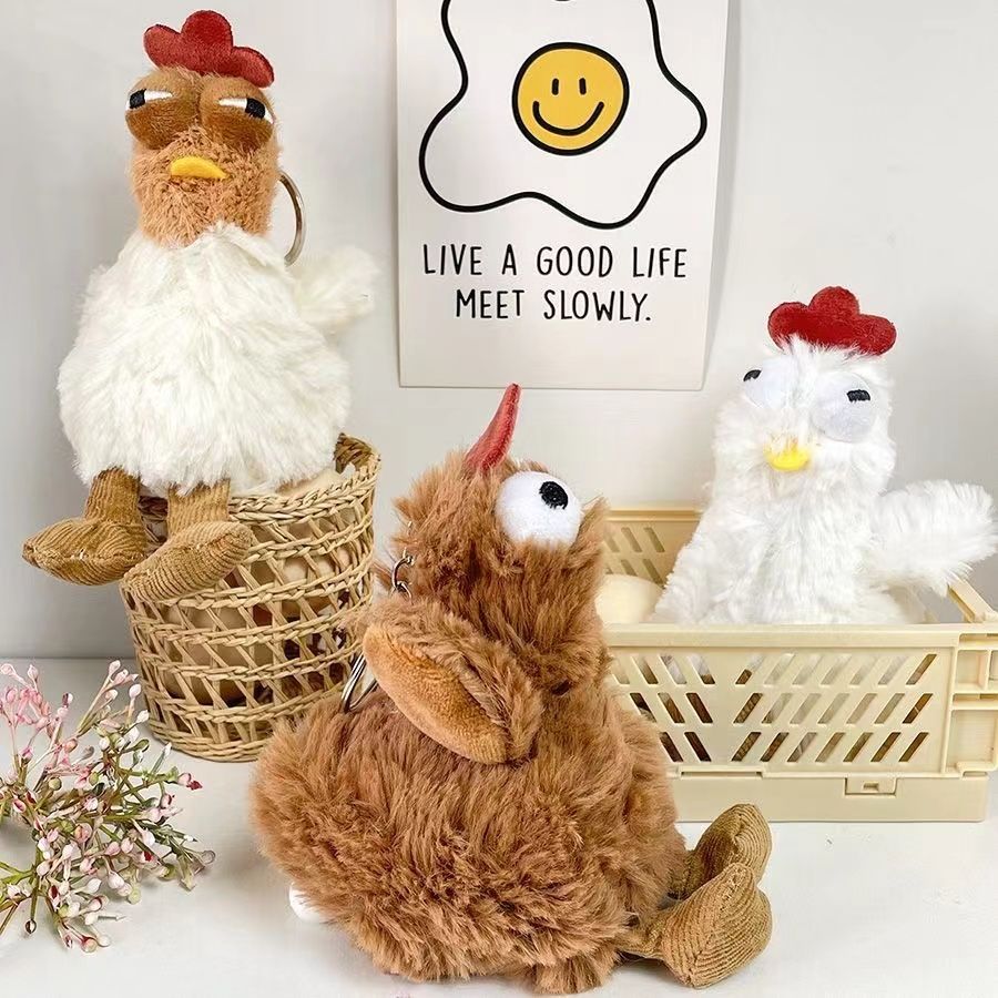 下蛋咯咯鸡卡通玩偶情侣背包挂件趣味丑萌整蛊解压毛绒公仔钥匙扣