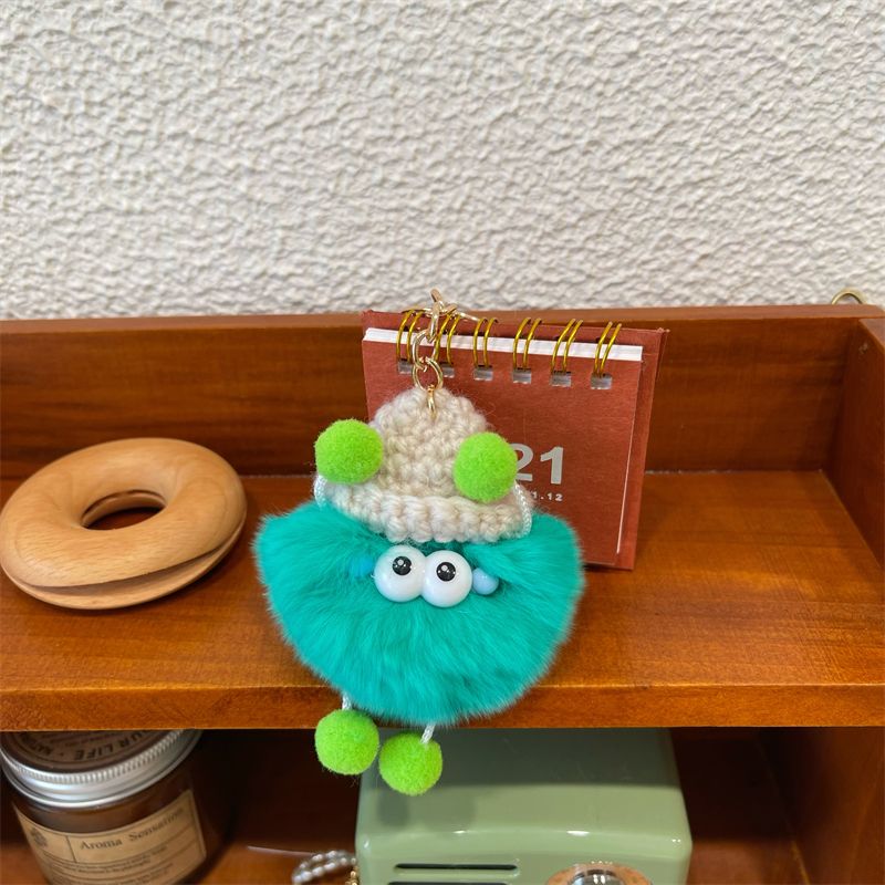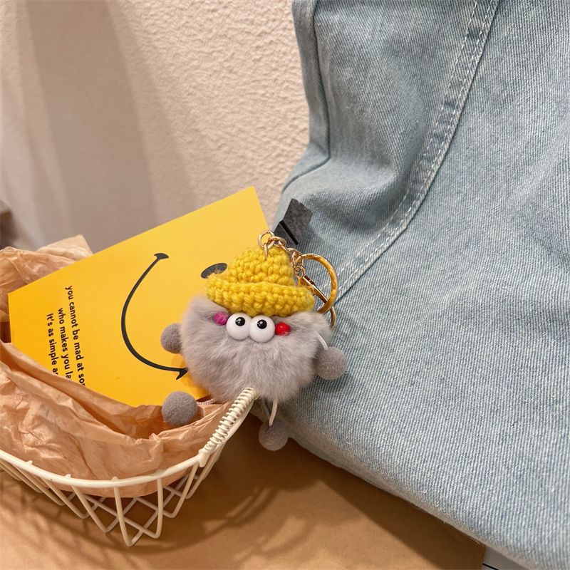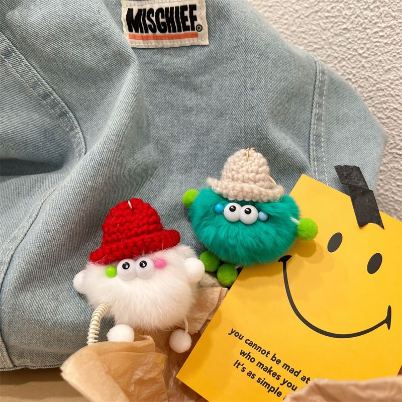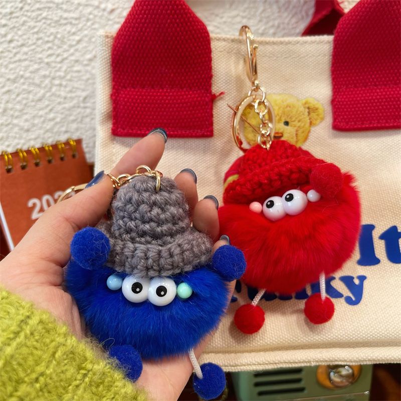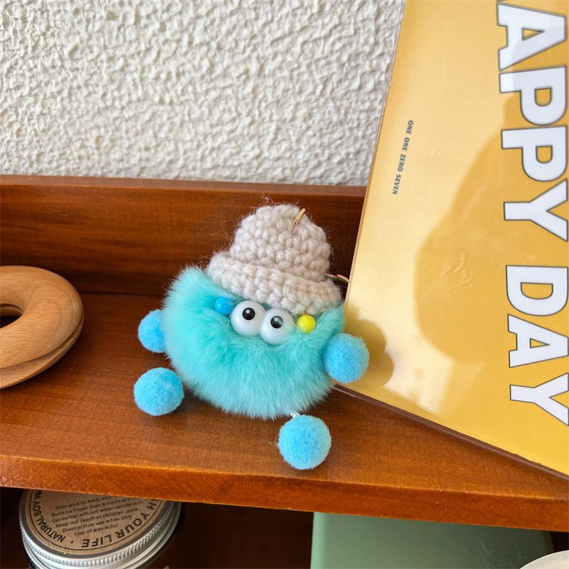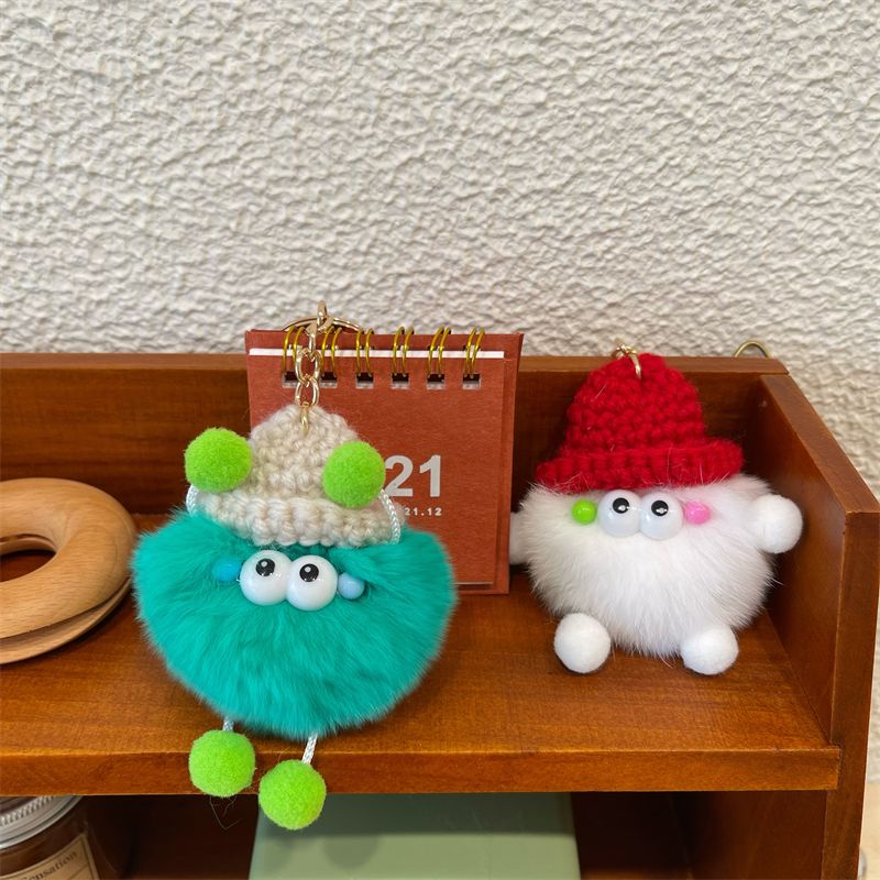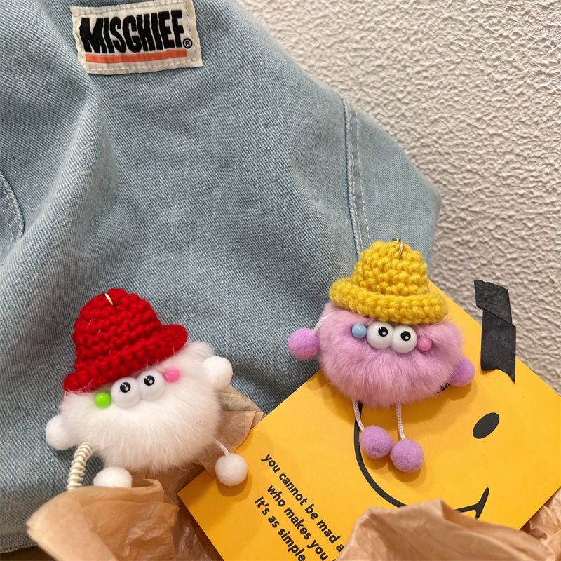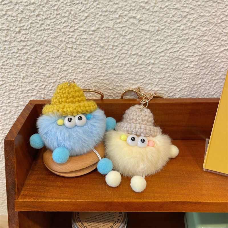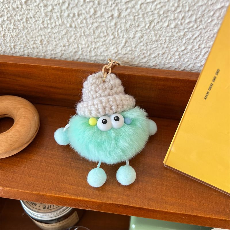 【小豆丁】獭兔毛 韩国ins丑萌可爱小煤球车钥匙扣挂饰包挂件礼物