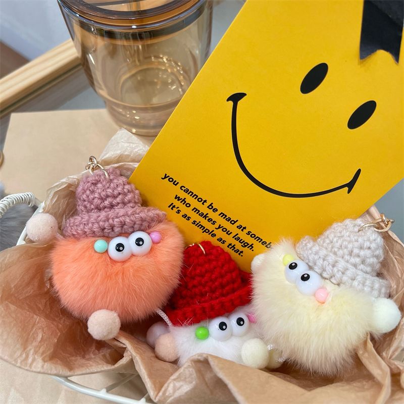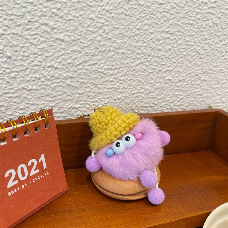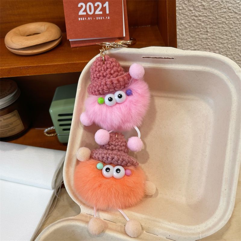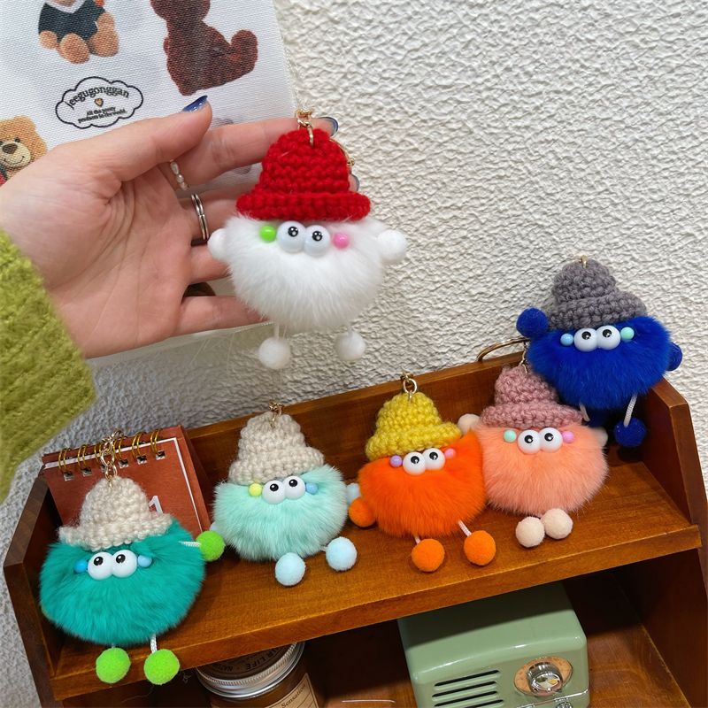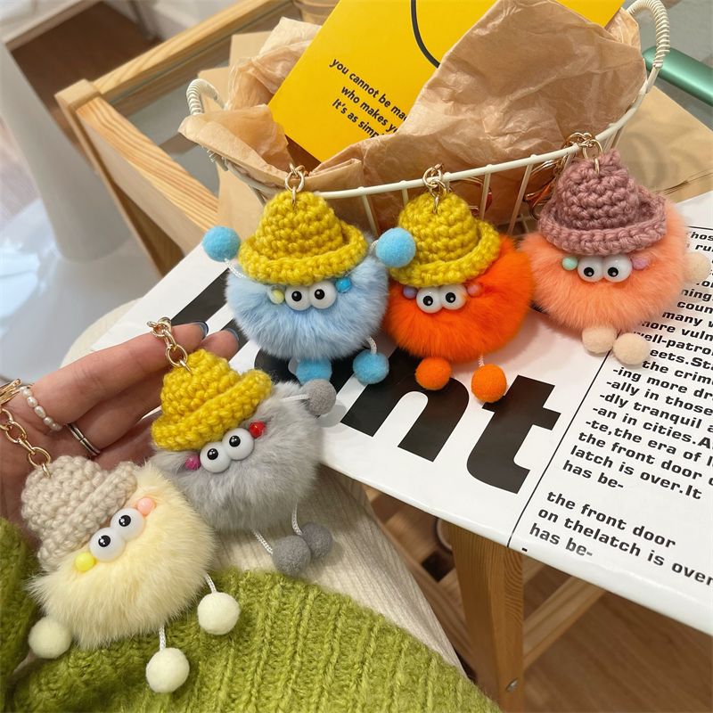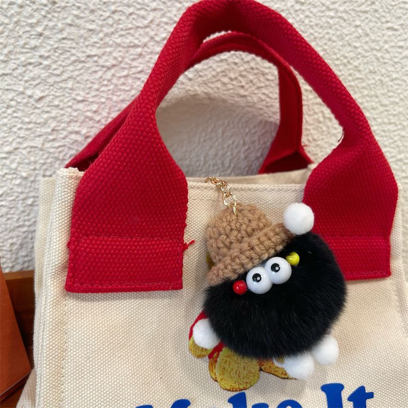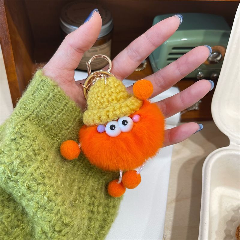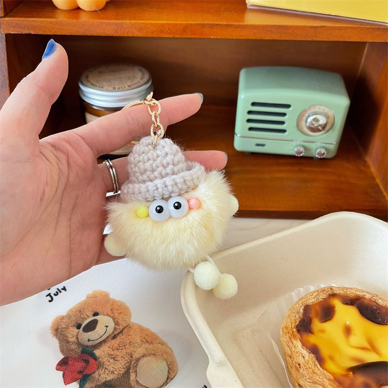 【小豆丁】獭兔毛 韩国ins丑萌可爱小煤球车钥匙扣挂饰包挂件礼物