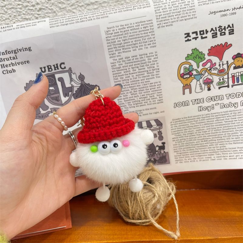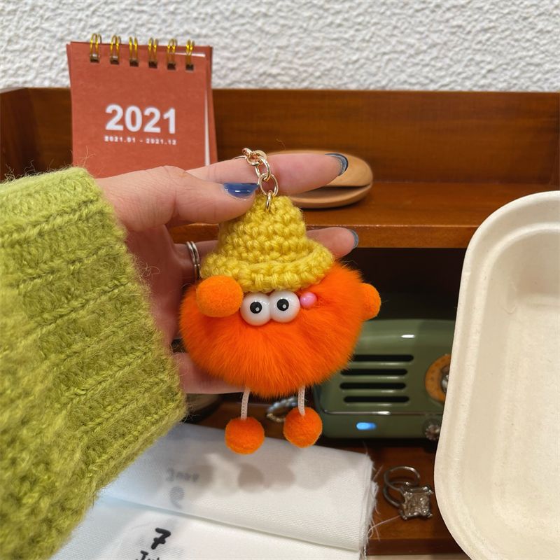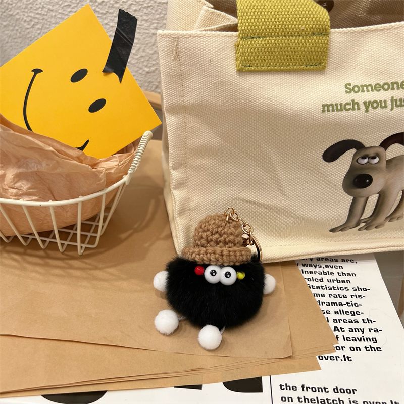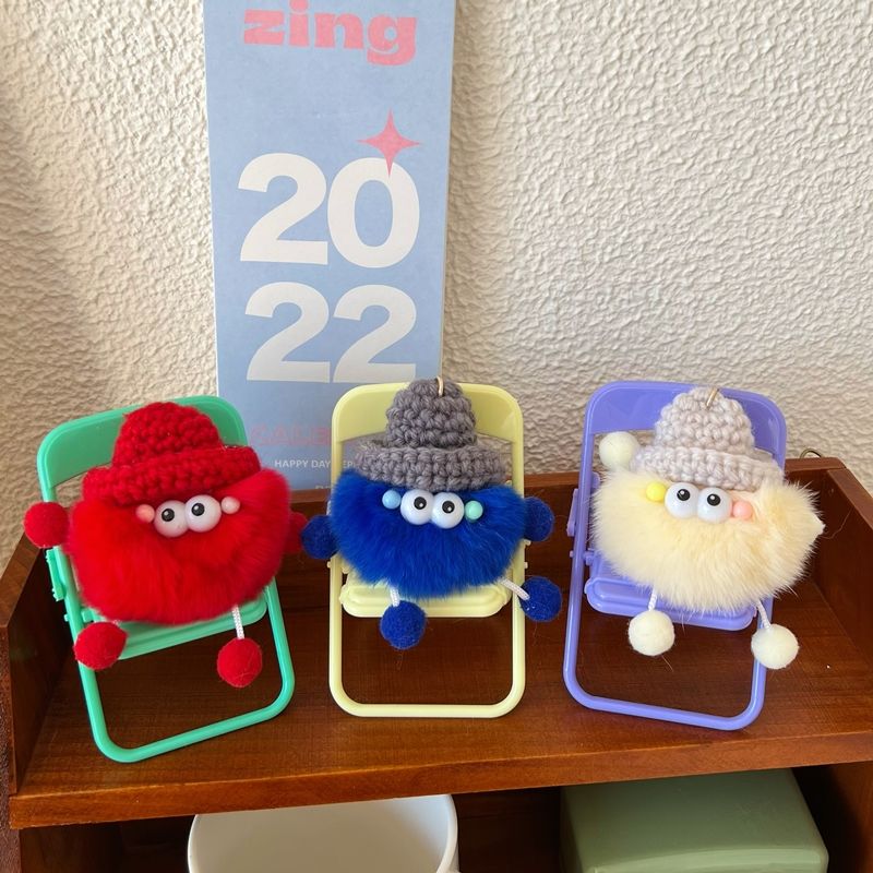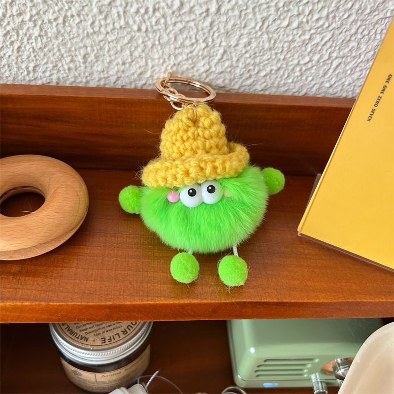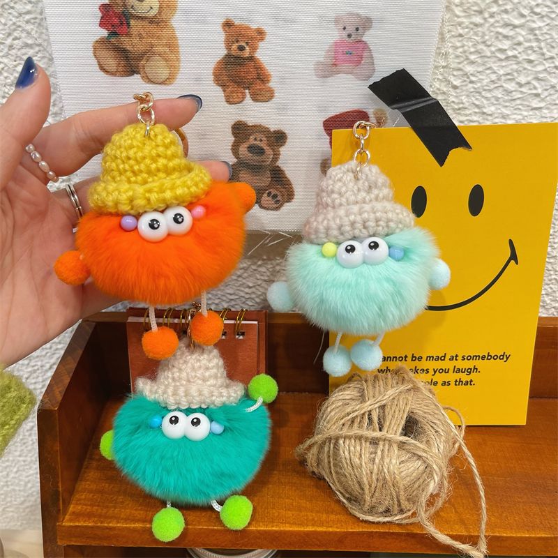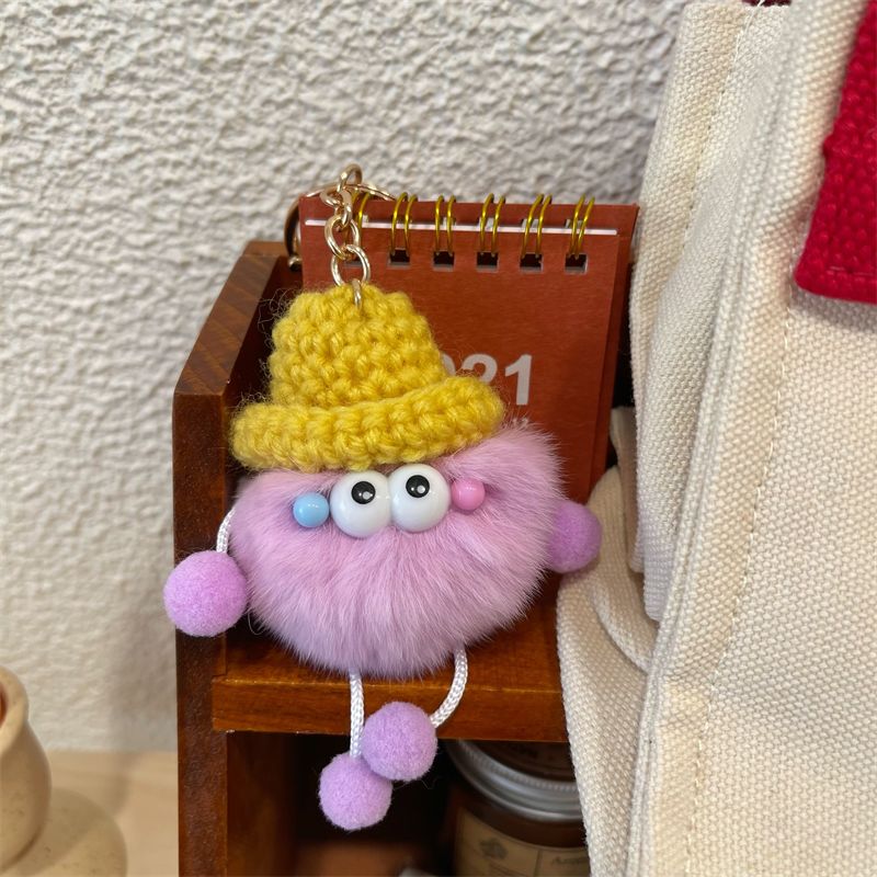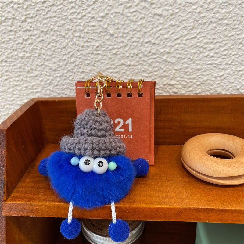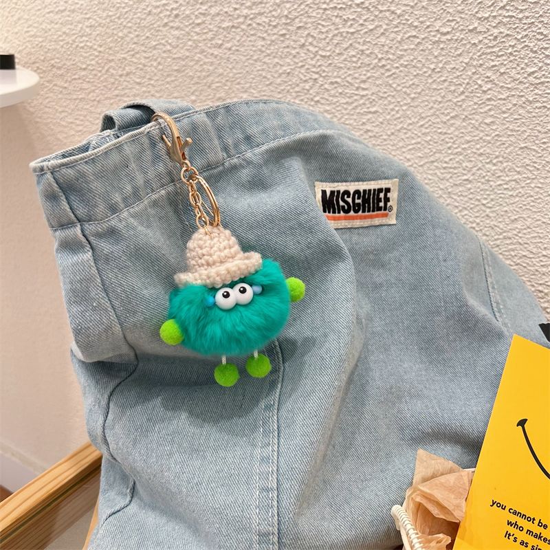 【小豆丁】獭兔毛 韩国ins丑萌可爱小煤球车钥匙扣挂饰包挂件礼物