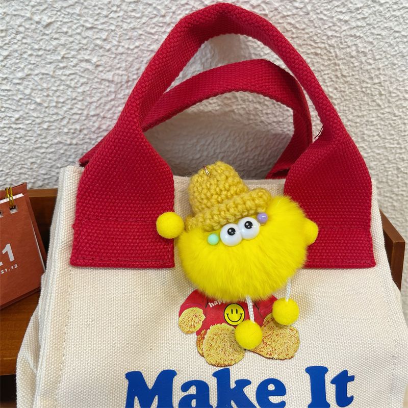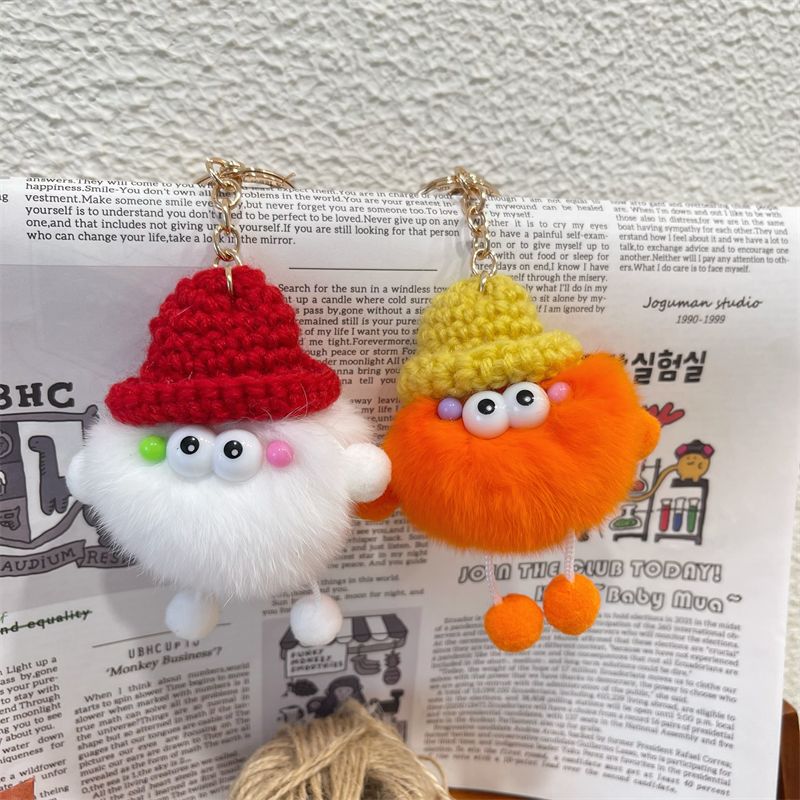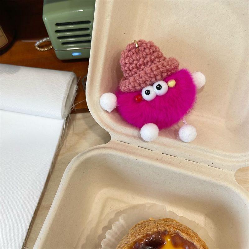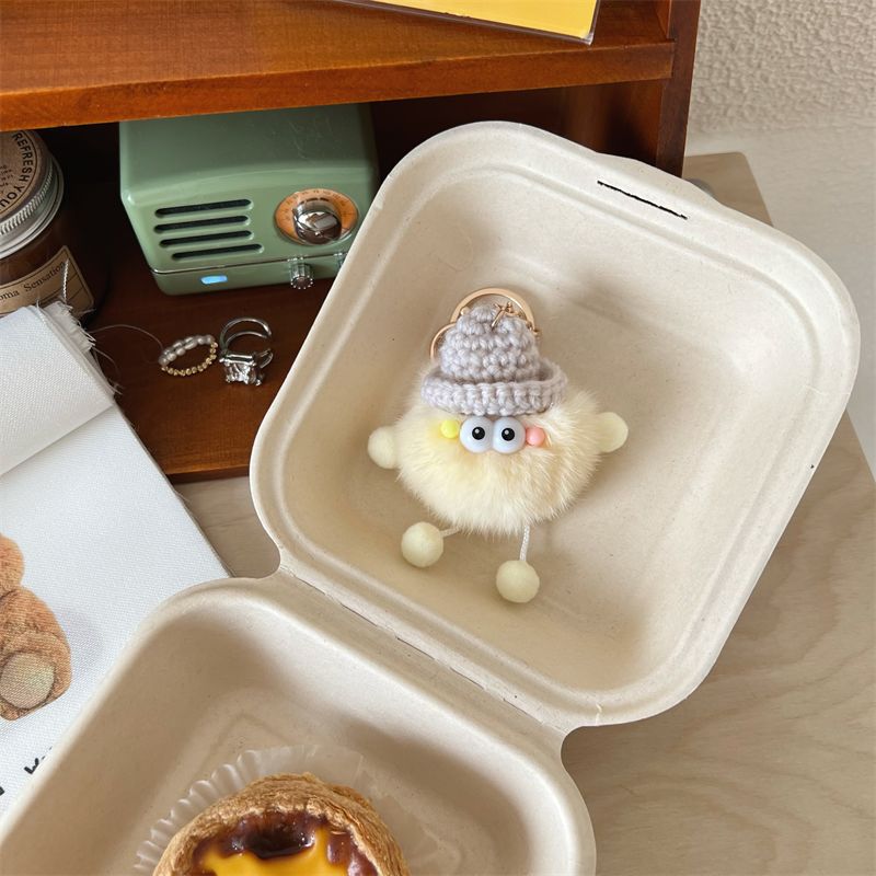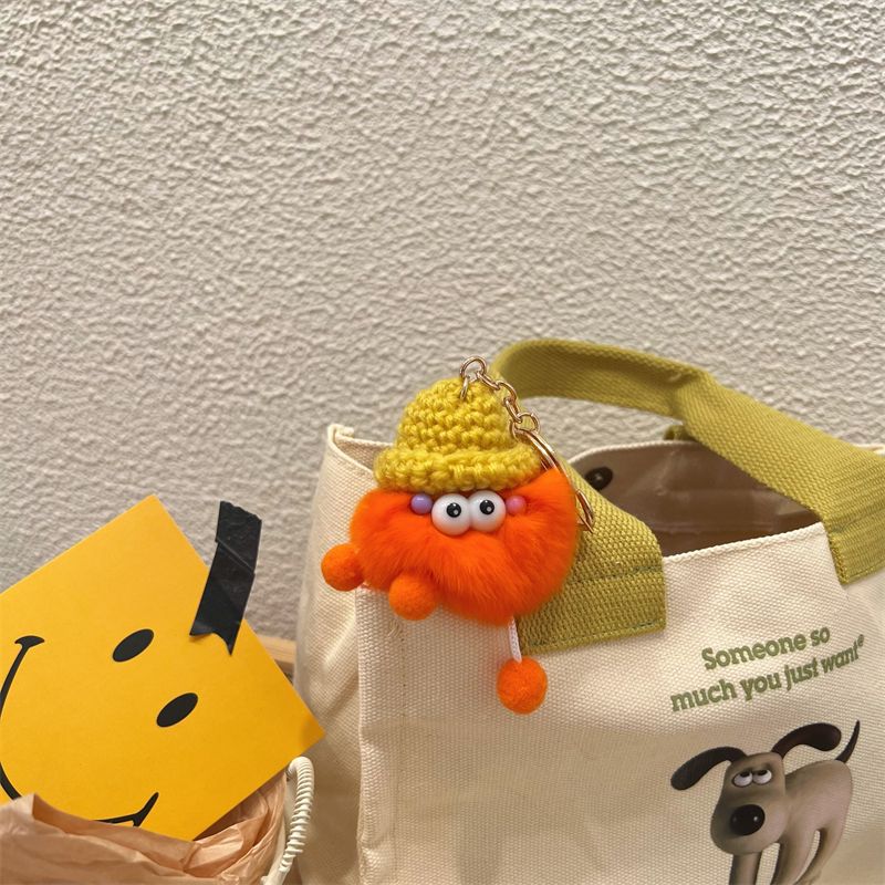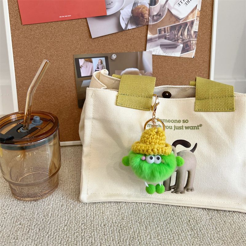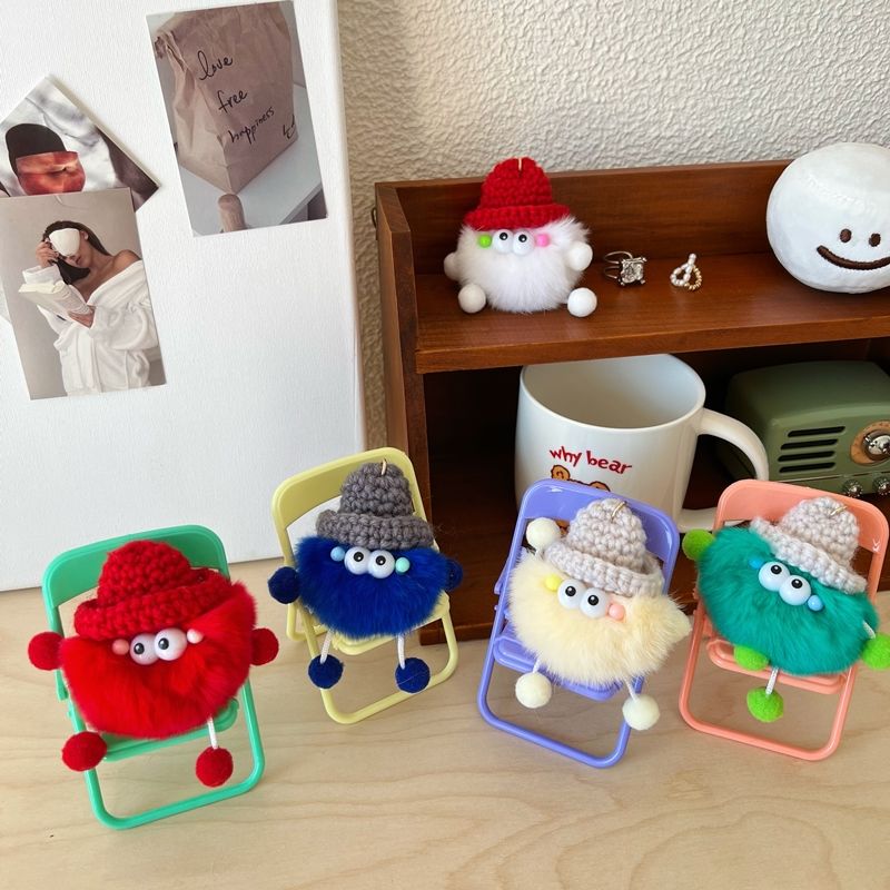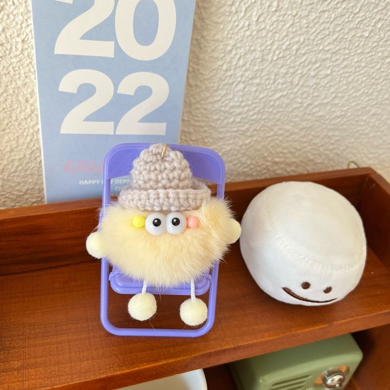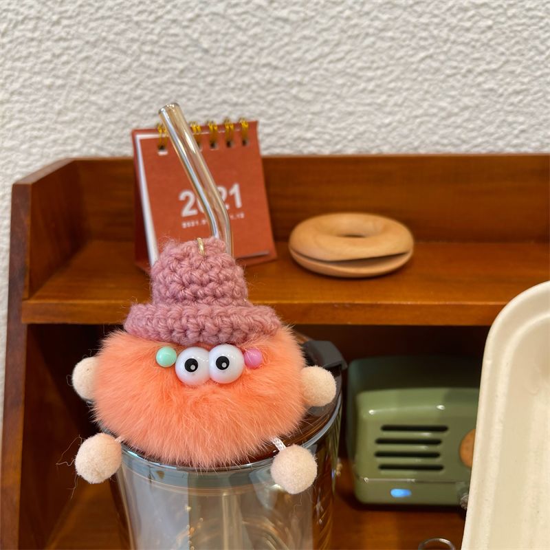 【小豆丁】獭兔毛 韩国ins丑萌可爱小煤球车钥匙扣挂饰包挂件礼物