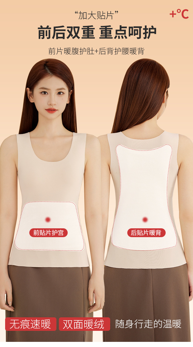 冬季新款德绒保暖背心女发热打底背心贴片无痕双面磨毛大码保暖衣