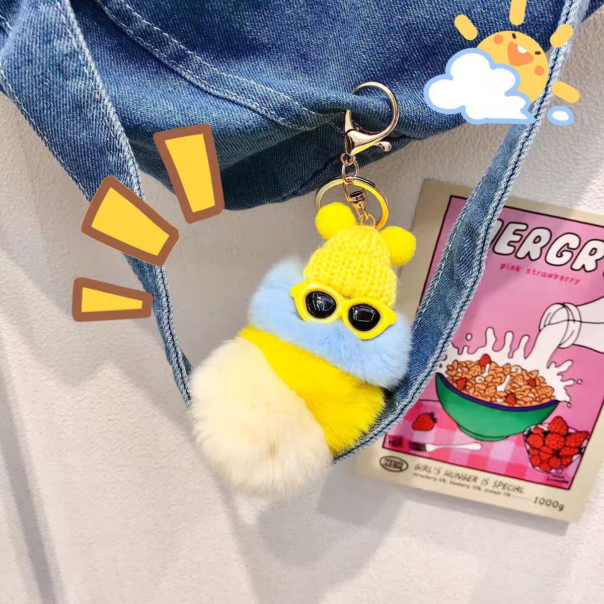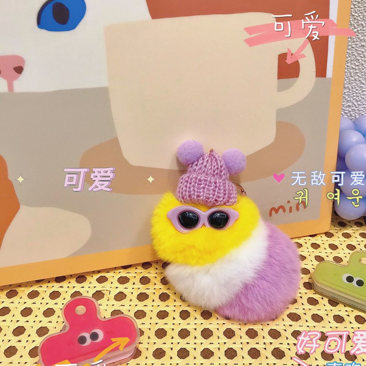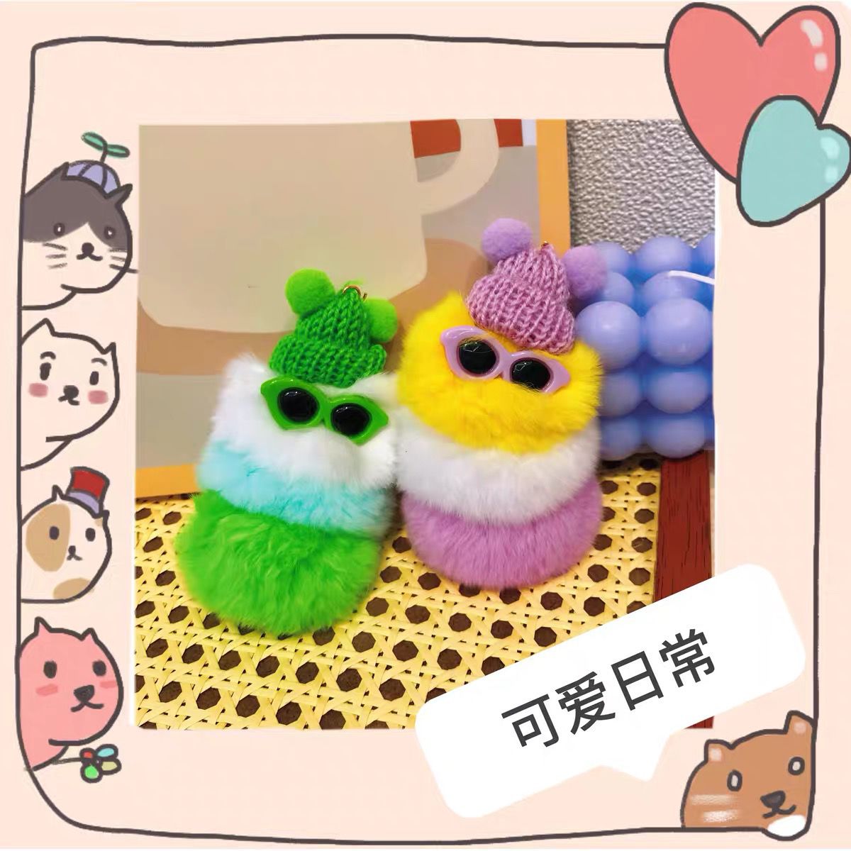 可爱丑萌獭兔毛皮草毛毛虫挂件汽车钥匙扣包包挂饰毛绒玩具礼物