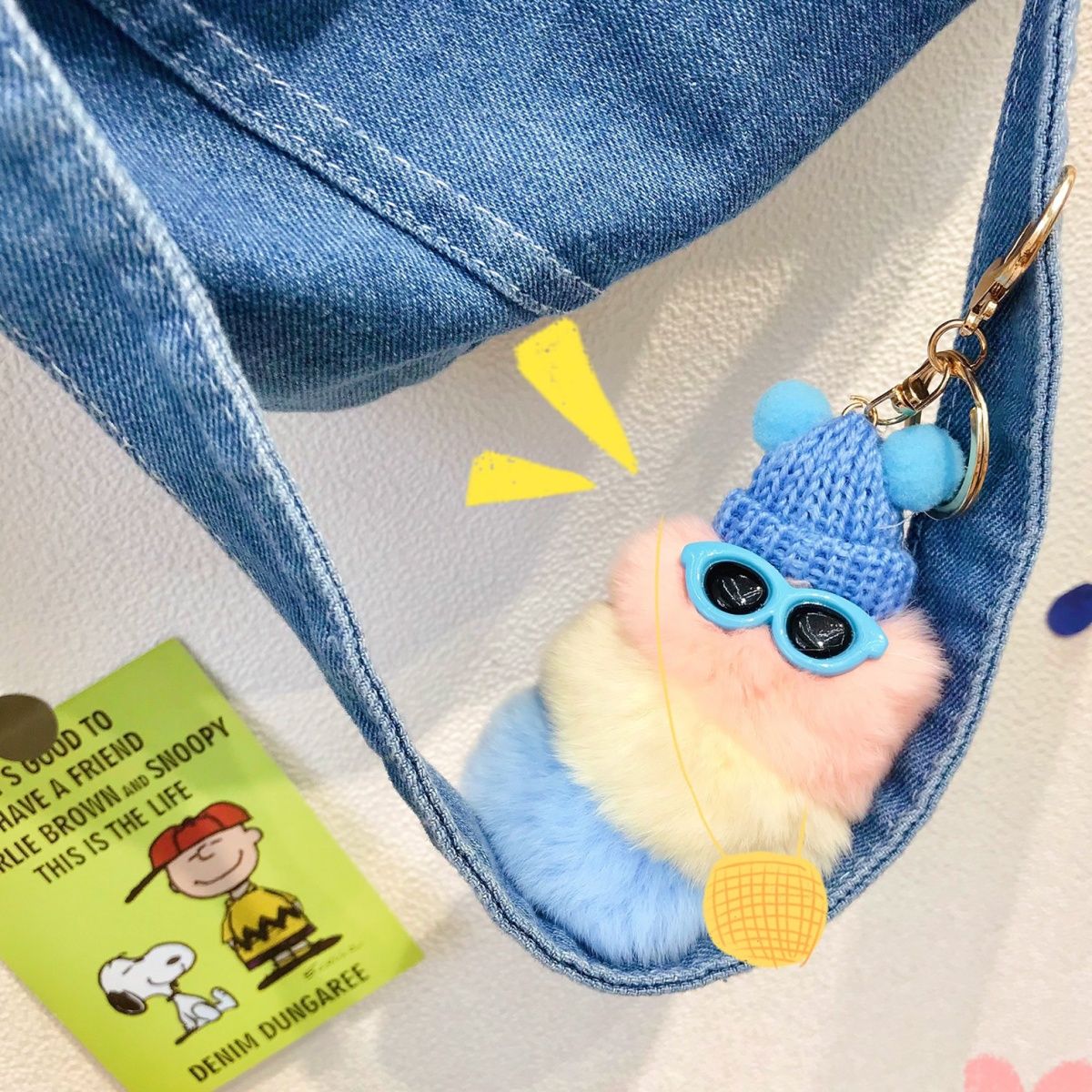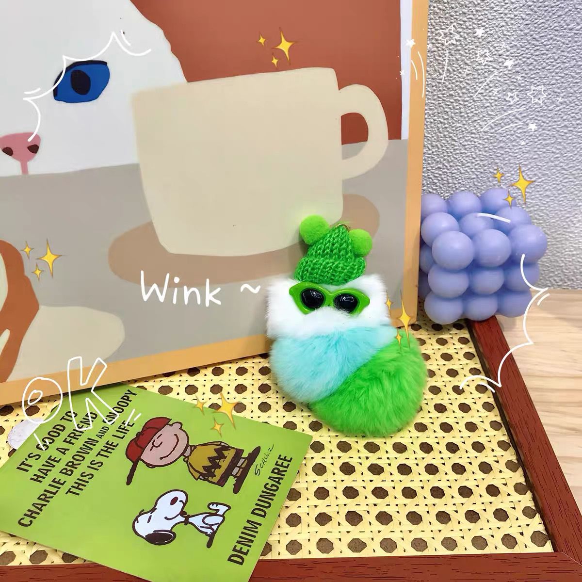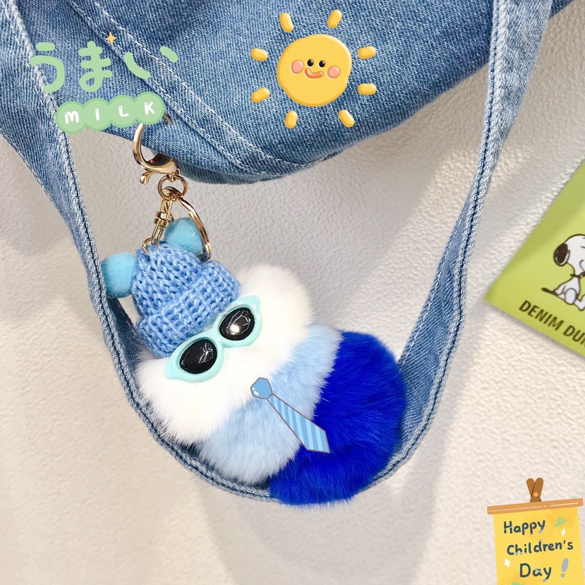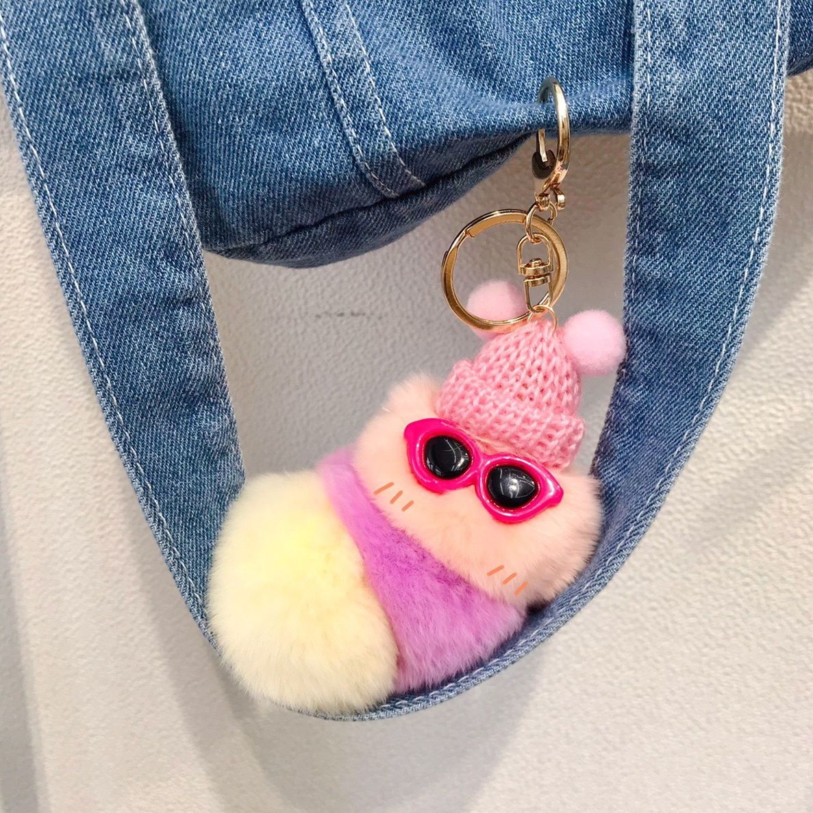 可爱丑萌獭兔毛皮草毛毛虫挂件汽车钥匙扣包包挂饰毛绒玩具礼物