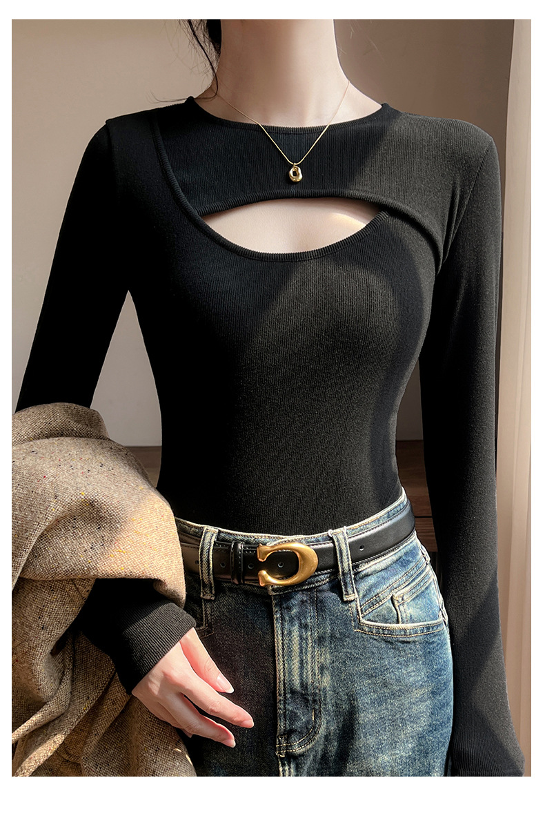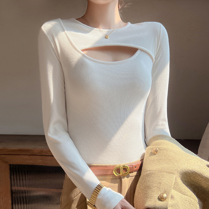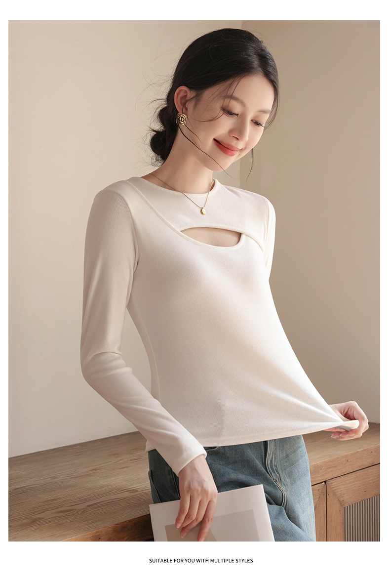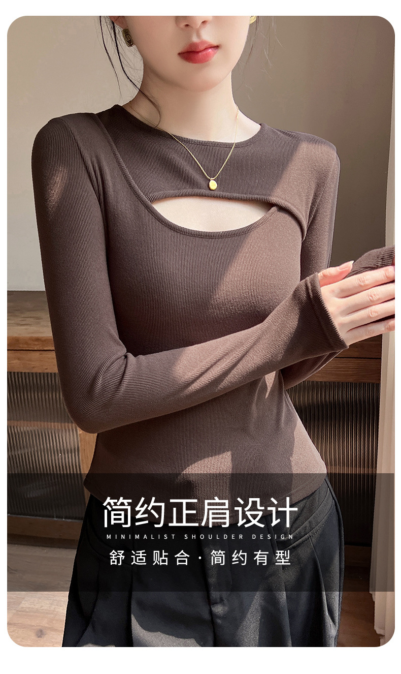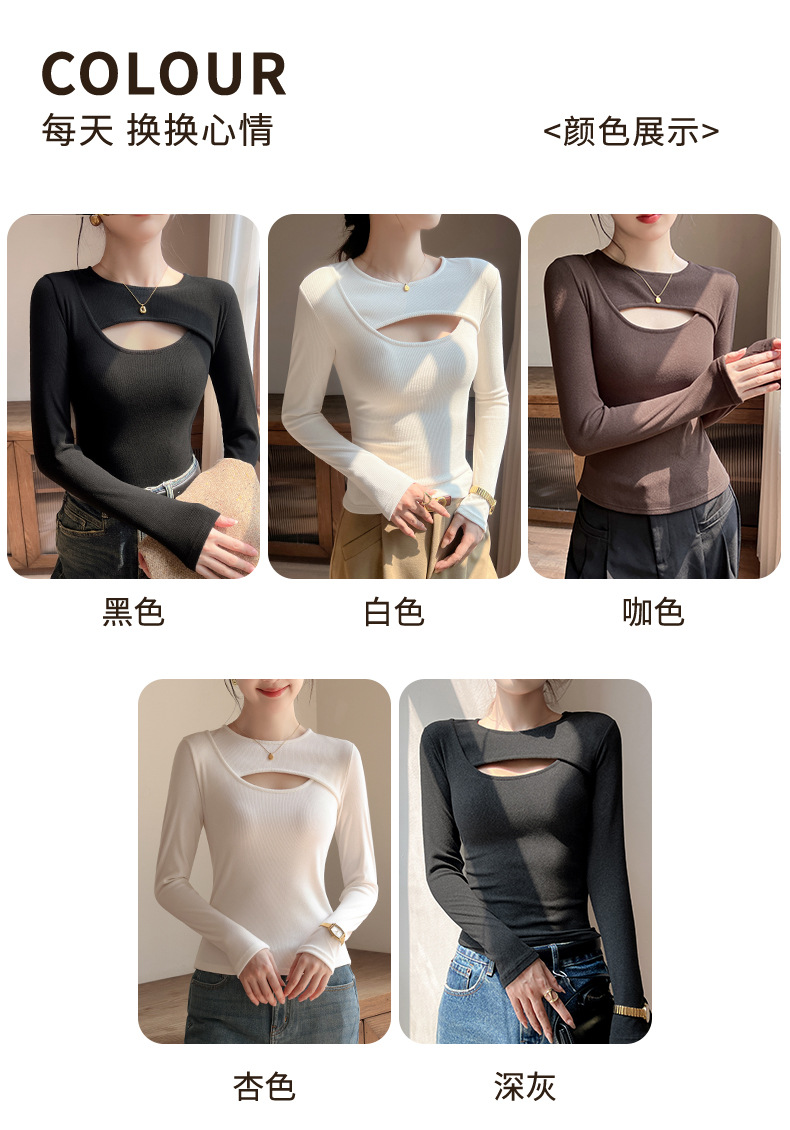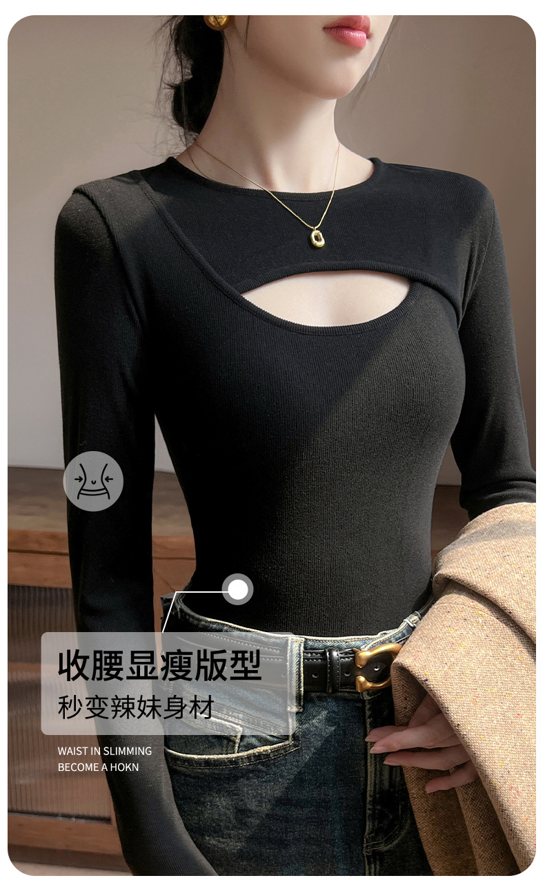 圆领镂空设计感内搭打底衫女秋冬季打底衣显瘦可外穿长袖修身t恤