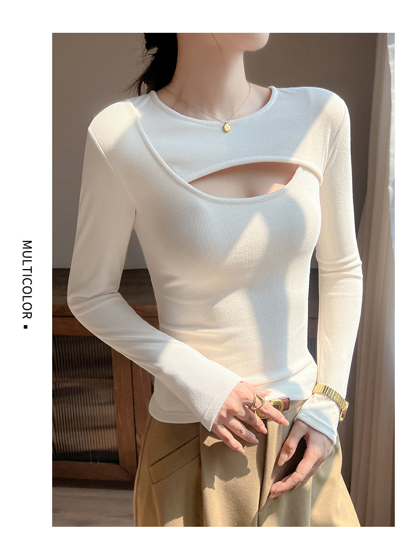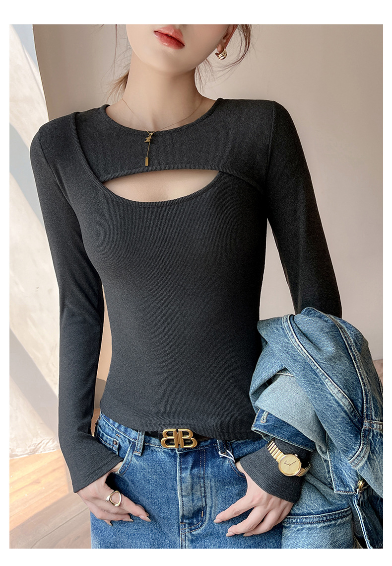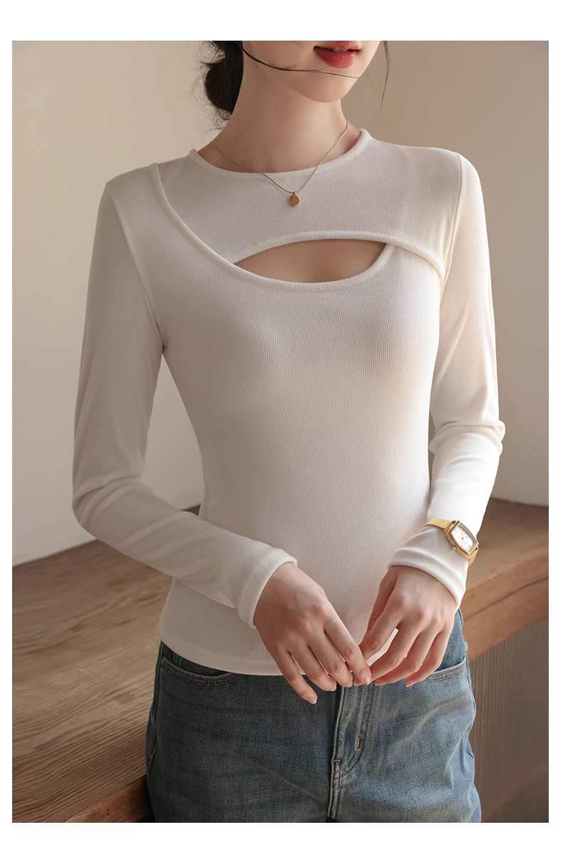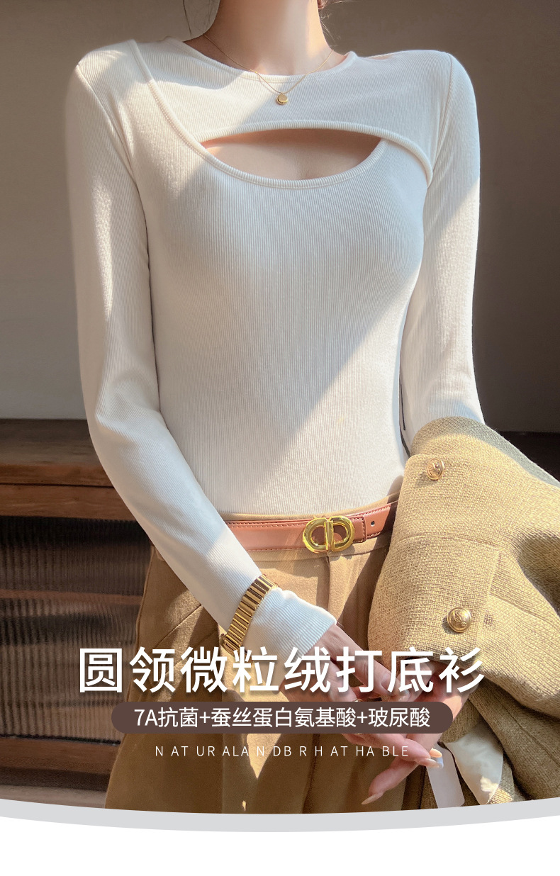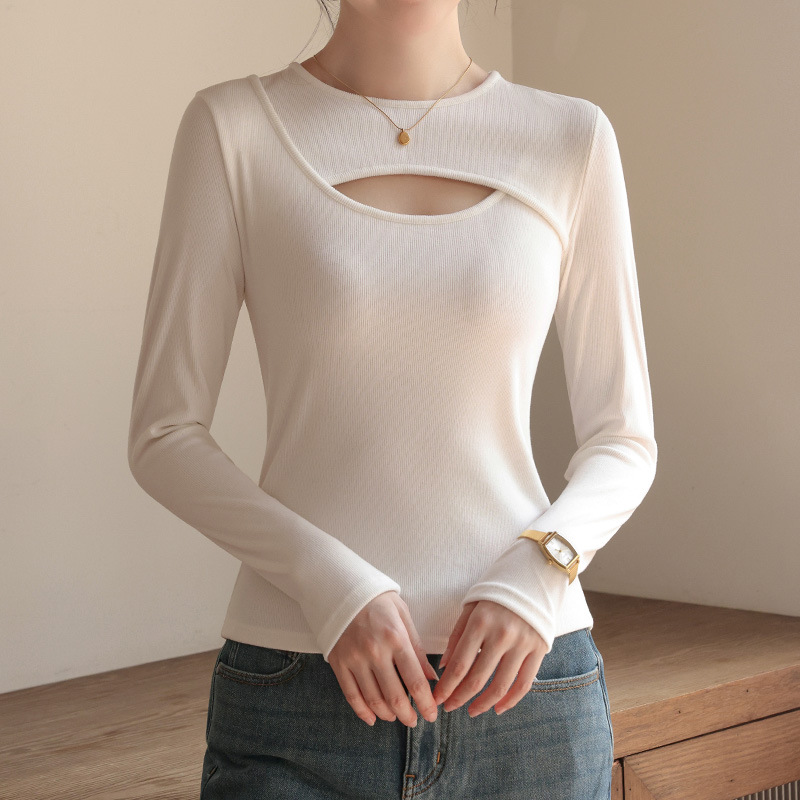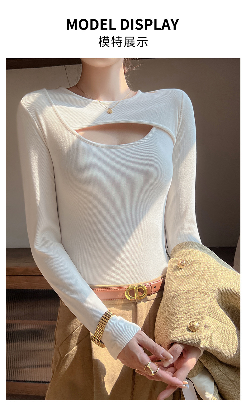 圆领镂空设计感内搭打底衫女秋冬季打底衣显瘦可外穿长袖修身t恤