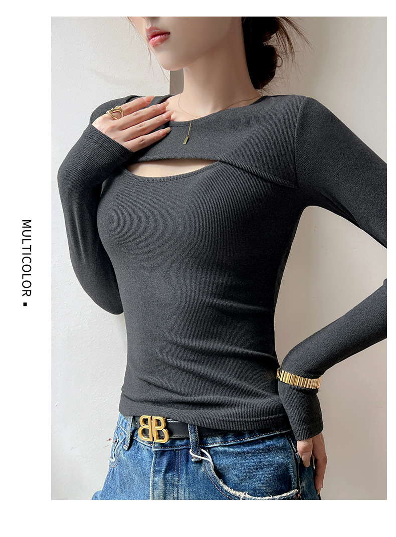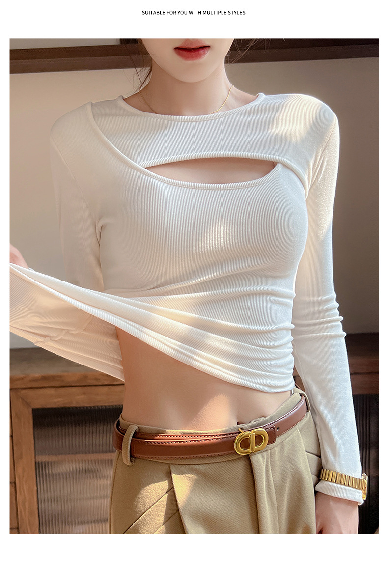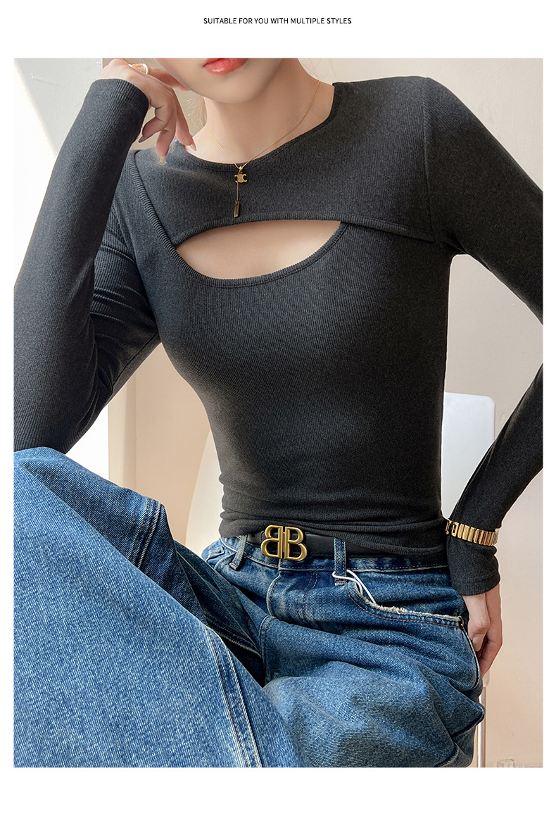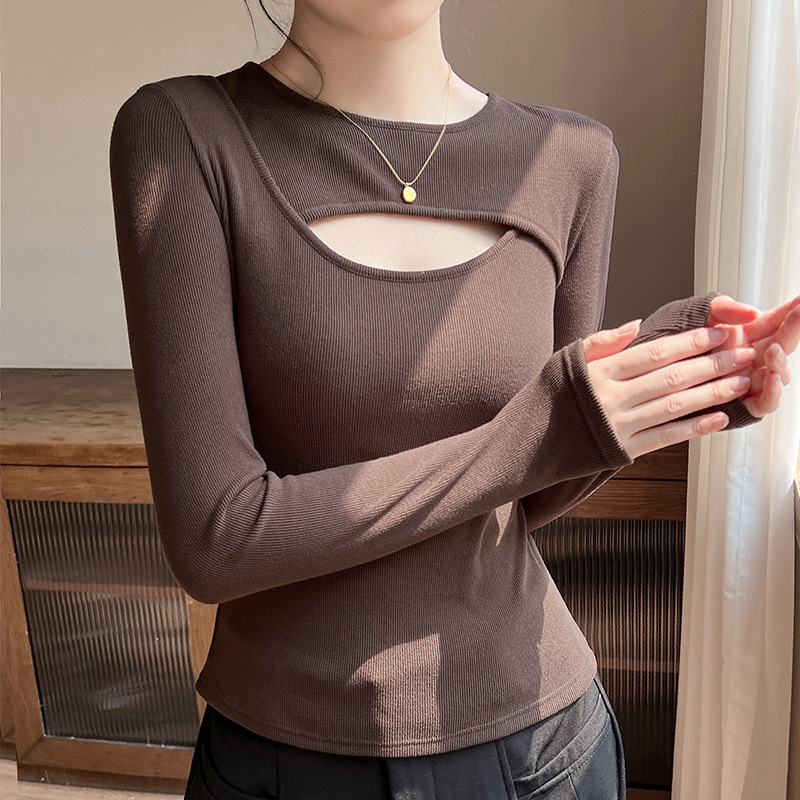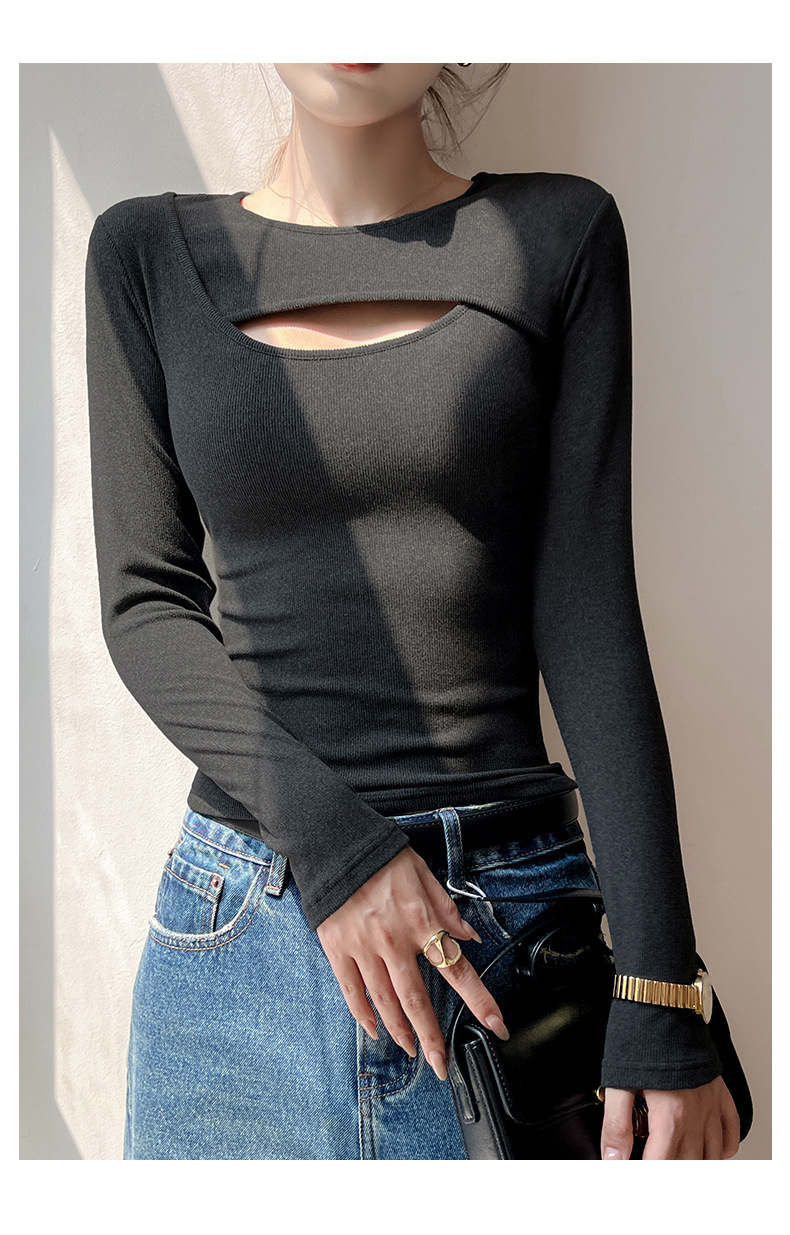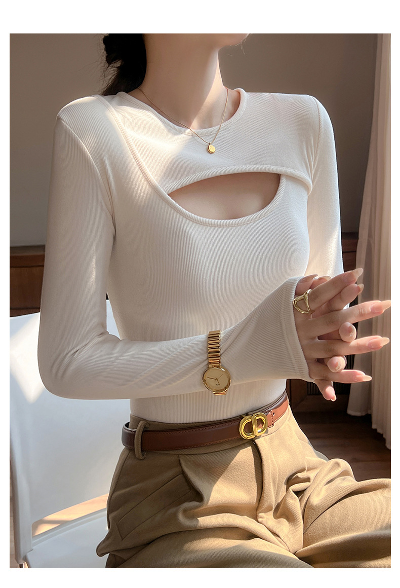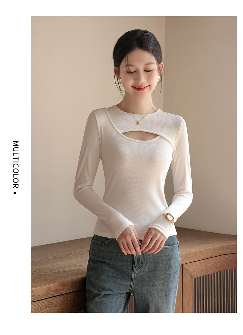 圆领镂空设计感内搭打底衫女秋冬季打底衣显瘦可外穿长袖修身t恤