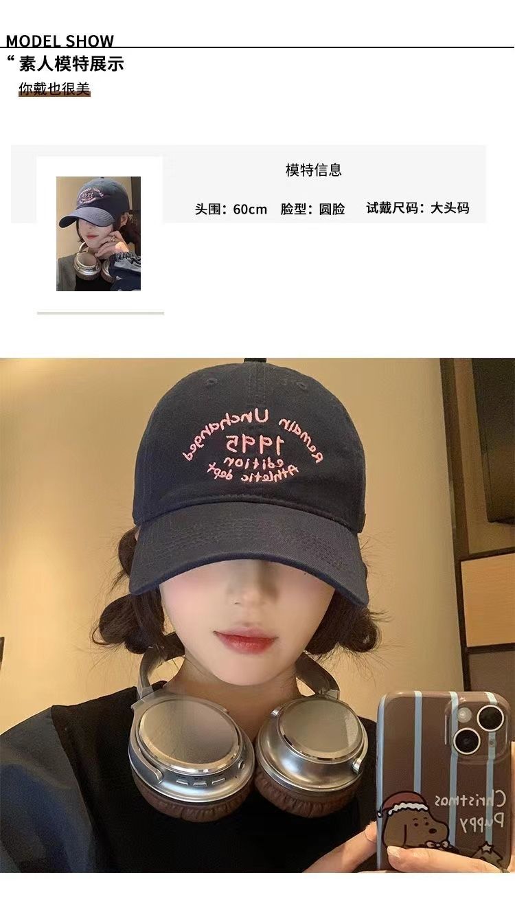 大头围棒球帽子女2024新款显脸小时尚百搭加大加宽帽檐刺绣鸭舌帽