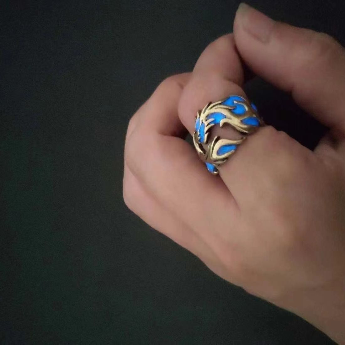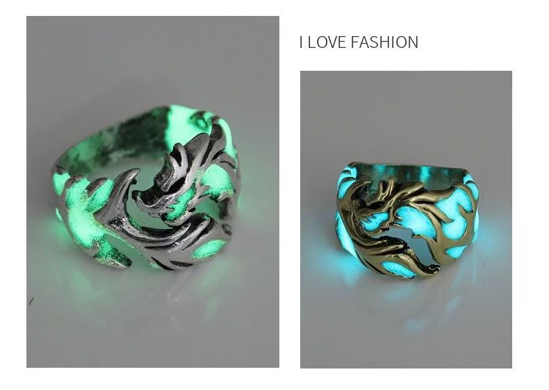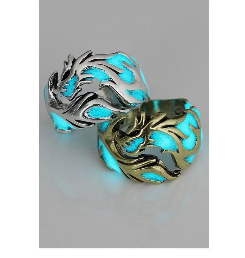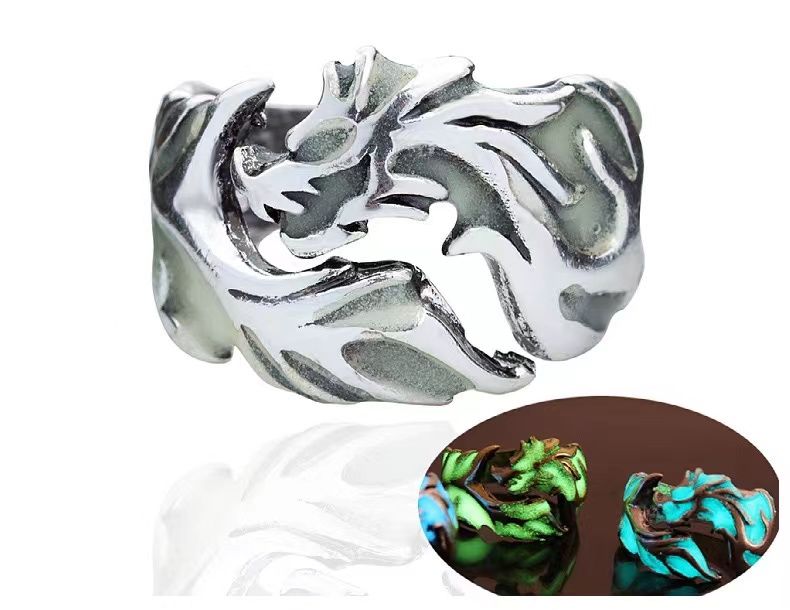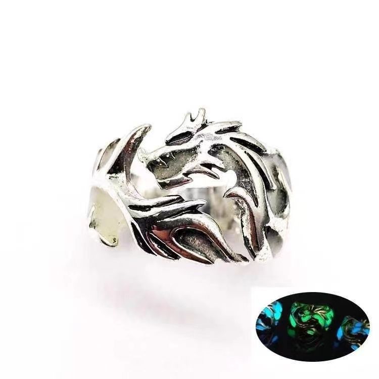 夜光飞龙戒指男士网红炫酷发光戒指男款霸气玩具男龙头个性可调节