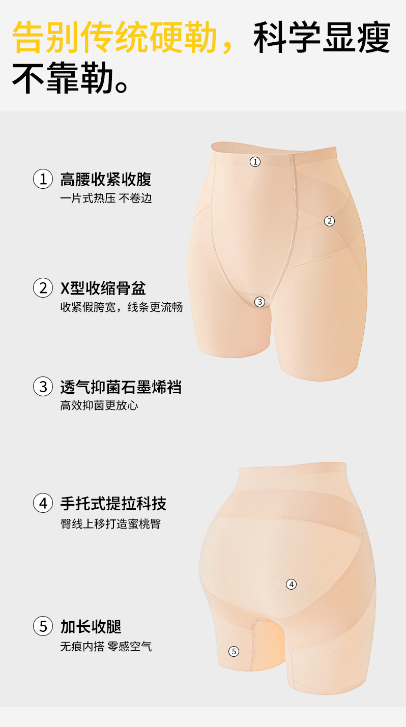 收腹内裤女塑身裤强力收小腹提臀打底裤高腰锦纶强效束身不卷边