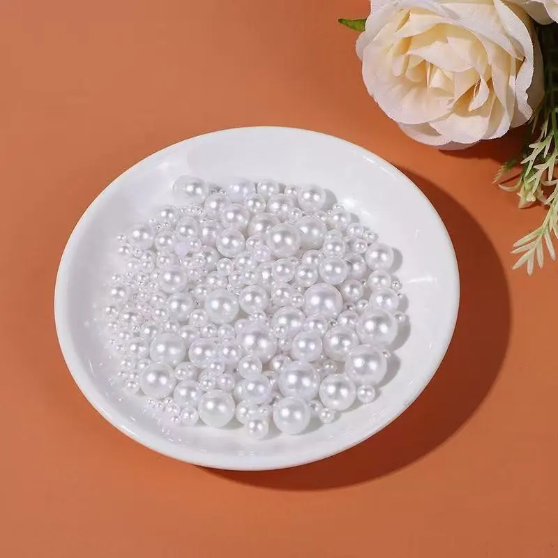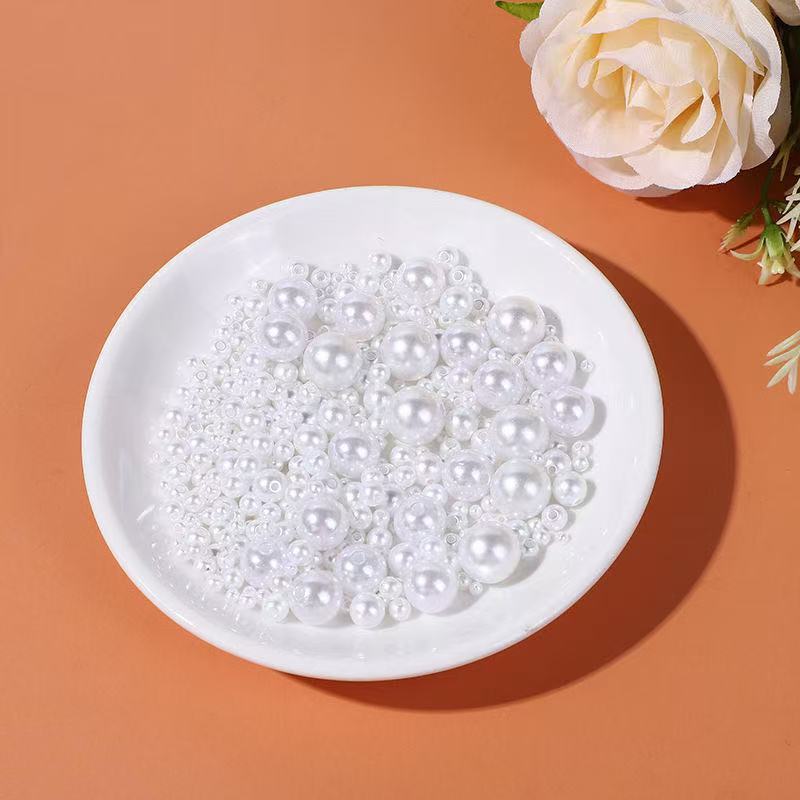 仿珍珠DIY手工饰品配件无孔有孔米白串珠3-16mm 混装散珠材料圆珠