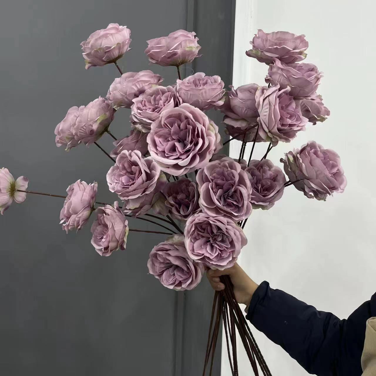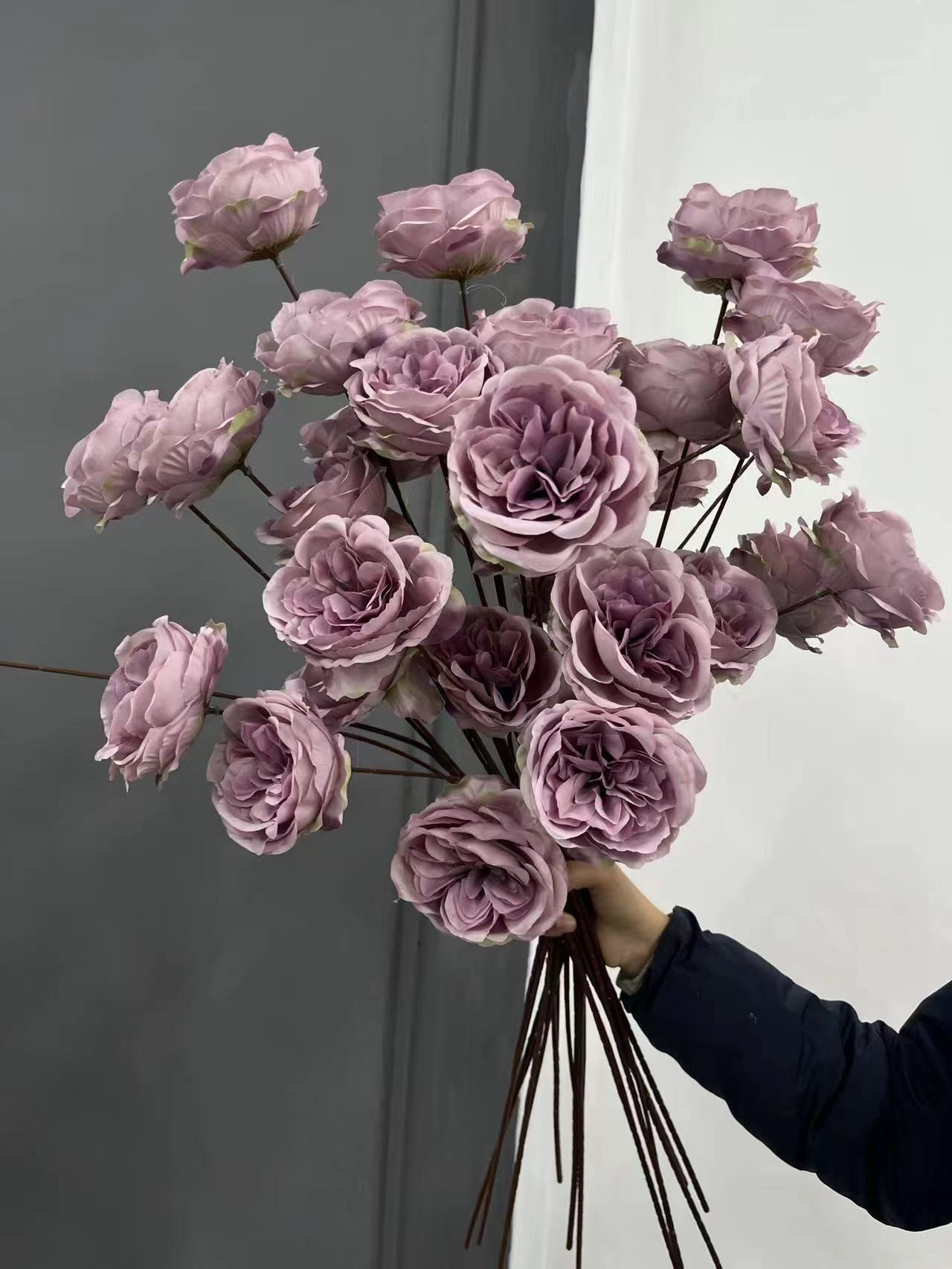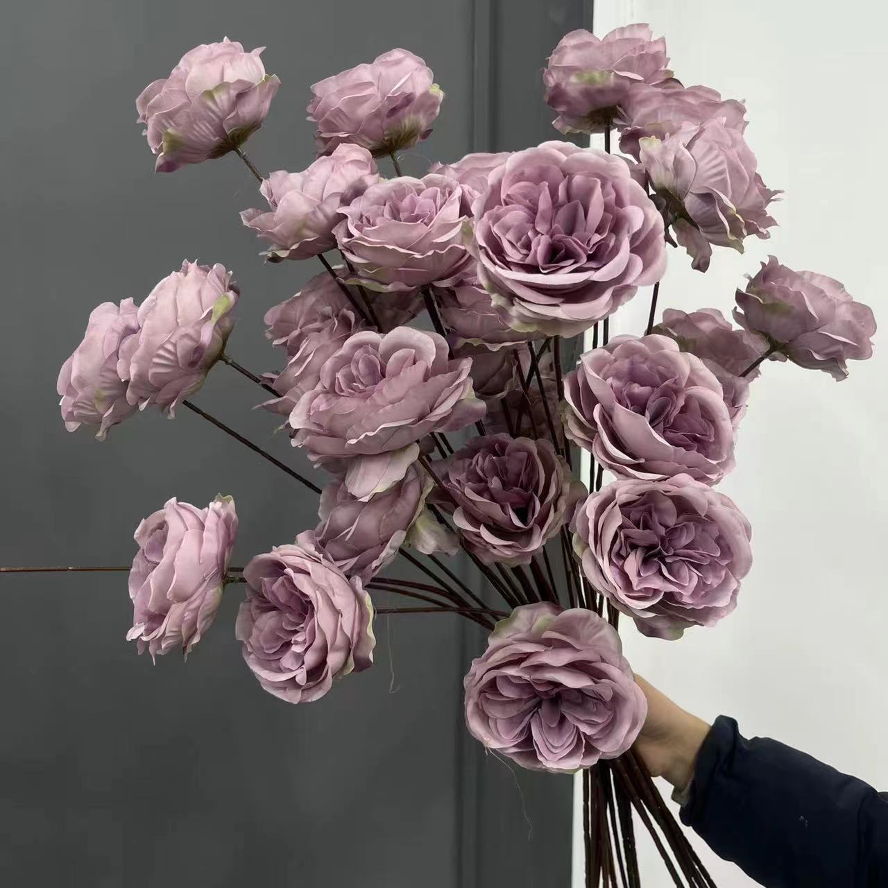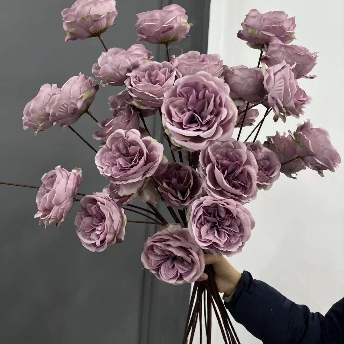 紫色婚礼仿真花雾霾紫色芍药牡丹呢奥斯丁挑高大花材团状花材路引