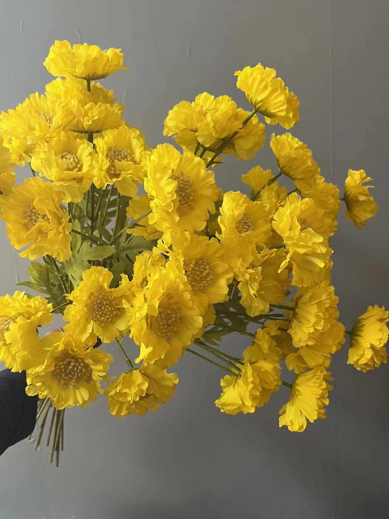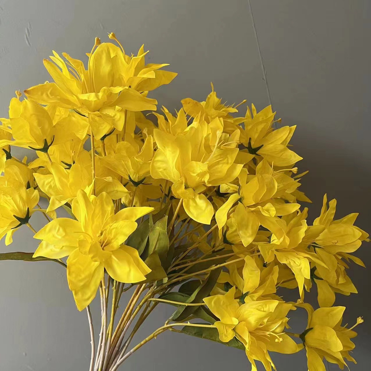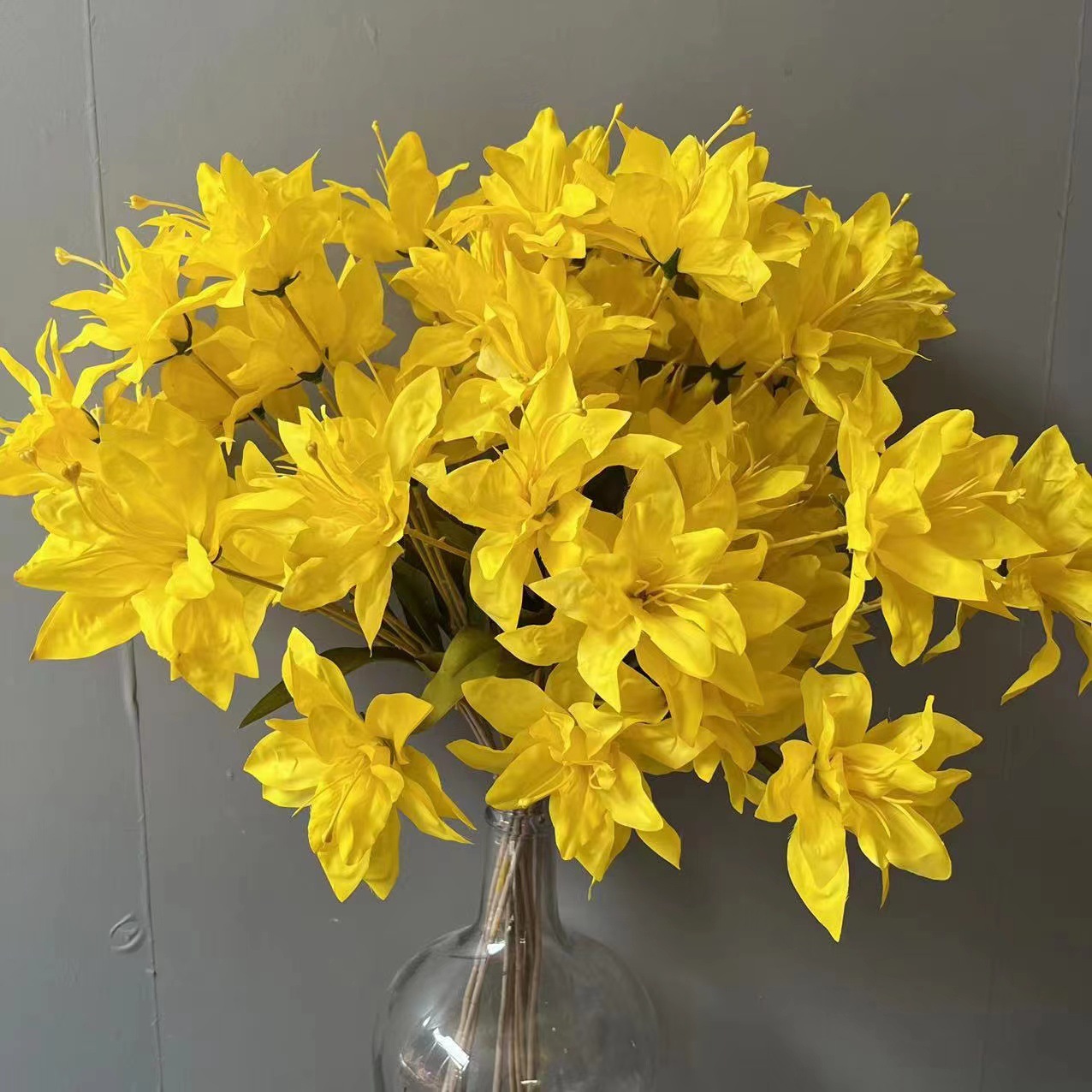 柠檬黄色仿真花蕾丝牡丹挑高花材背景花路引花百合花假花绢花玫瑰