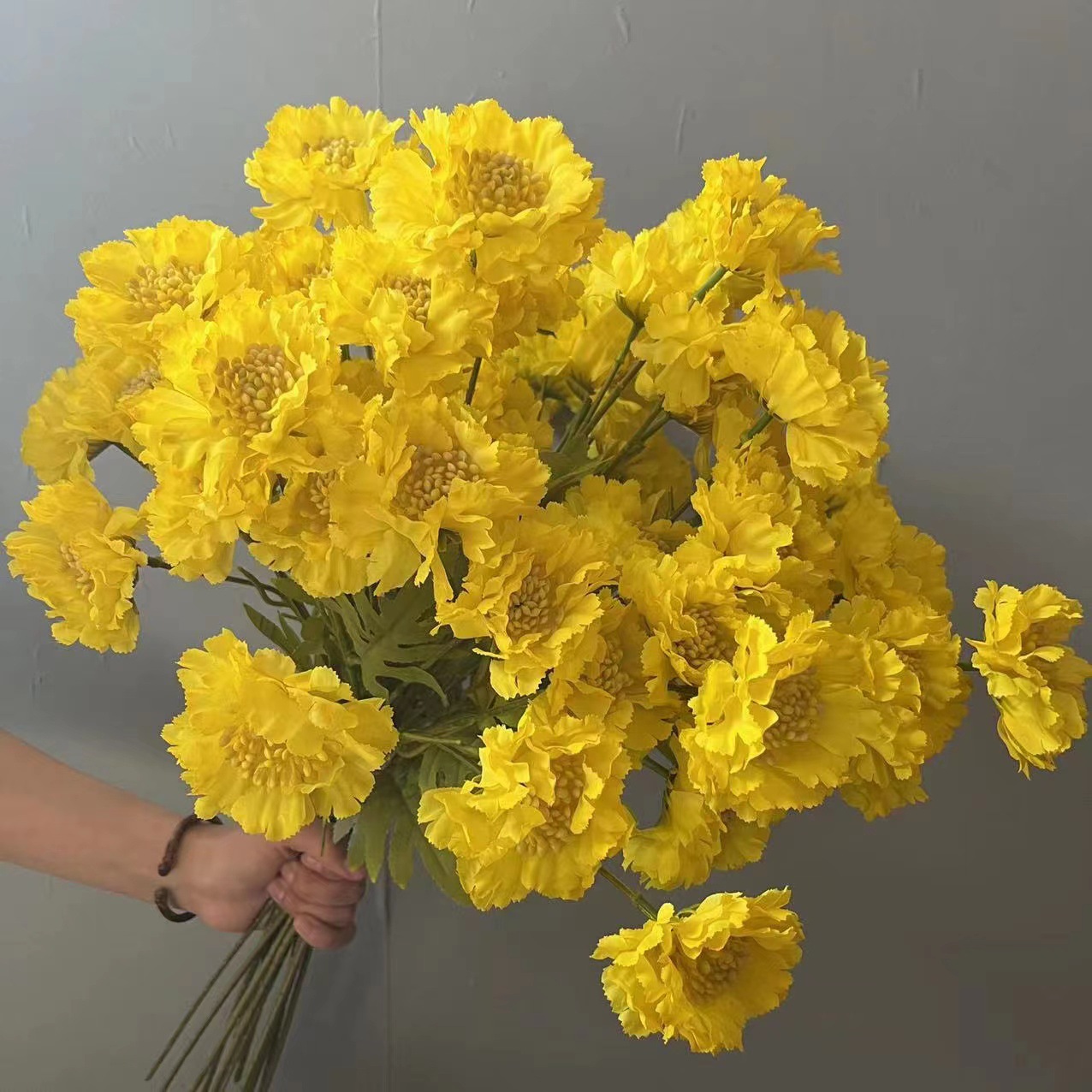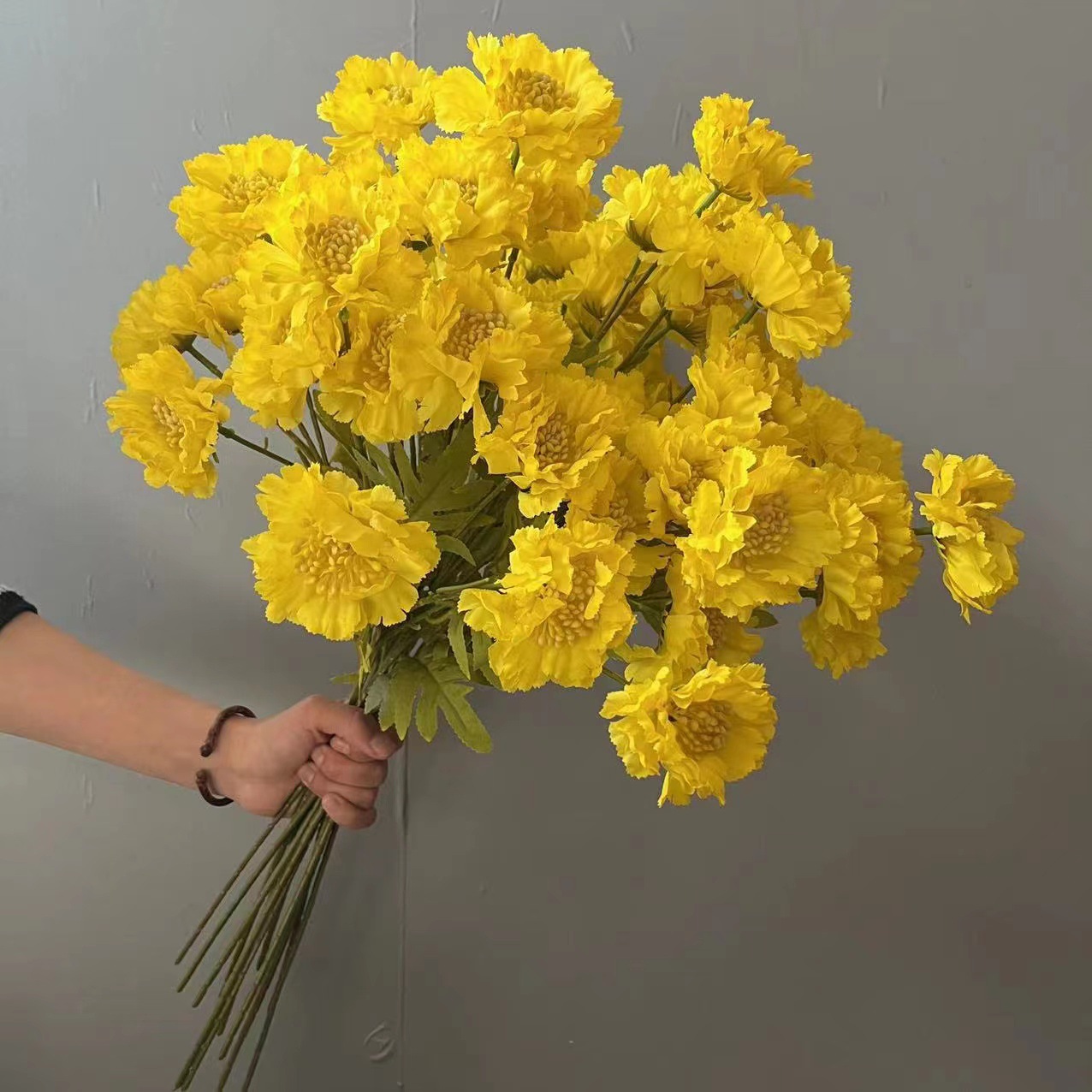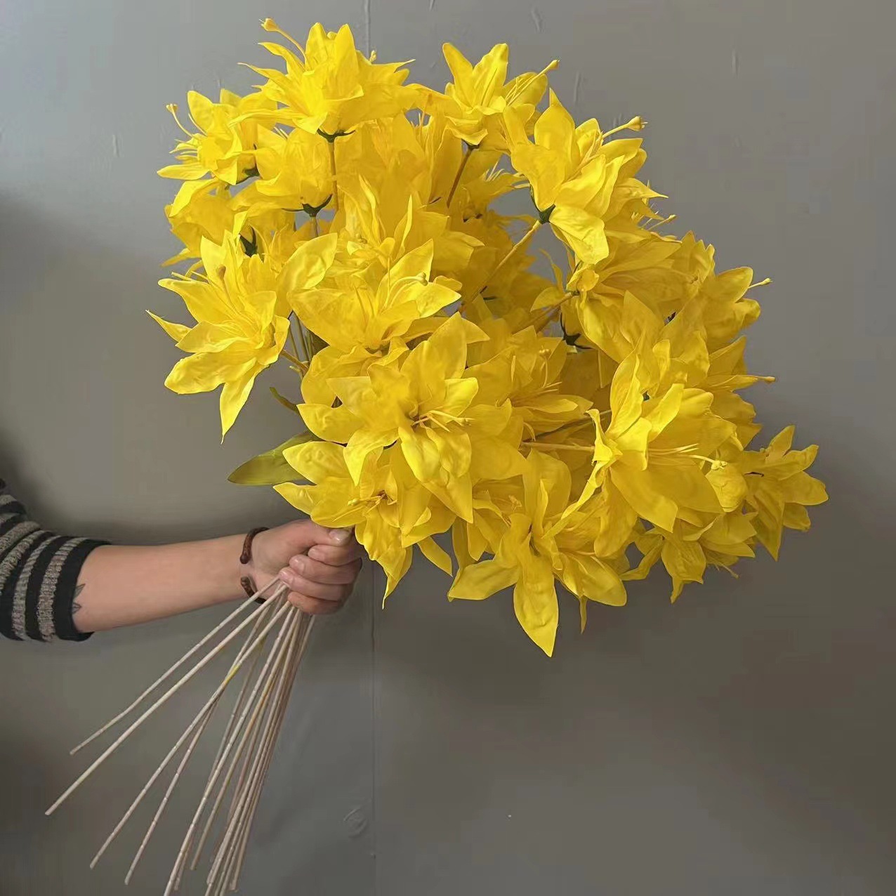 柠檬黄色仿真花蕾丝牡丹挑高花材背景花路引花百合花假花绢花玫瑰