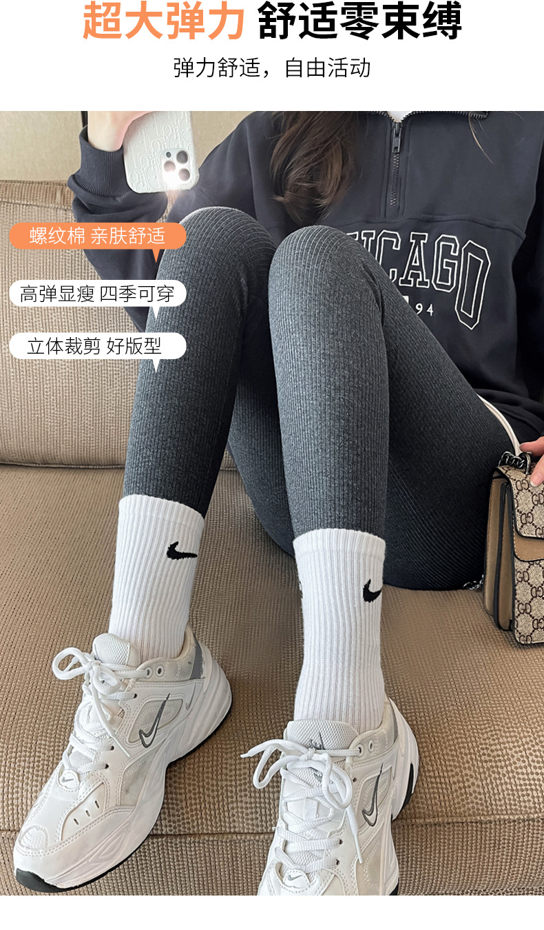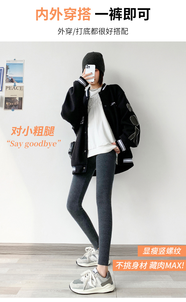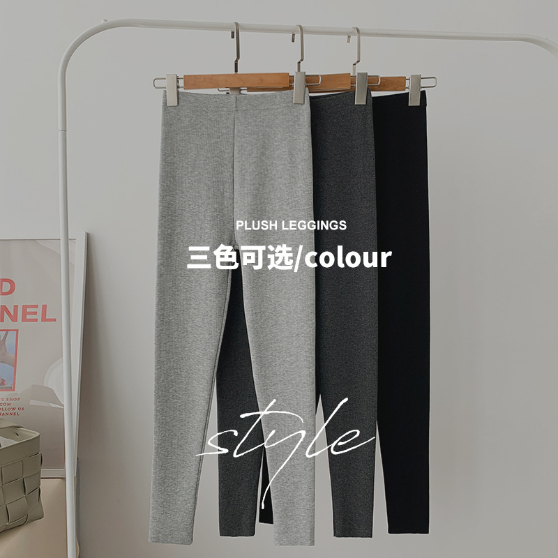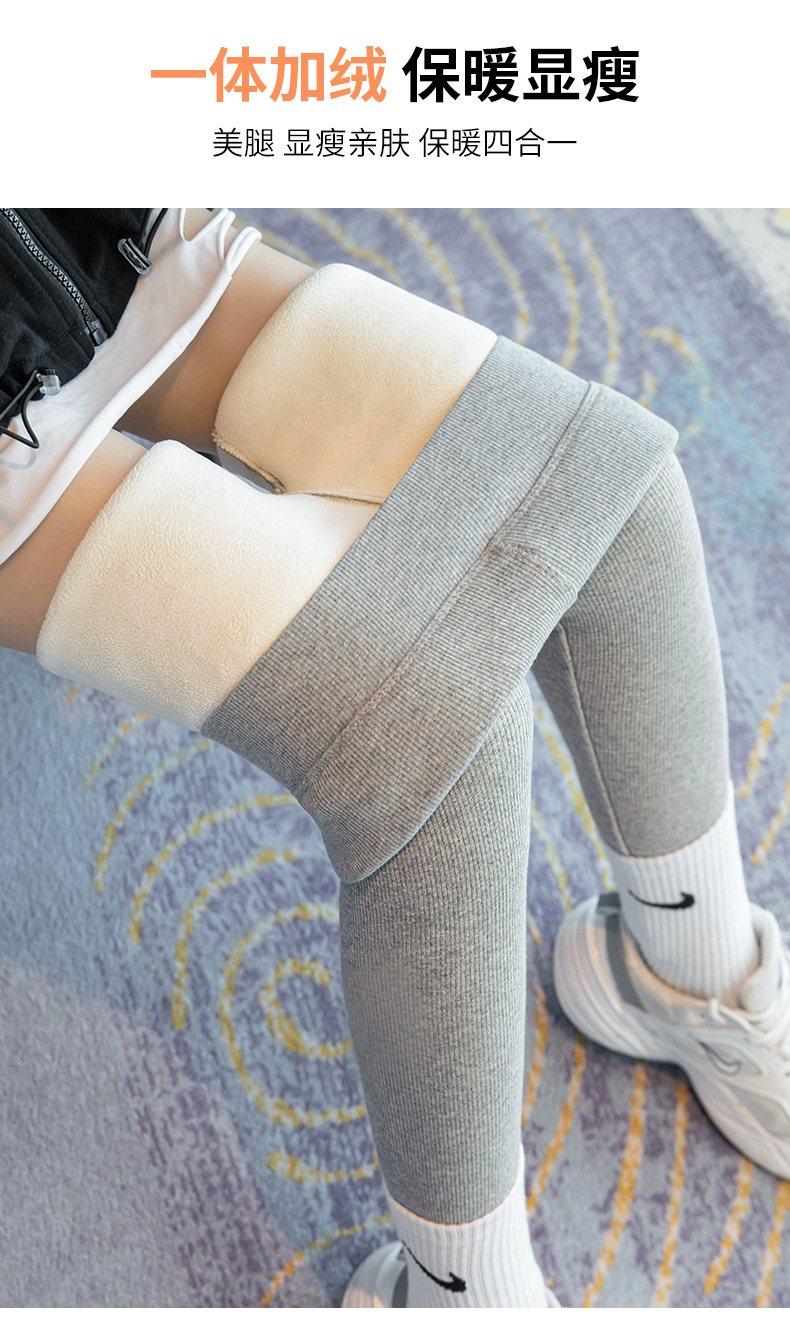螺纹打底裤秋冬新款外穿冬季加绒加厚竖条纹羊羔绒秋裤秋冬高腰