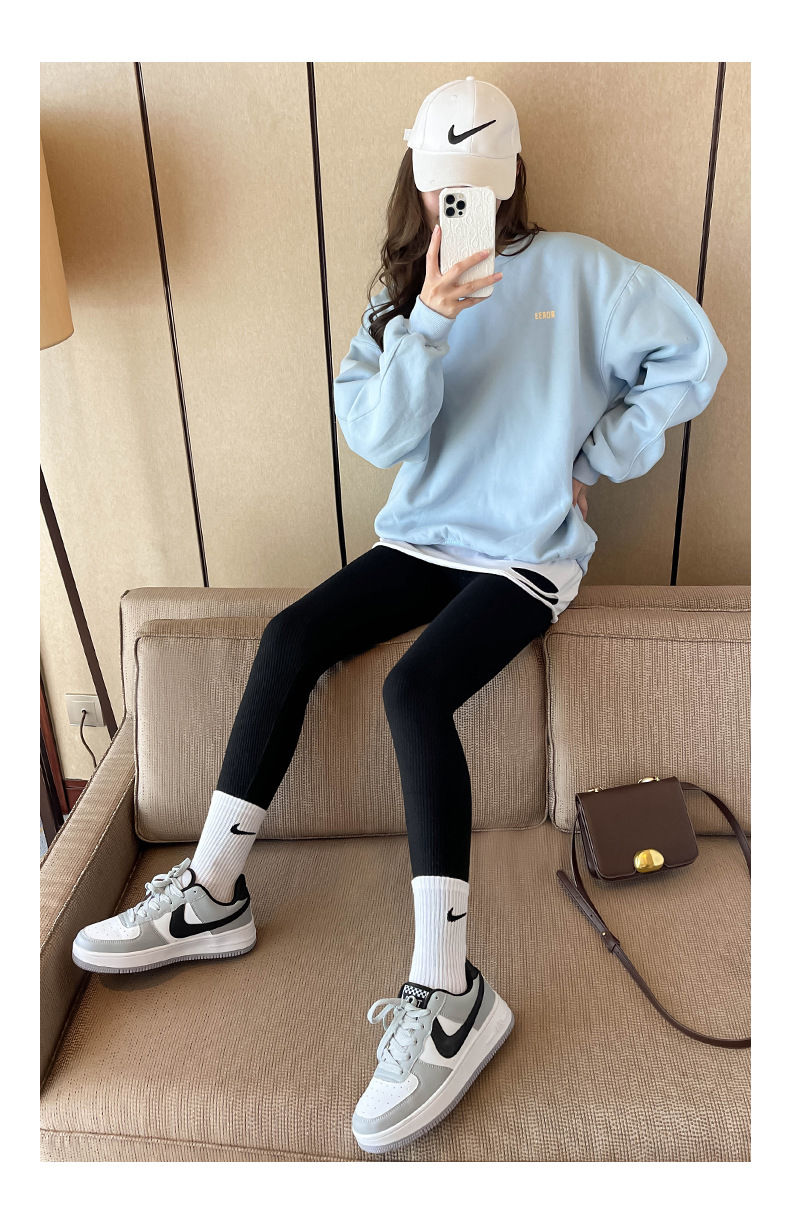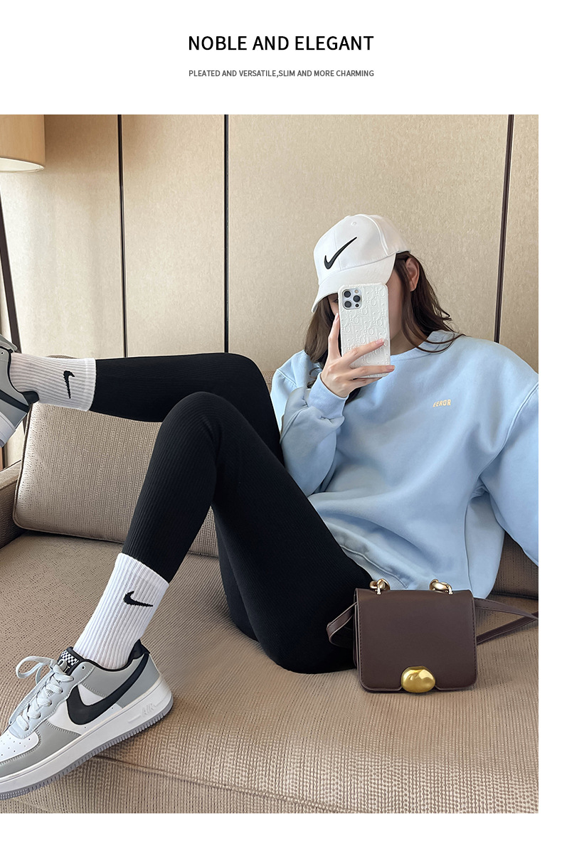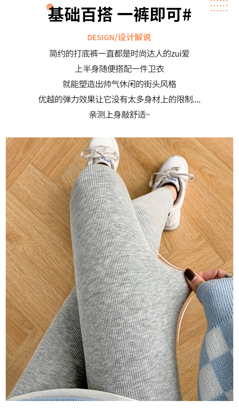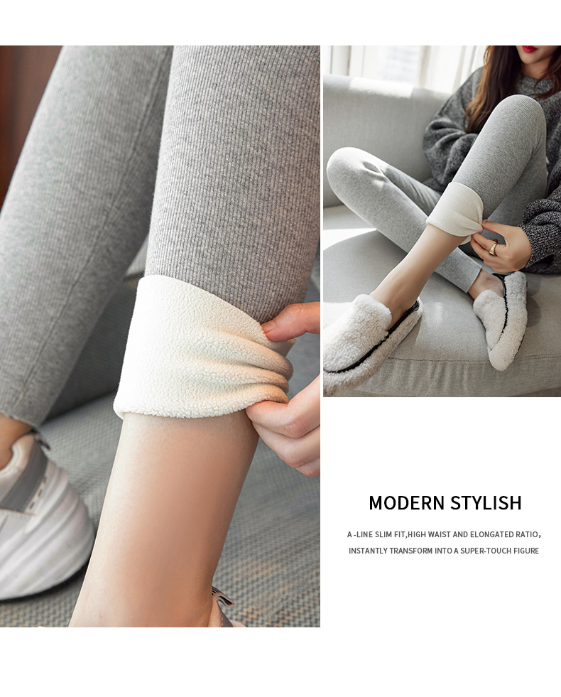 螺纹打底裤秋冬新款外穿冬季加绒加厚竖条纹羊羔绒秋裤秋冬高腰