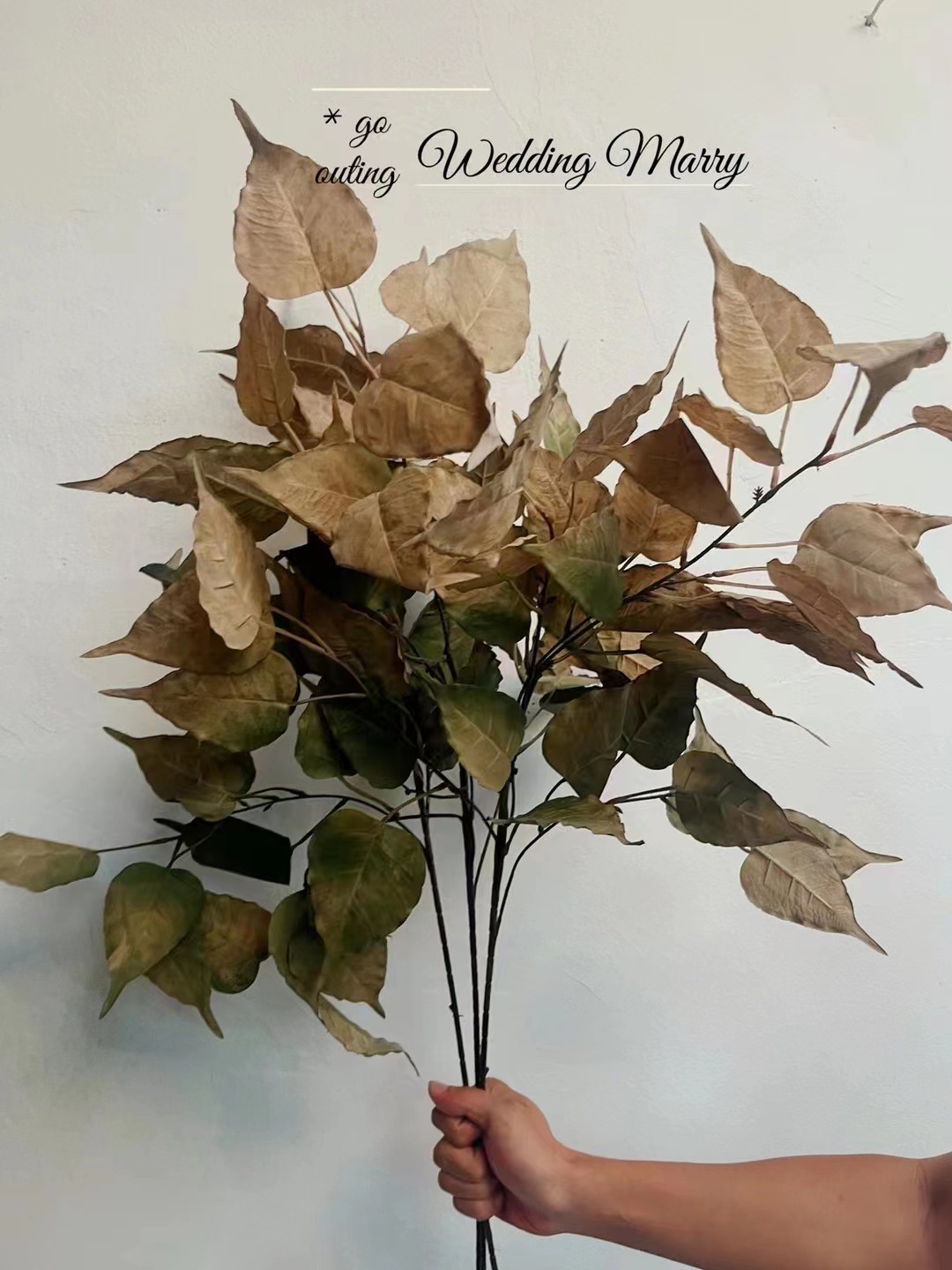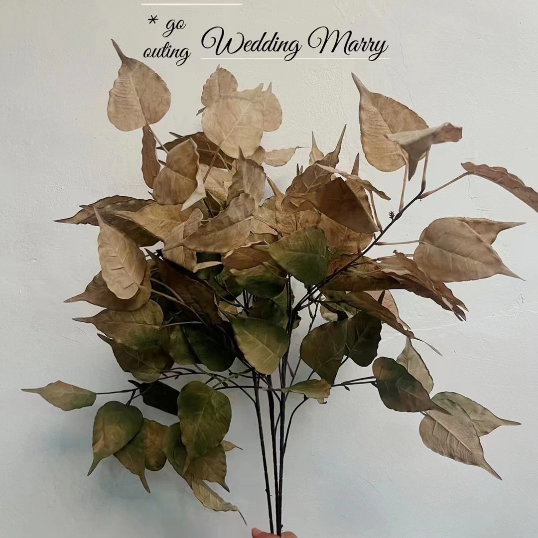秋咖色奶咖色奶茶色婚庆仿真秋叶婚礼堂秋色花材秋黄色打底挑高叶