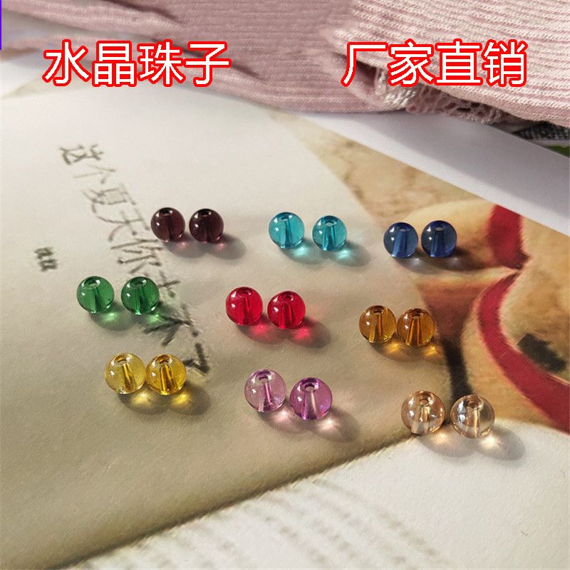 DIY手工4-8mm透明水晶散珠圆珠子饰品耳饰材料玻璃珠光珠发簪珠帘