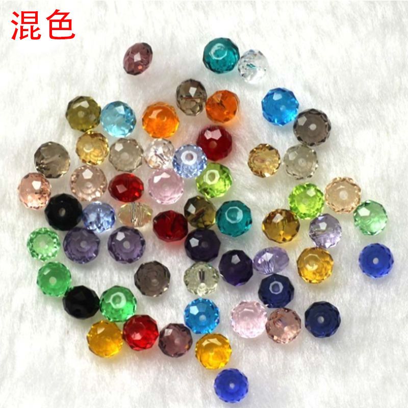 24色6/8mm100/200颗水晶扁圆形珠子手工DIY串珠散珠编手链项链