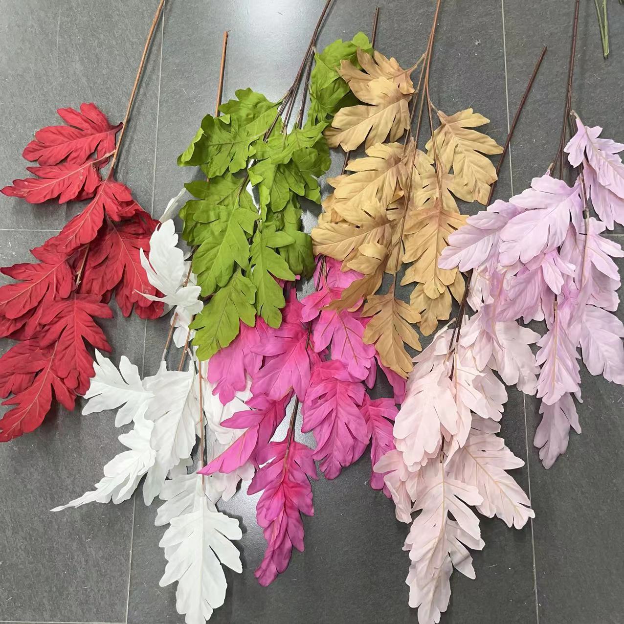仿真橡树叶婚庆婚礼堂吊顶打底插花多用假叶插花花排锯齿叶大叶材