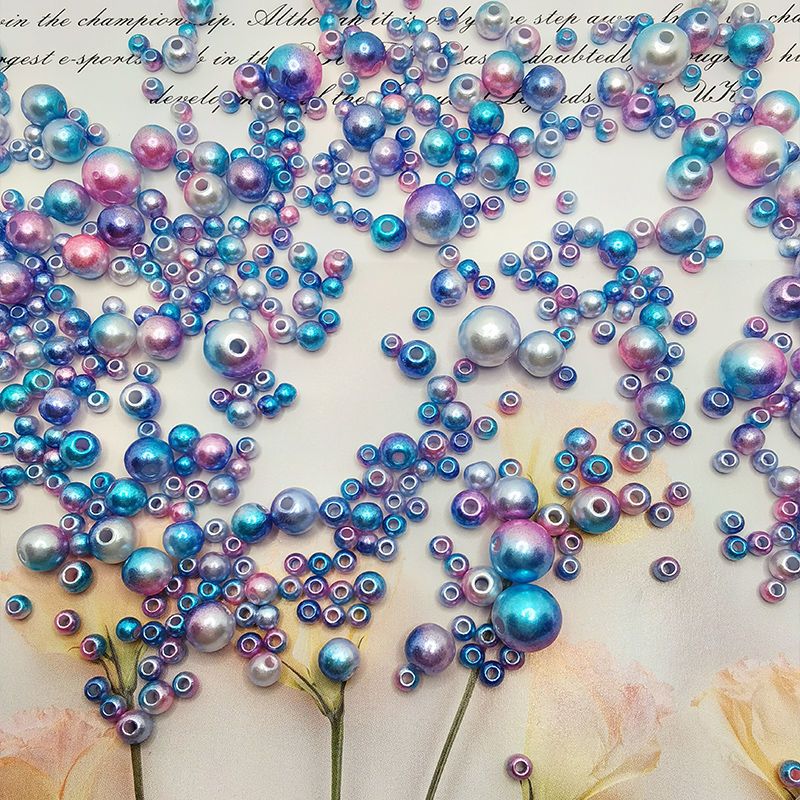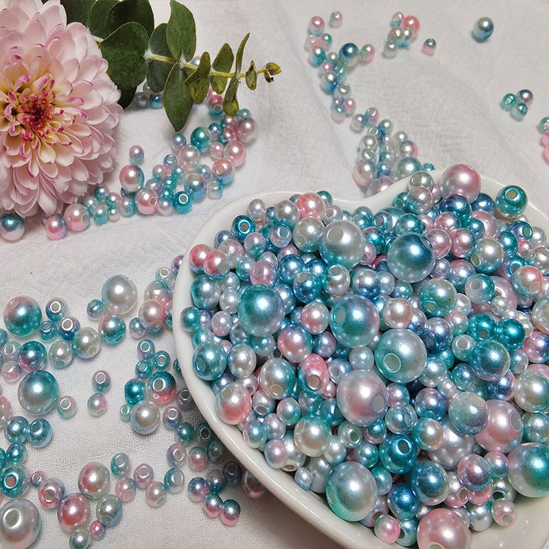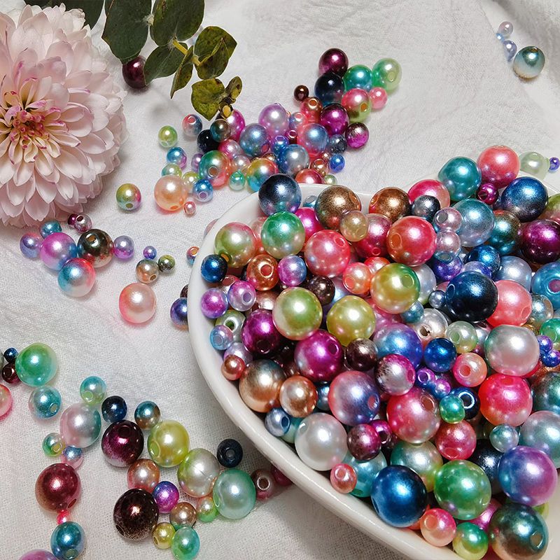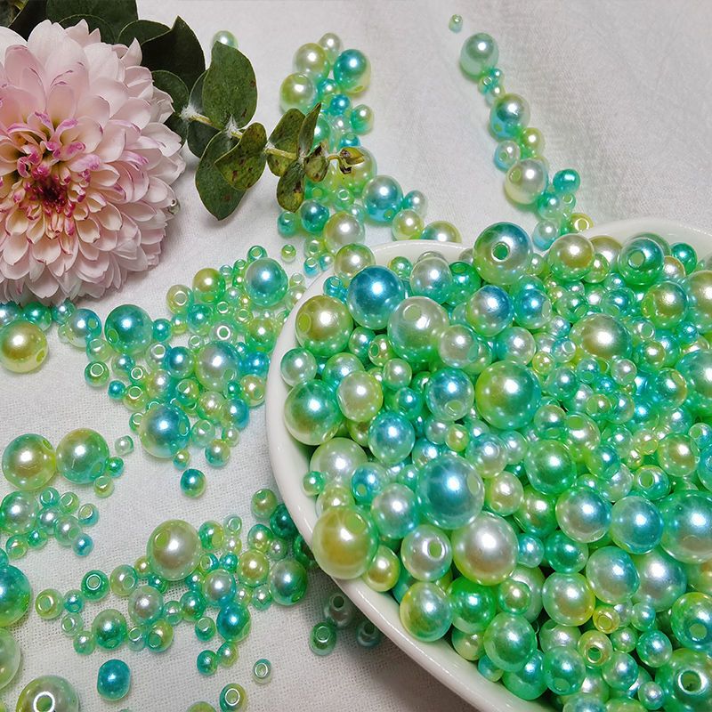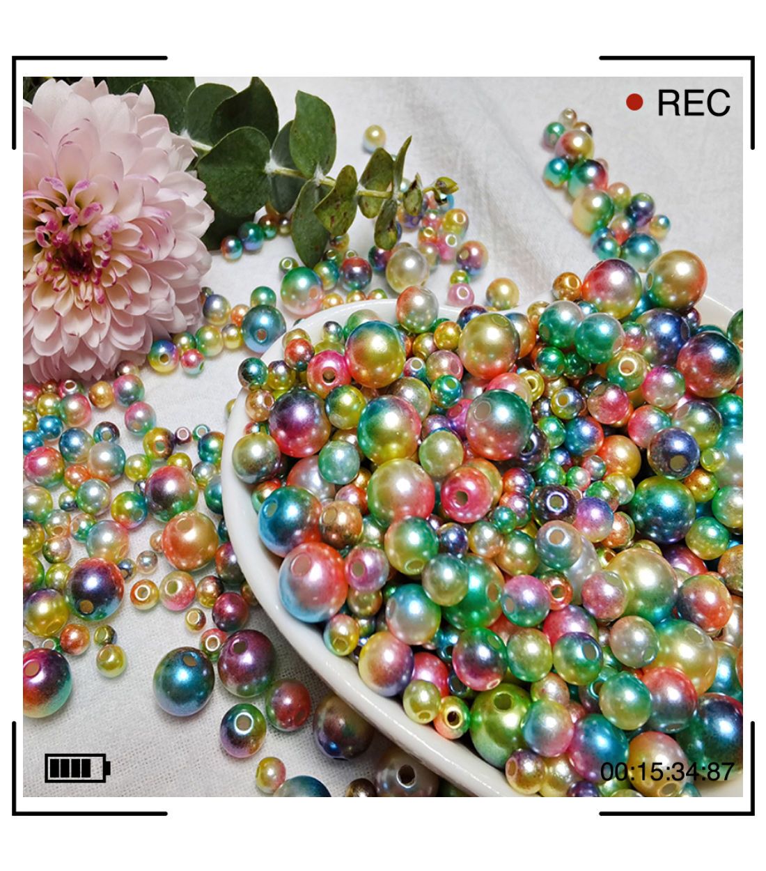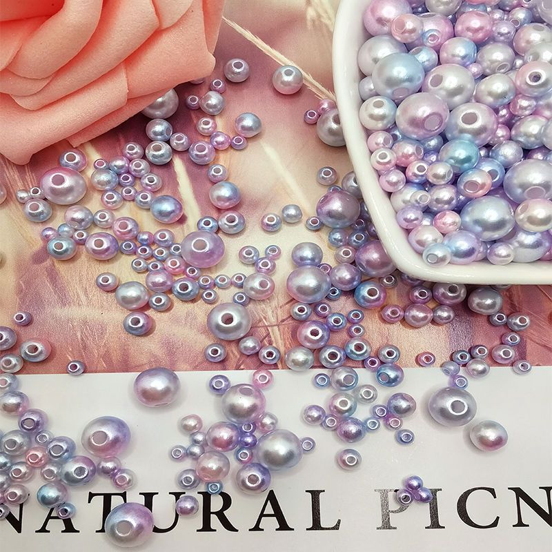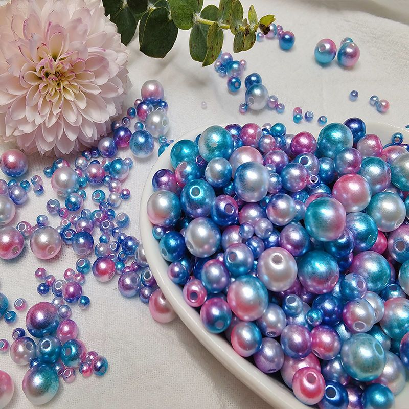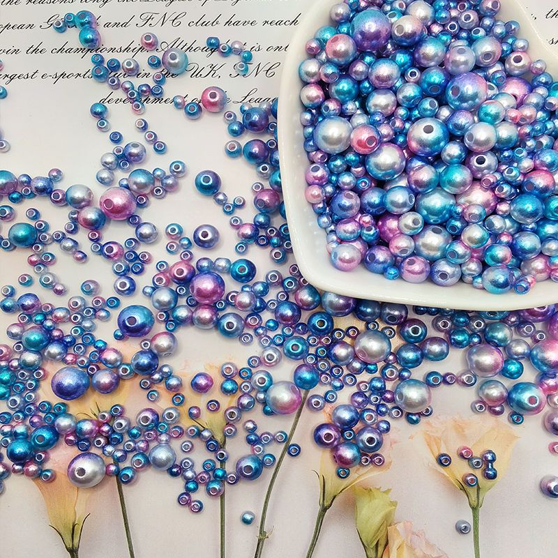 人鱼色渐变有孔仿珍珠散珠穿孔珠子diy手工串珠衣服配件钉珠材料