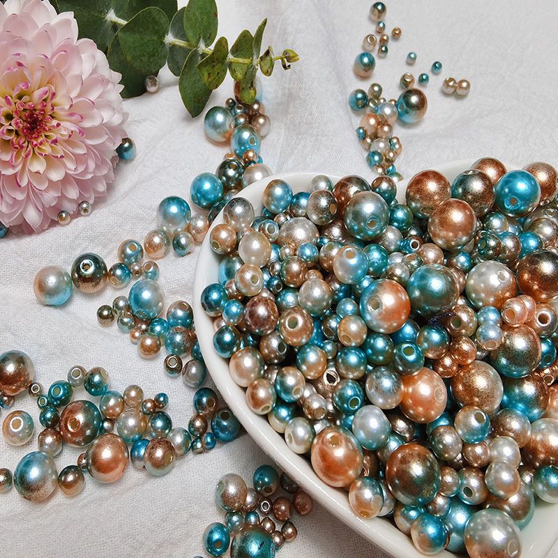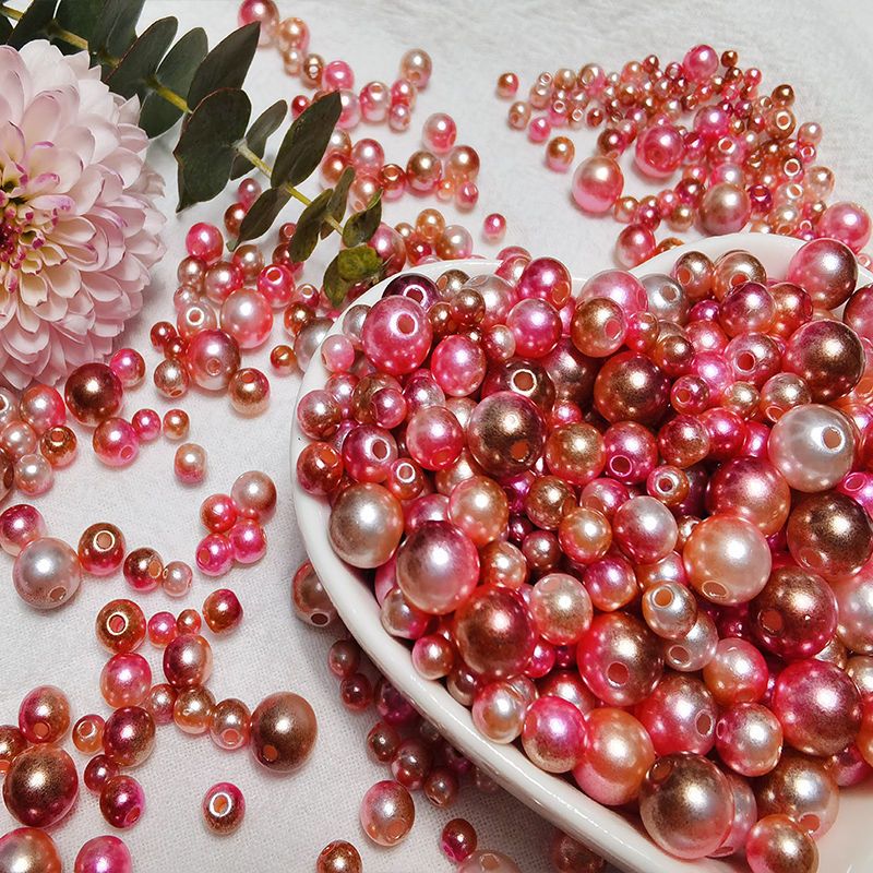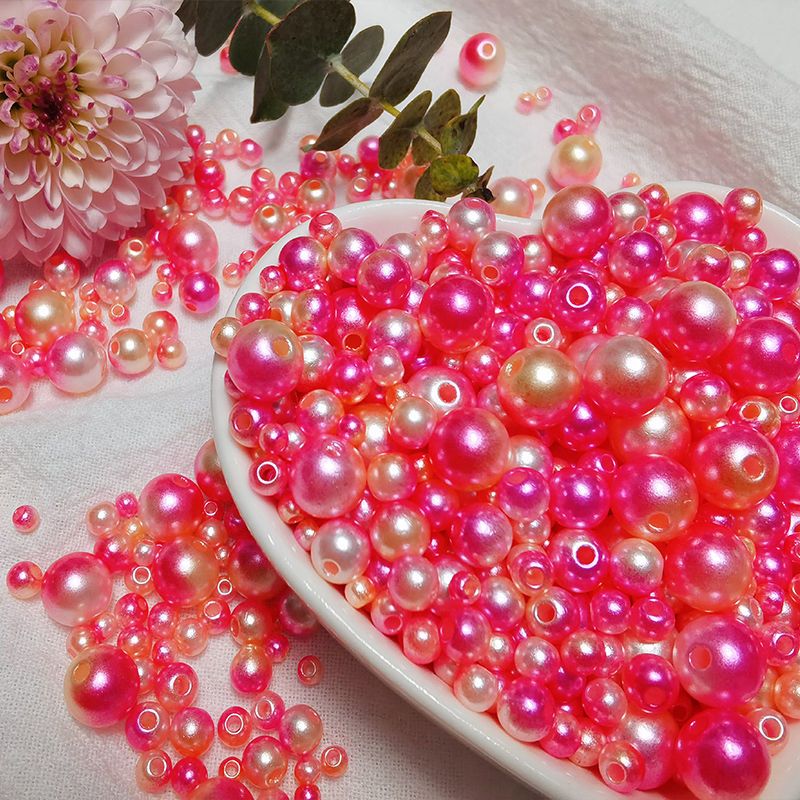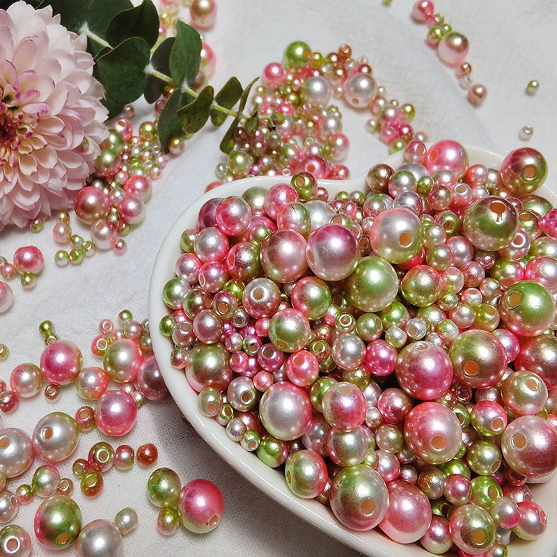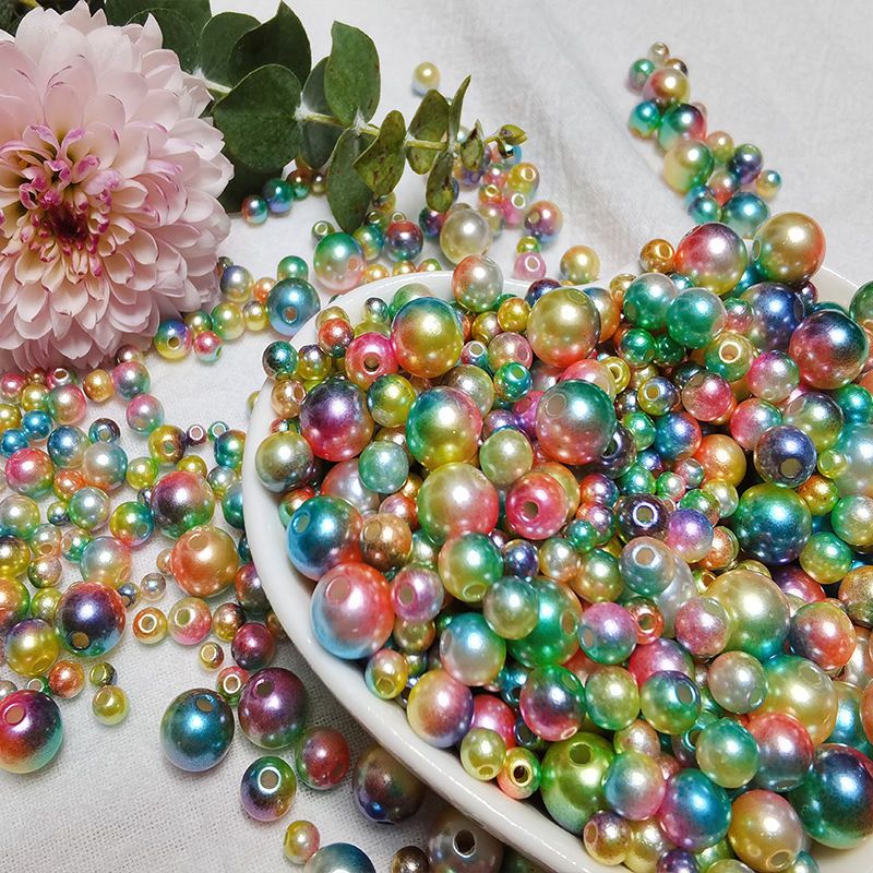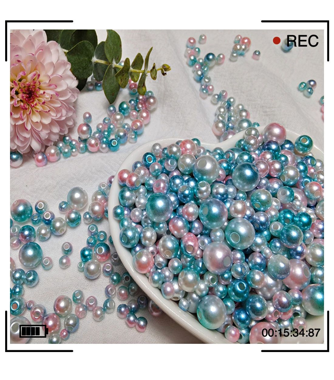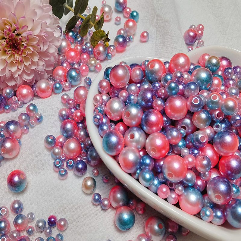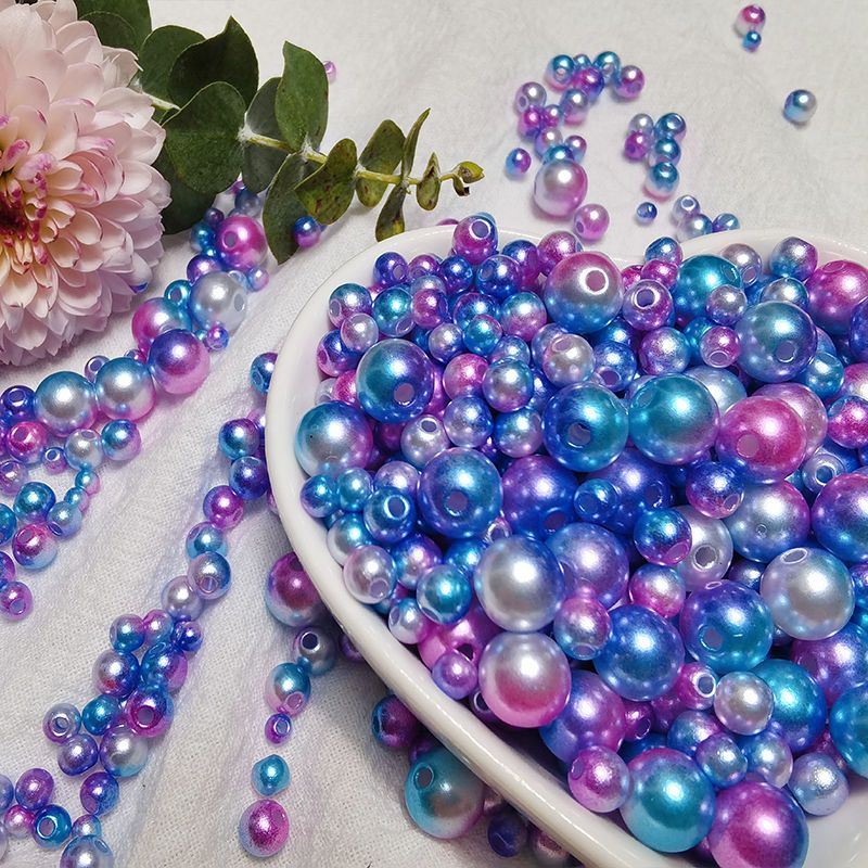 人鱼色渐变有孔仿珍珠散珠穿孔珠子diy手工串珠衣服配件钉珠材料
