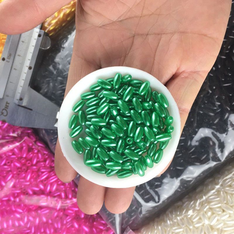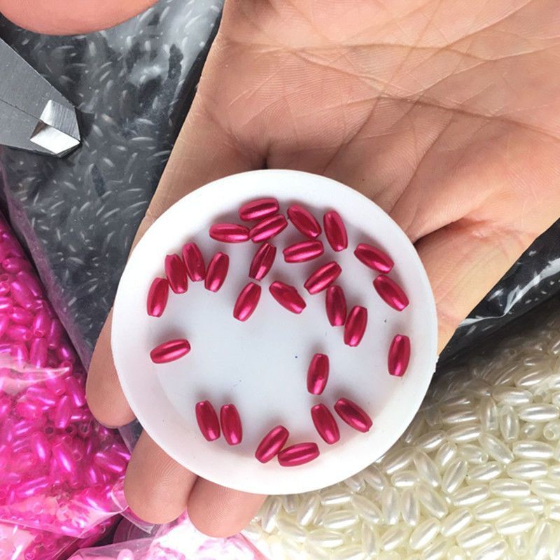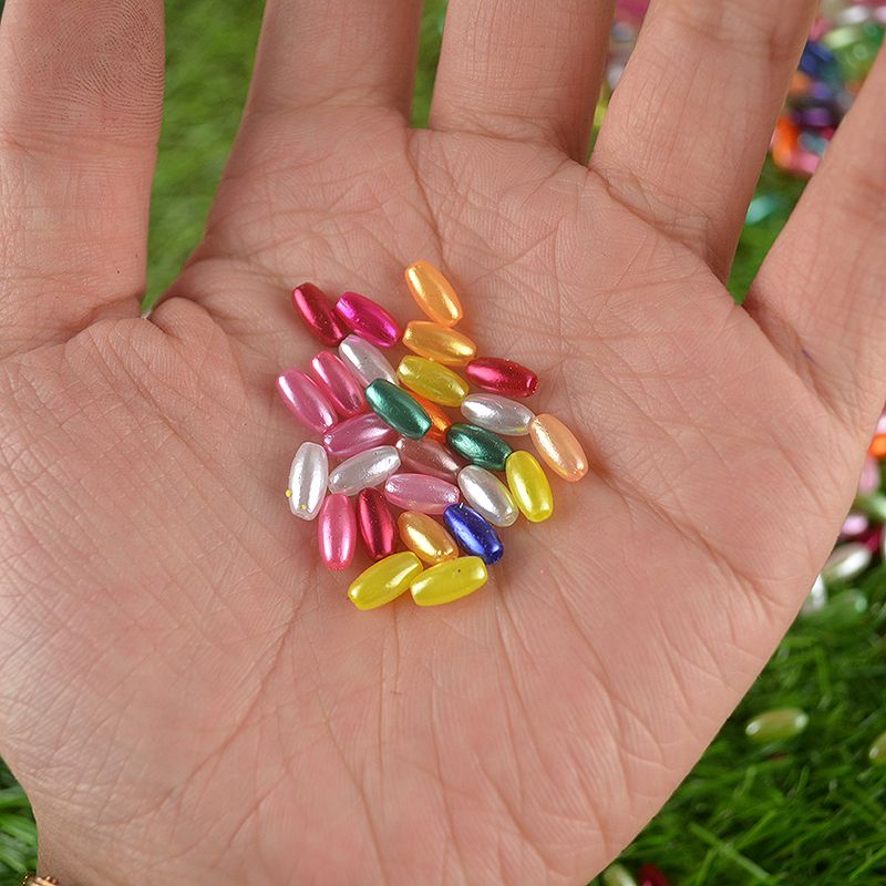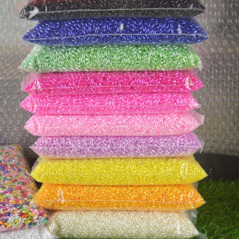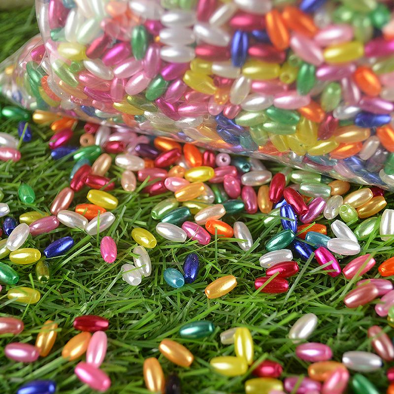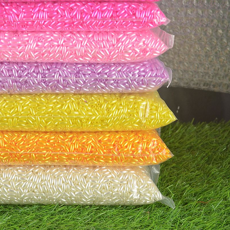 麦穗珠4×8mm椭圆型米形珠橄榄形直孔仿珍珠婚纱辅料手工串珠配件