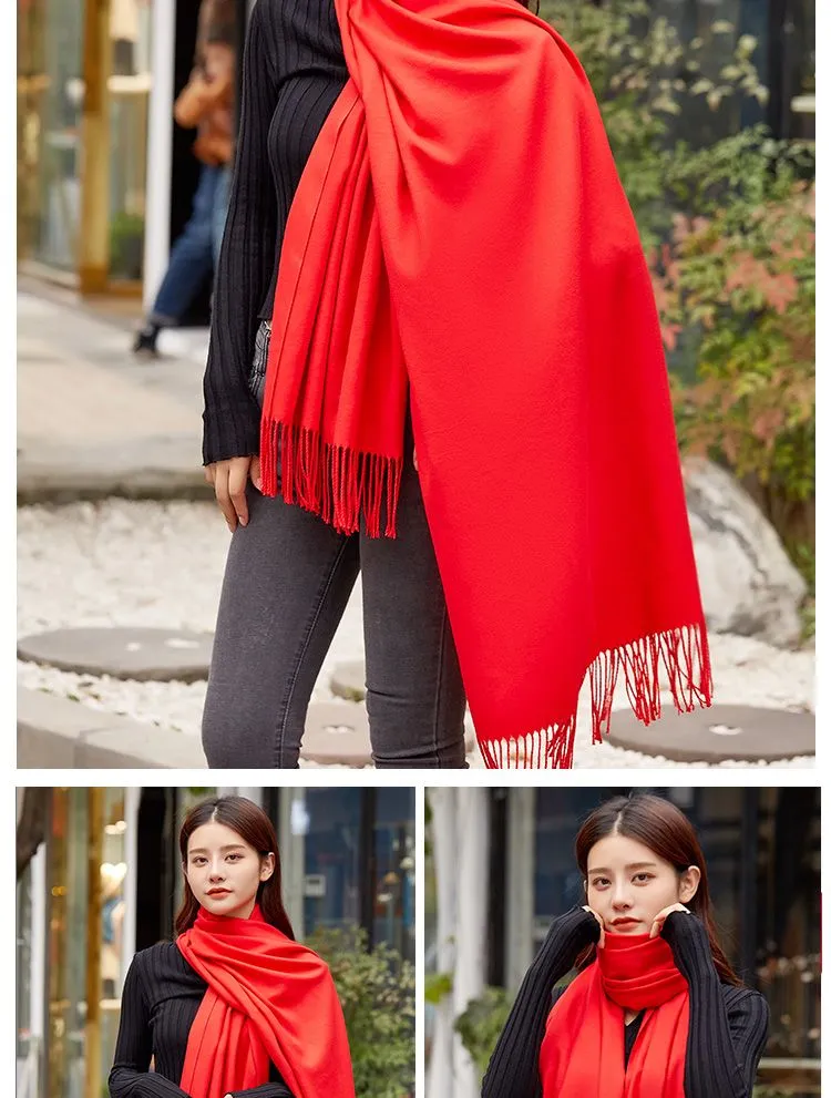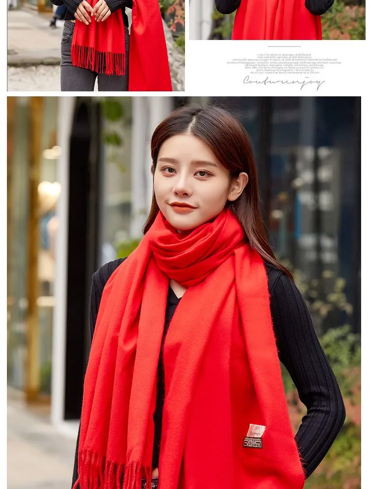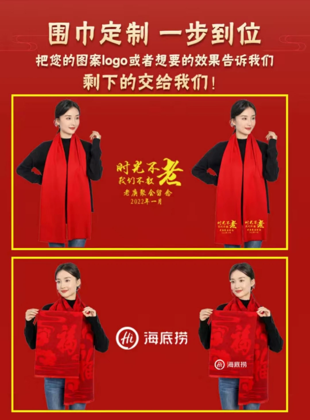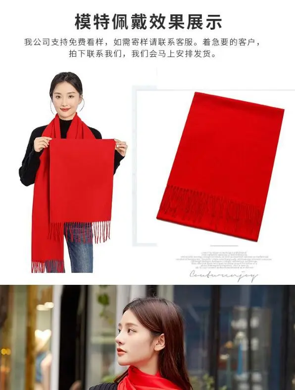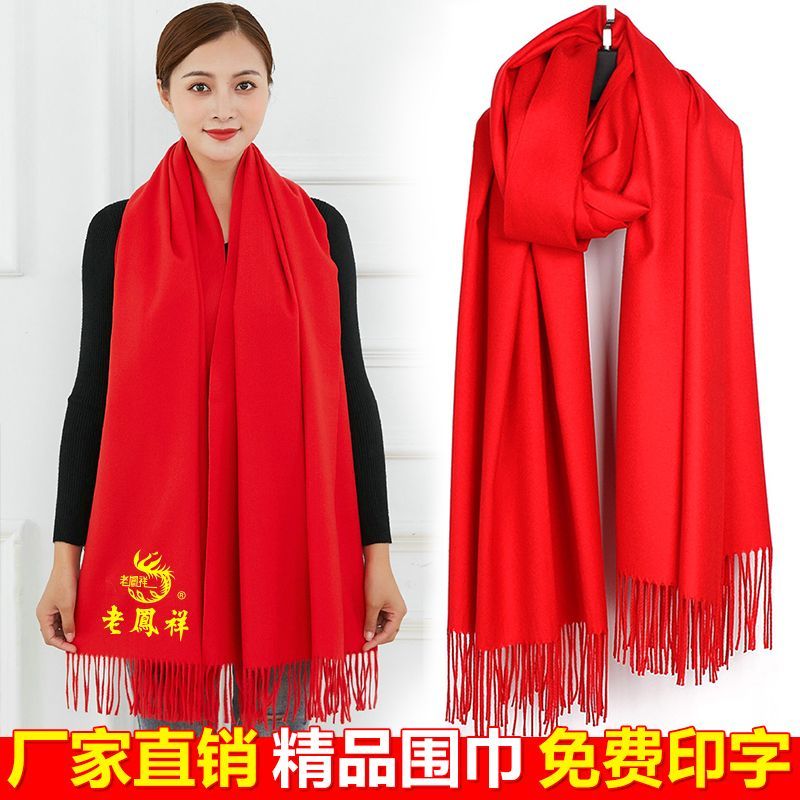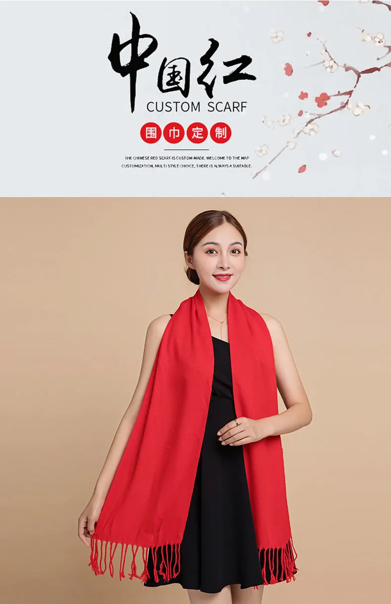 大红色围巾定制印logo聚会围巾印字印logo年会开业典礼中国红围巾