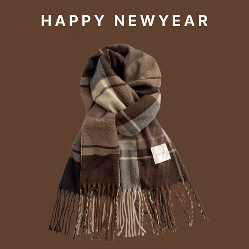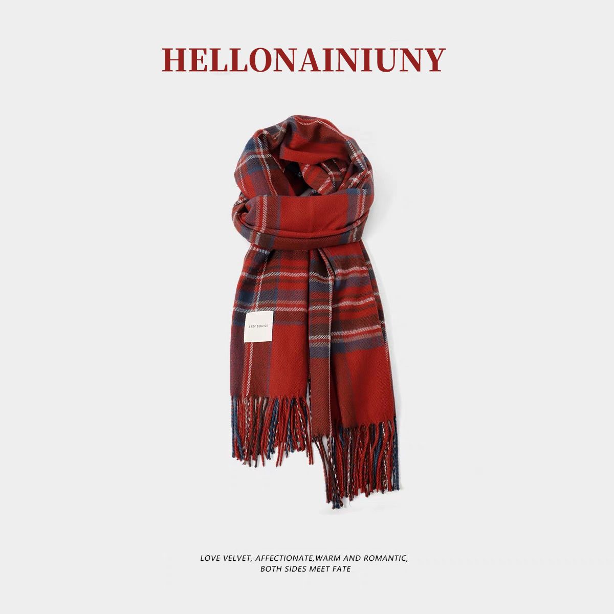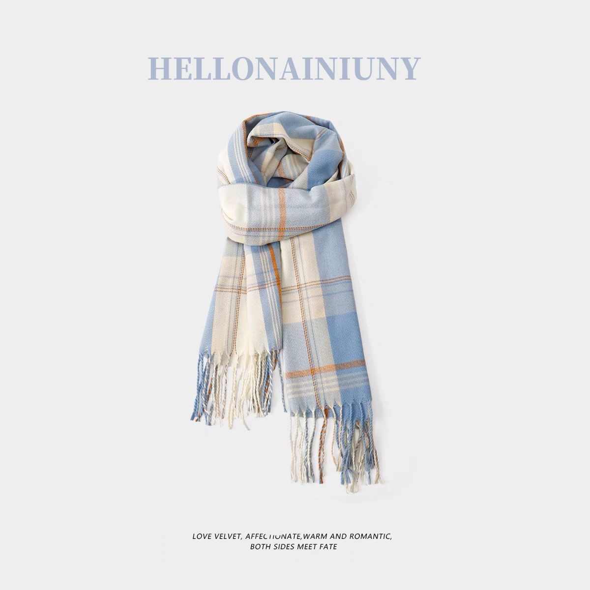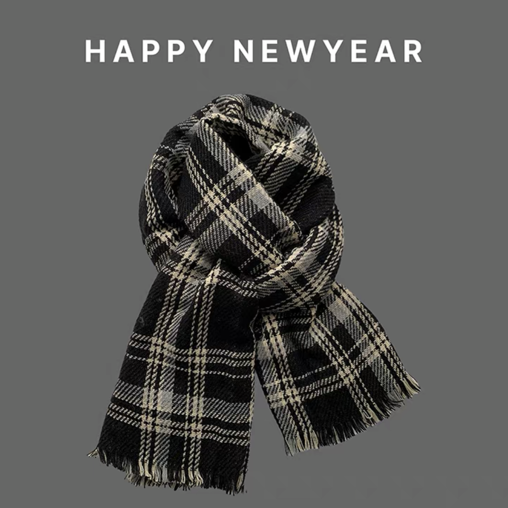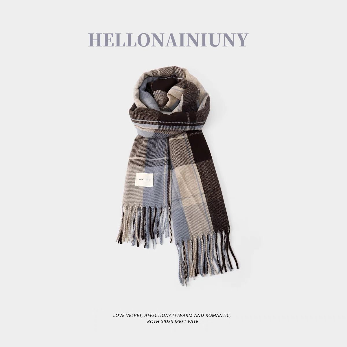 2024新款韩系氛围感格子围巾女冬季韩版百搭保暖学生氛围感围脖男
