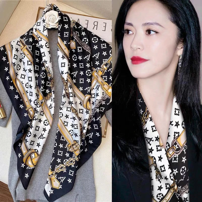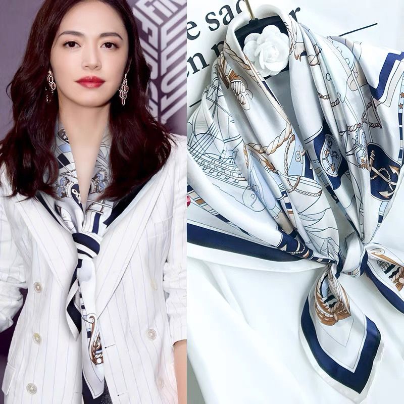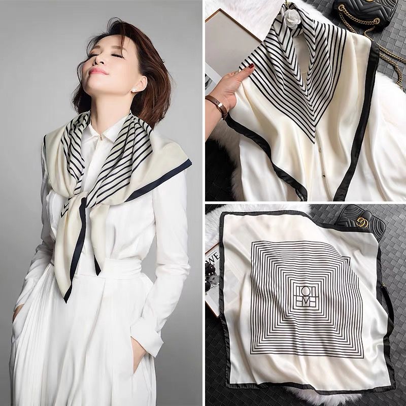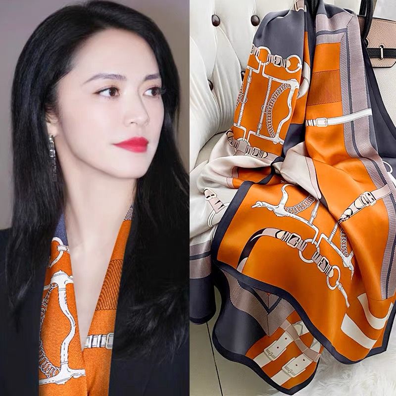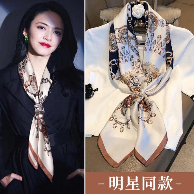 90大方巾丝巾女披肩春秋时尚百搭丝巾2024款高档小方巾包头围巾
