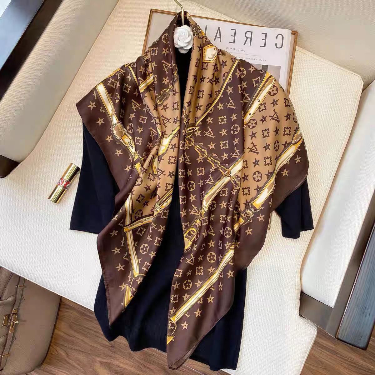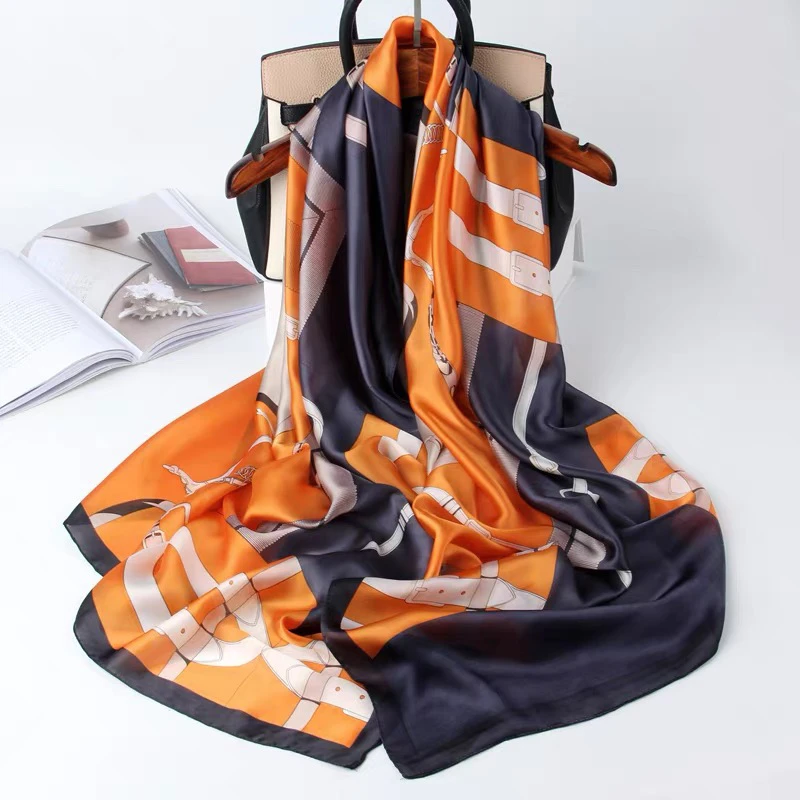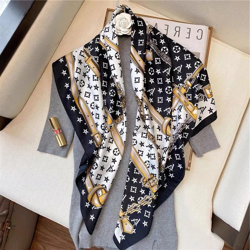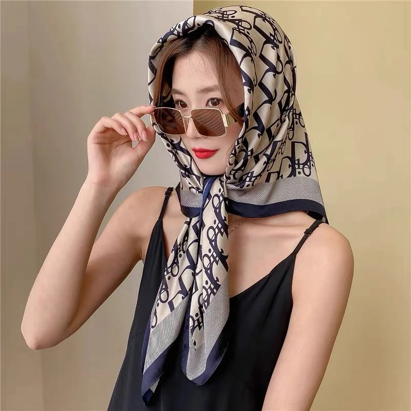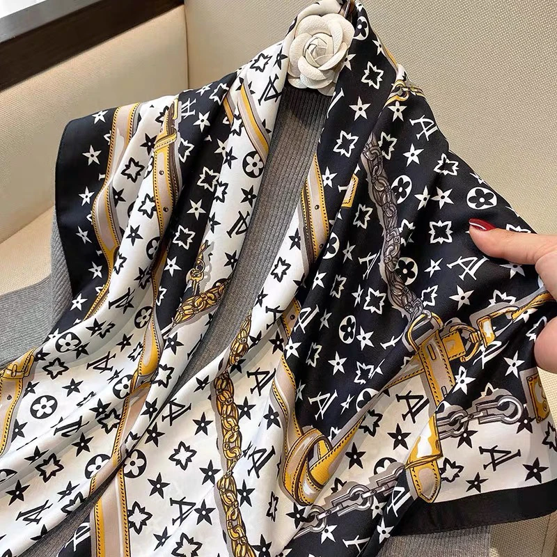 90大方巾丝巾女披肩春秋时尚百搭丝巾2024款高档小方巾包头围巾
