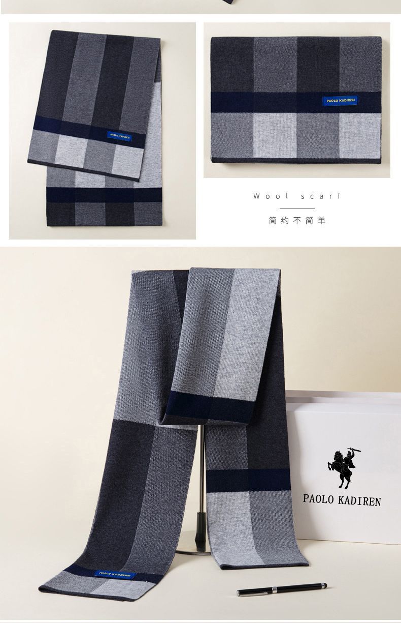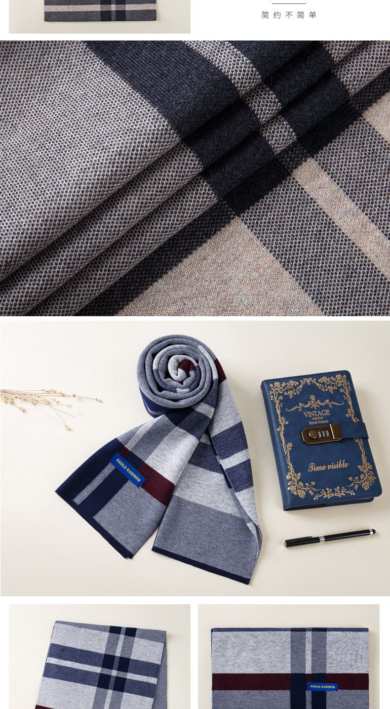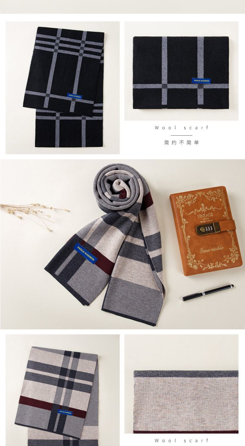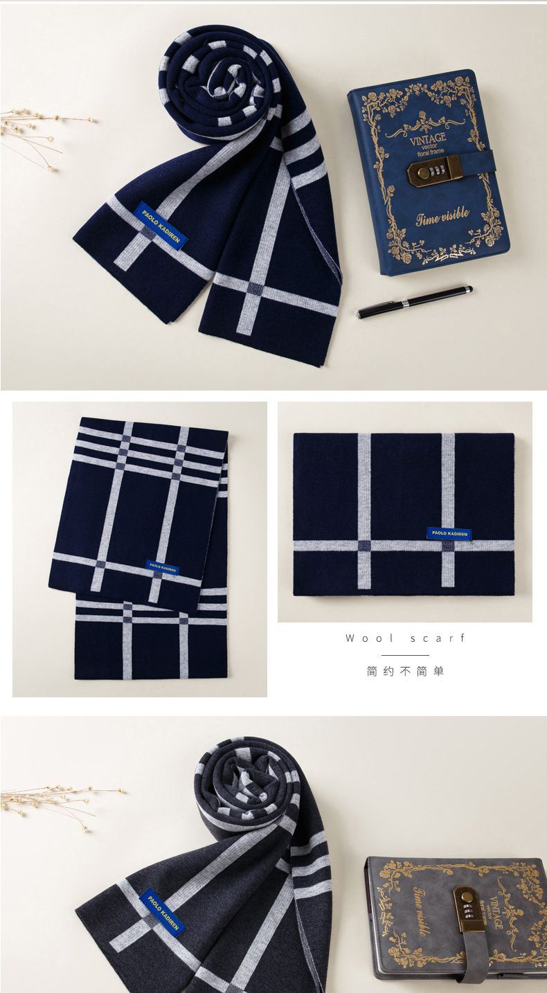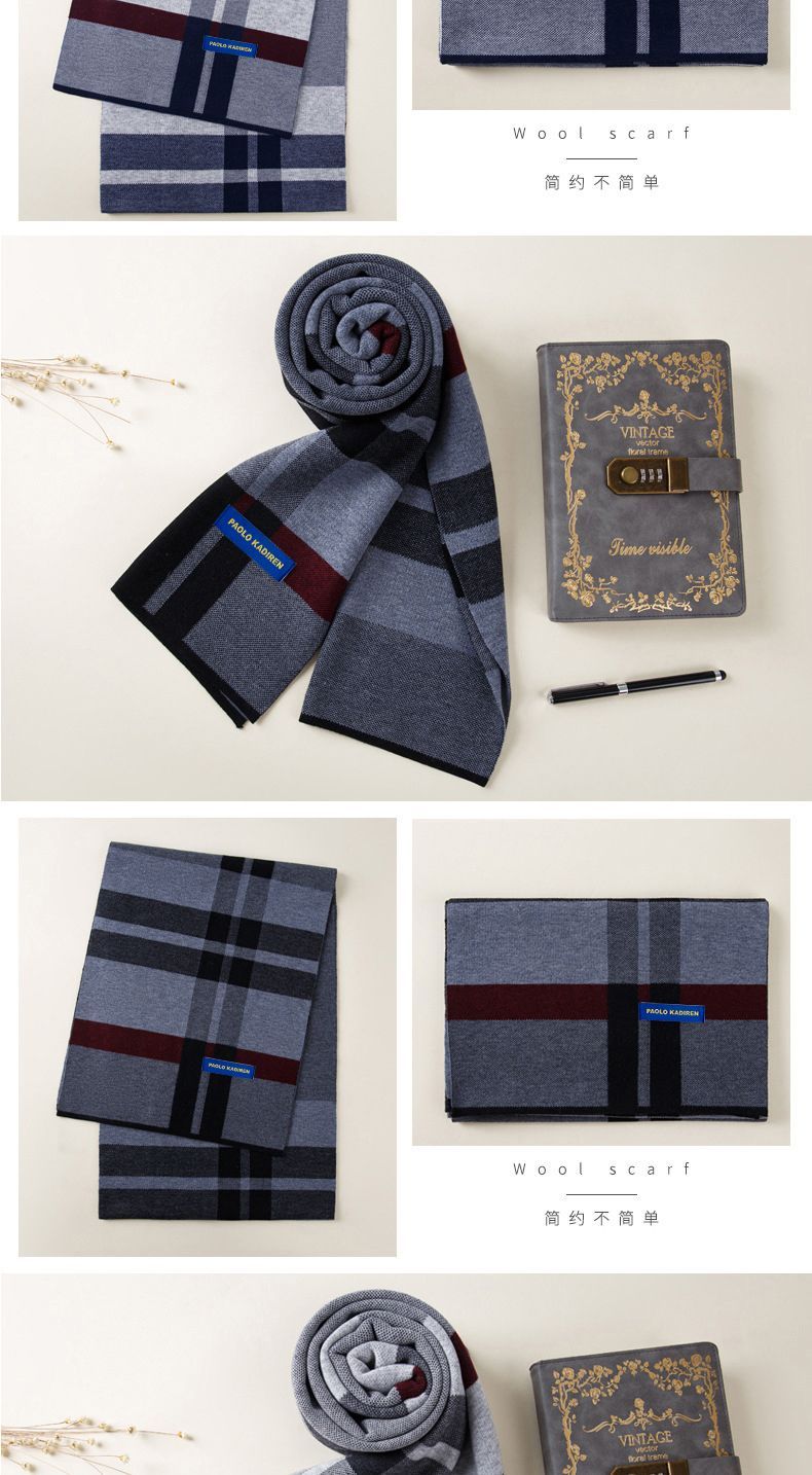 2024新款羊毛围巾男士冬季男韩版百搭保暖格子围脖礼盒装生日礼物