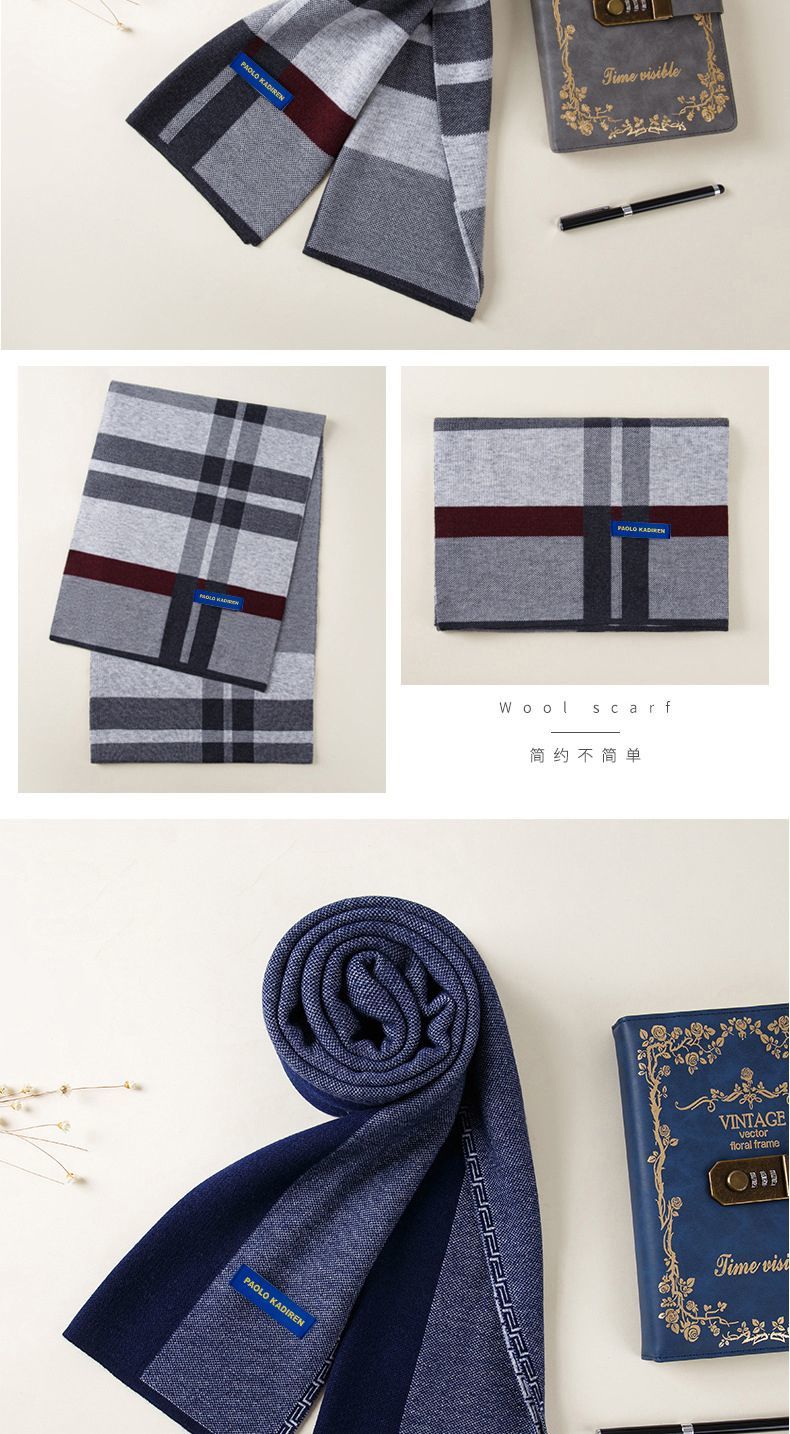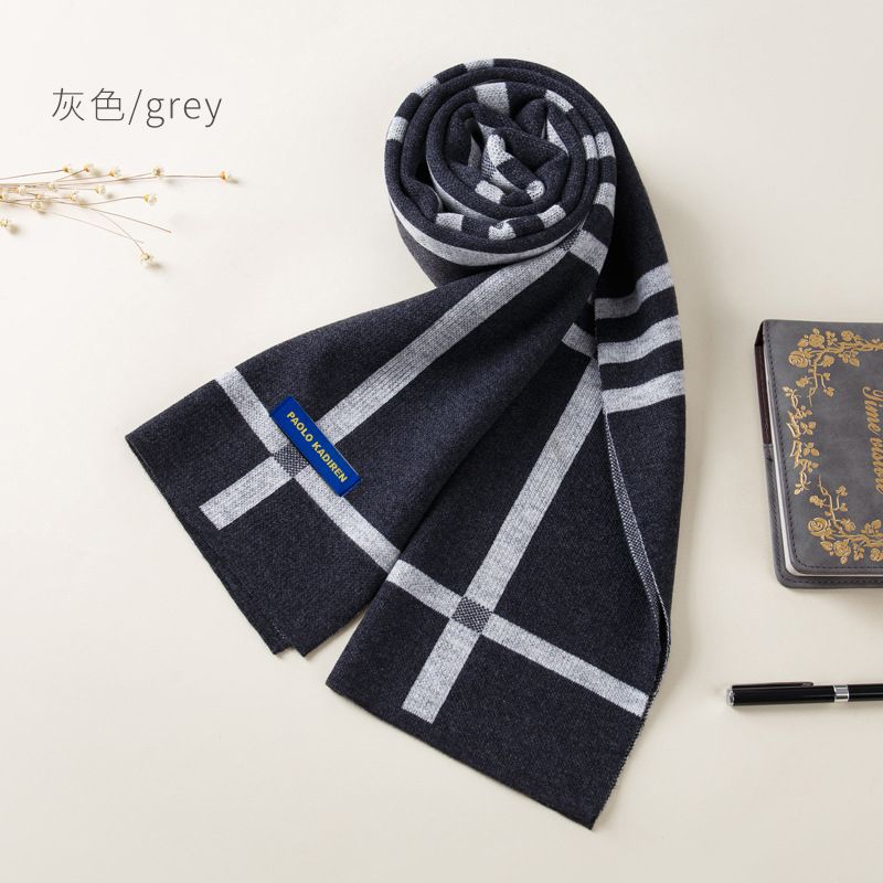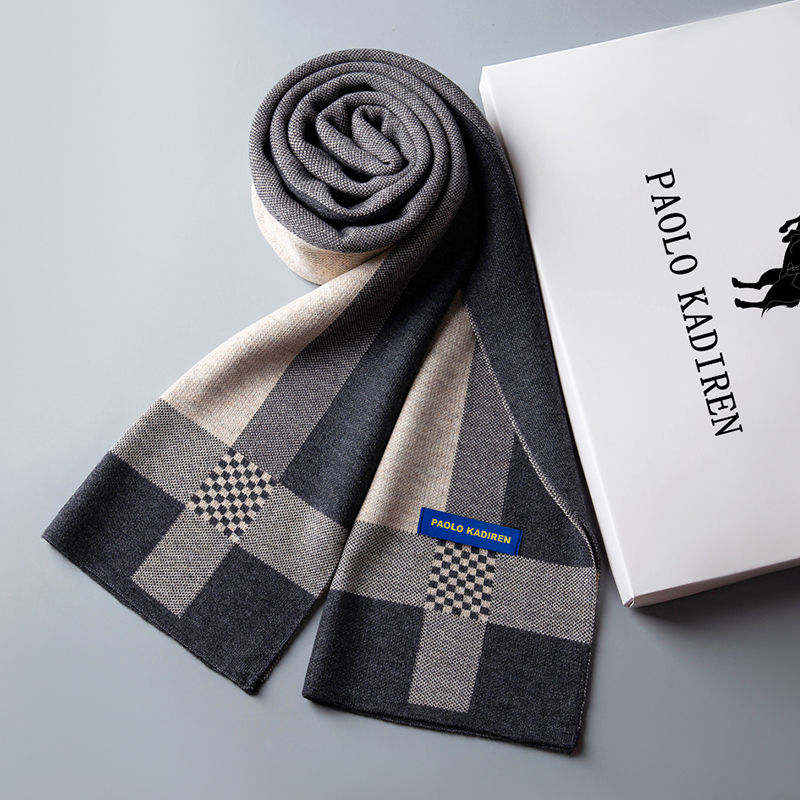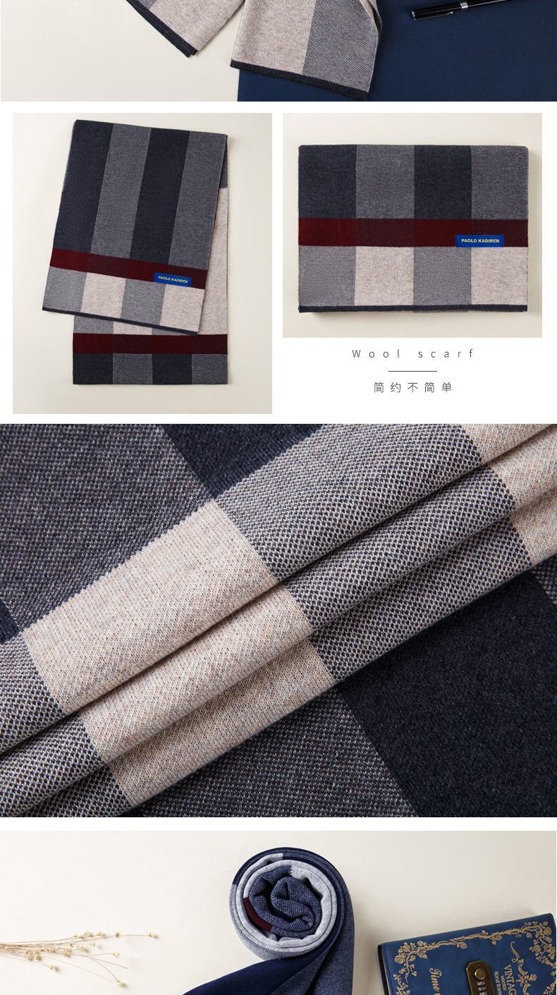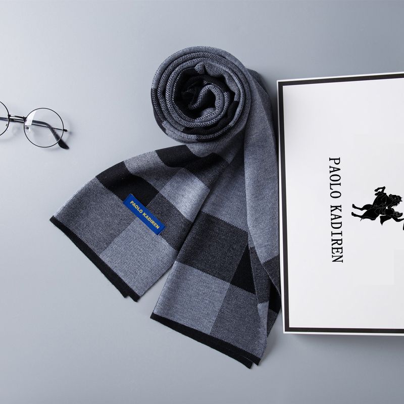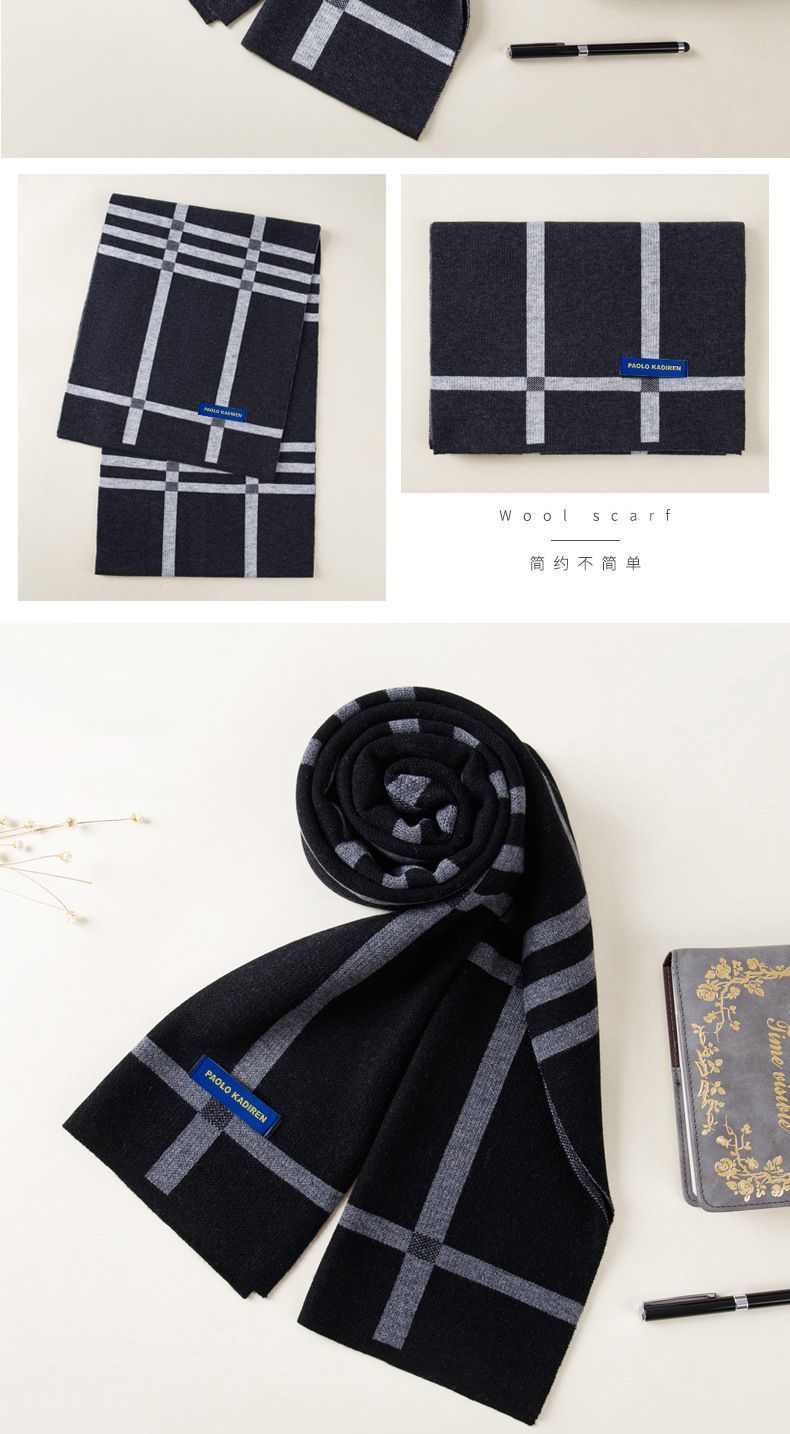2024新款羊毛围巾男士冬季男韩版百搭保暖格子围脖礼盒装生日礼物