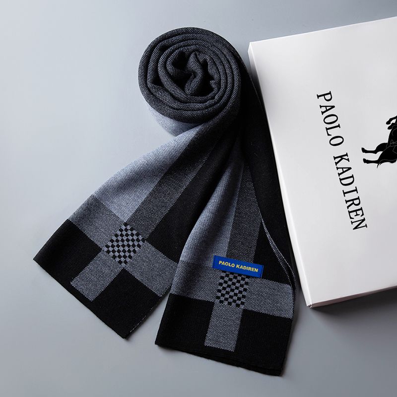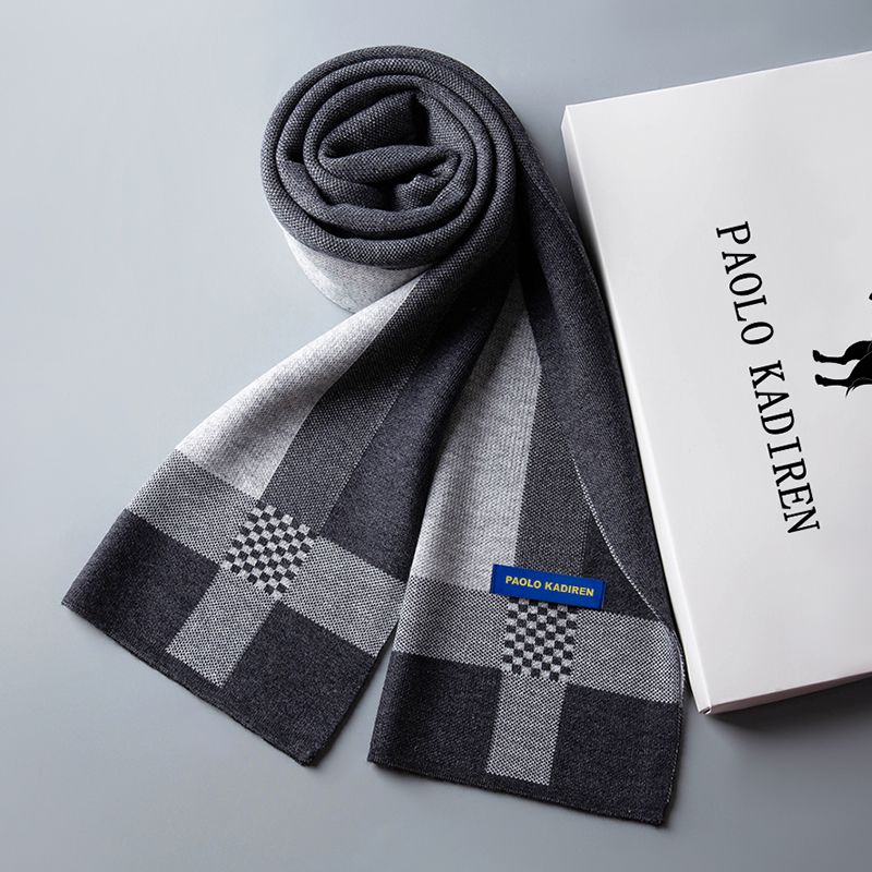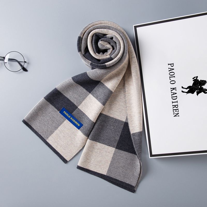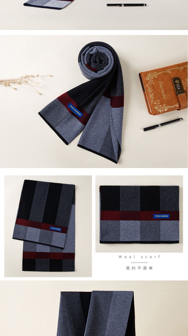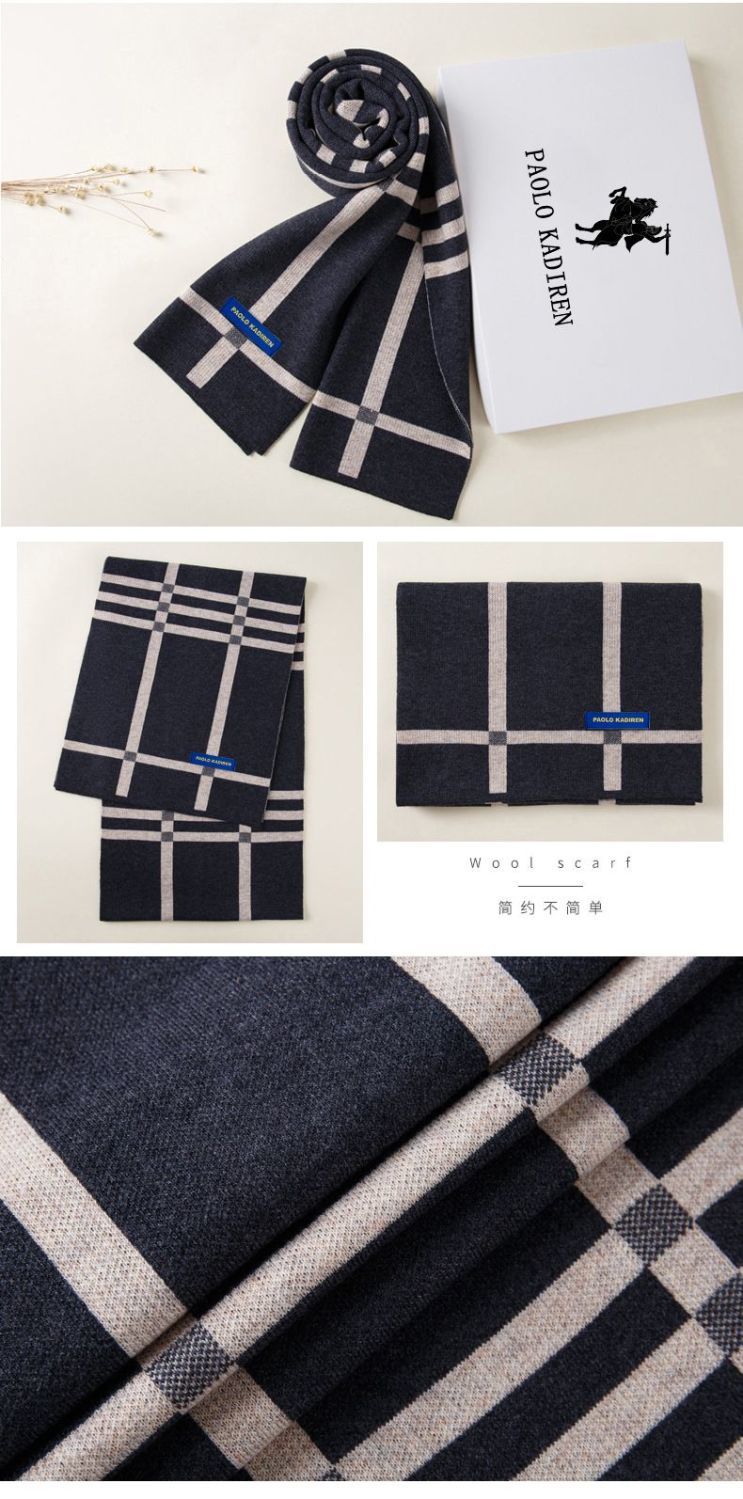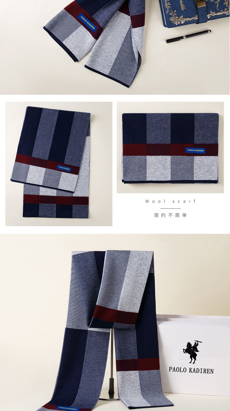 2024新款羊毛围巾男士冬季男韩版百搭保暖格子围脖礼盒装生日礼物