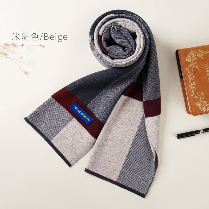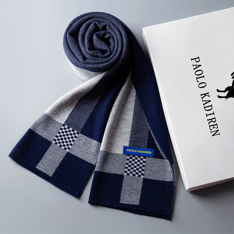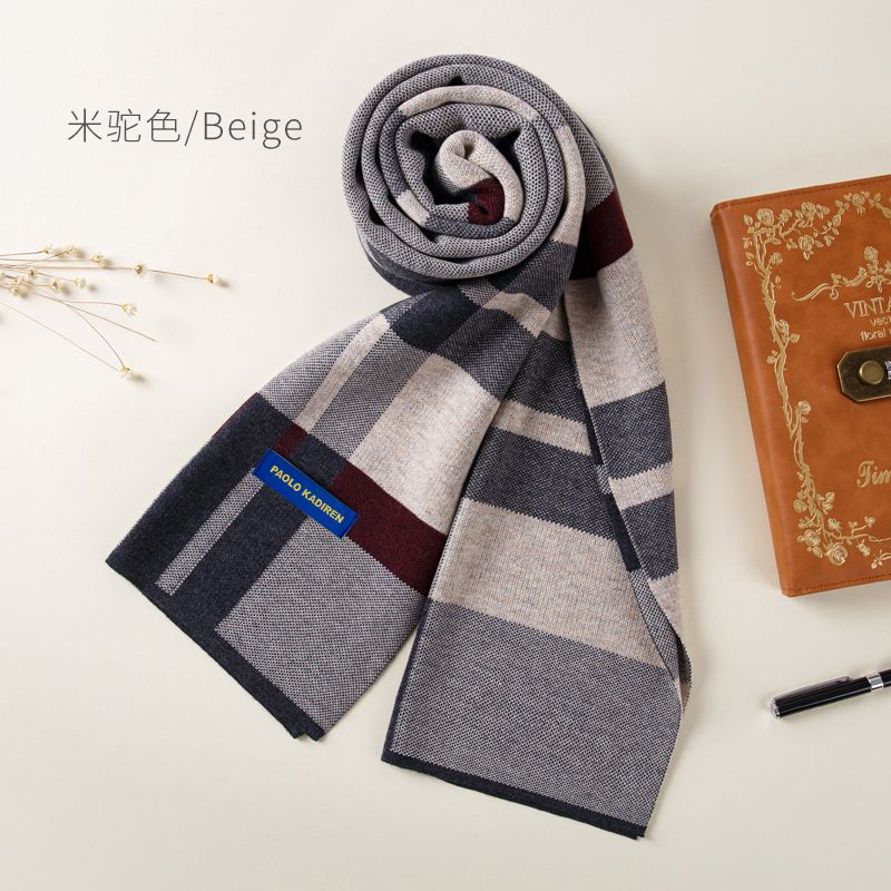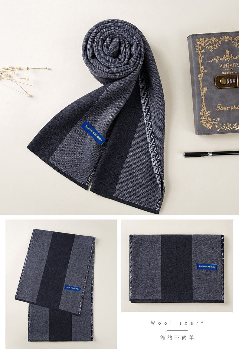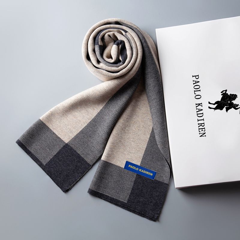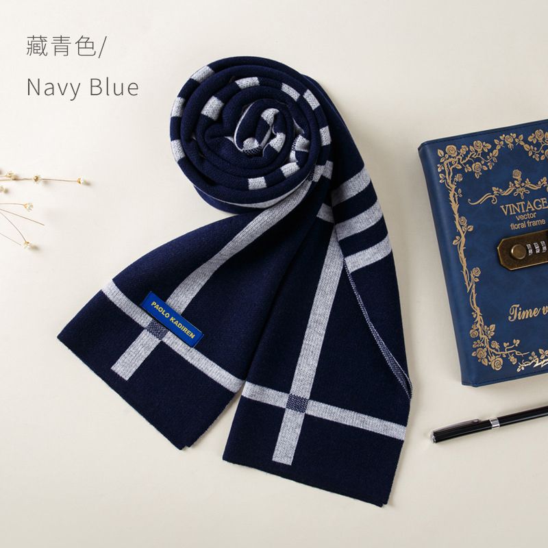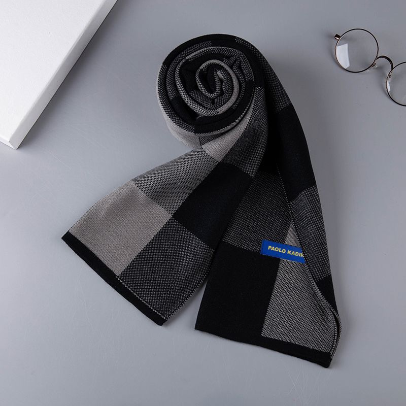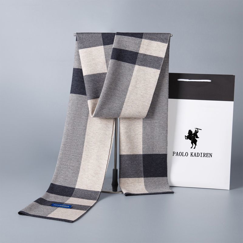2024新款羊毛围巾男士冬季男韩版百搭保暖格子围脖礼盒装生日礼物
