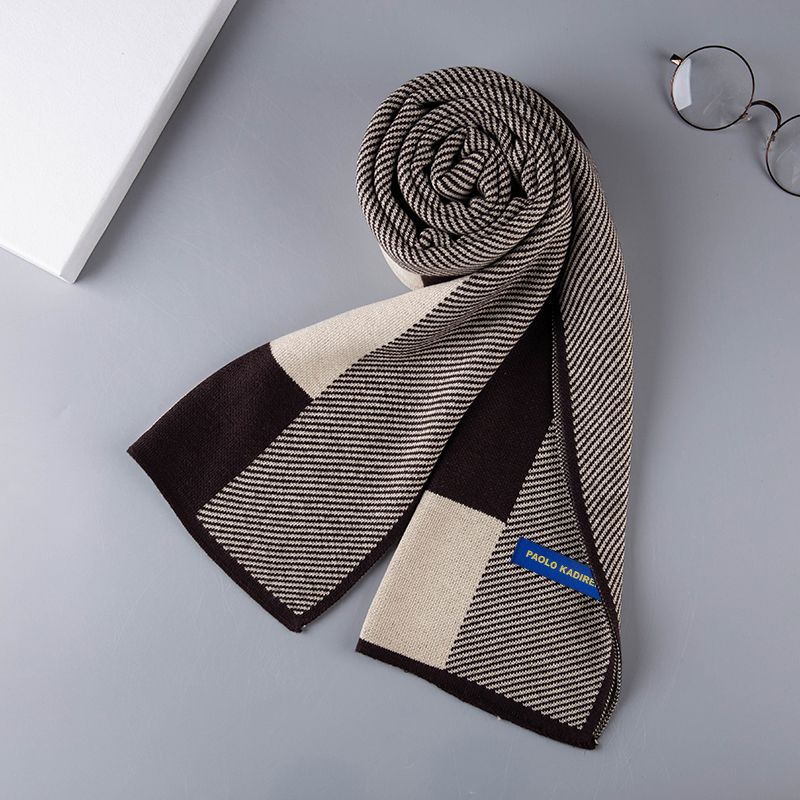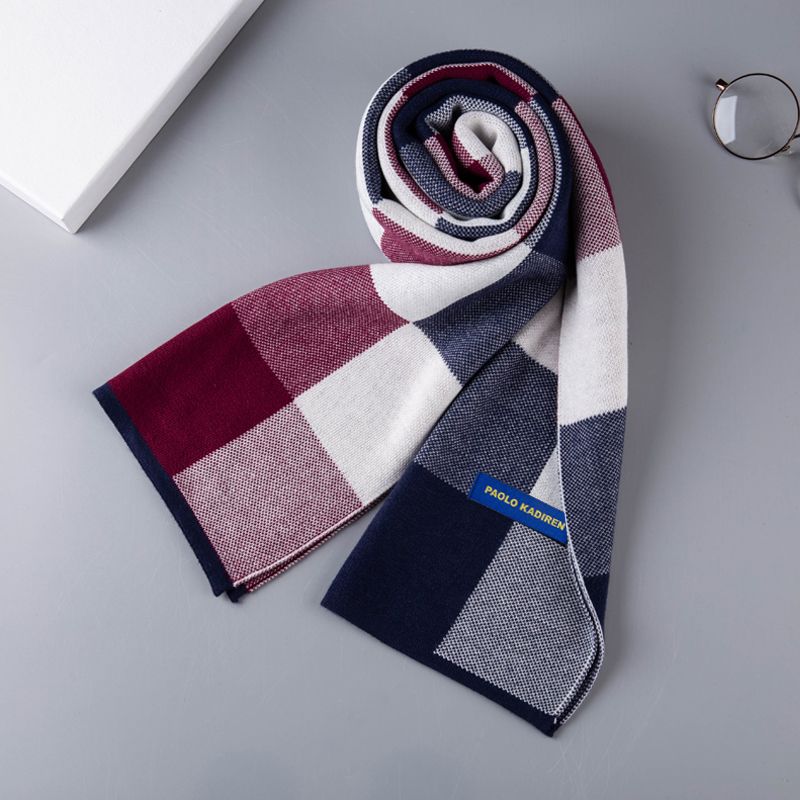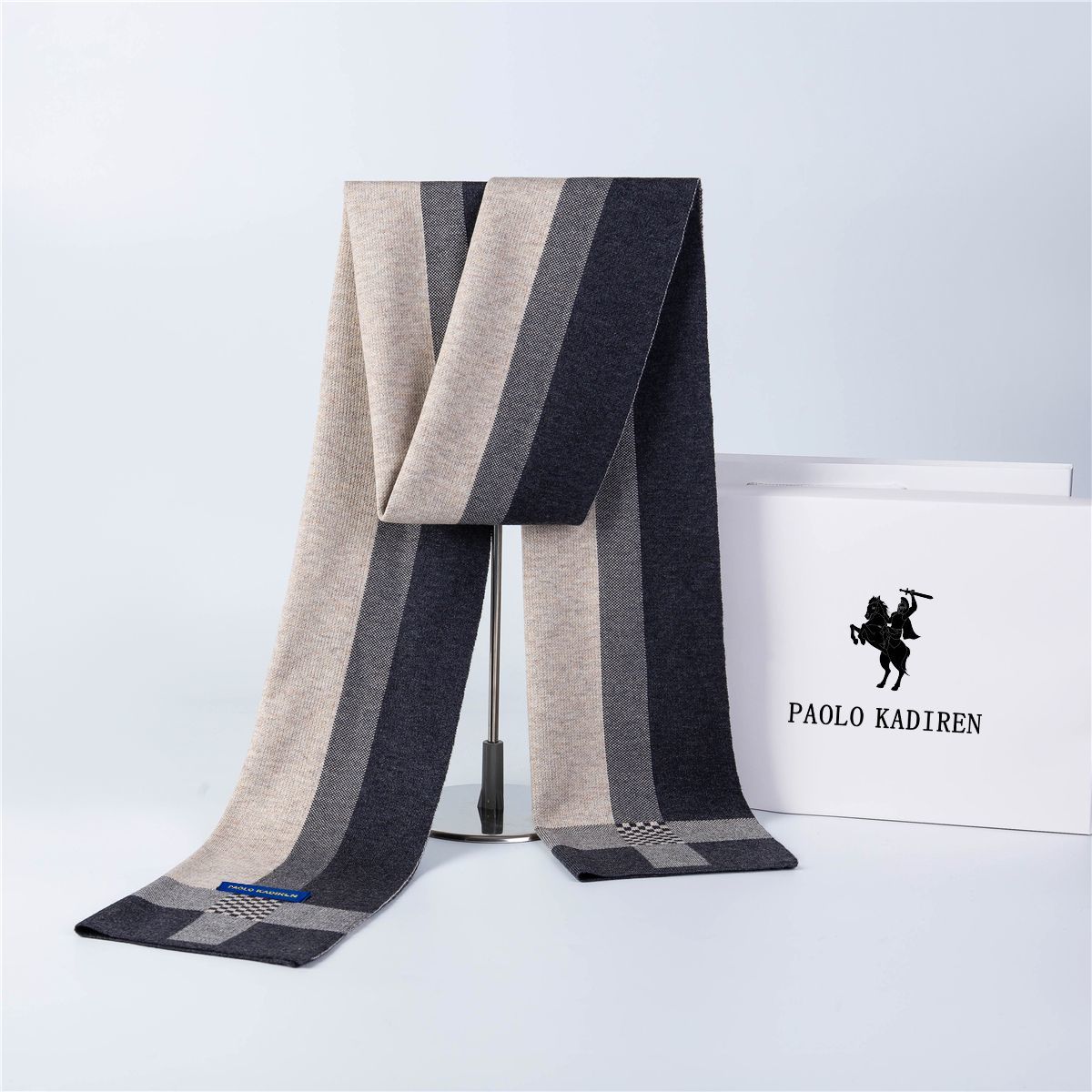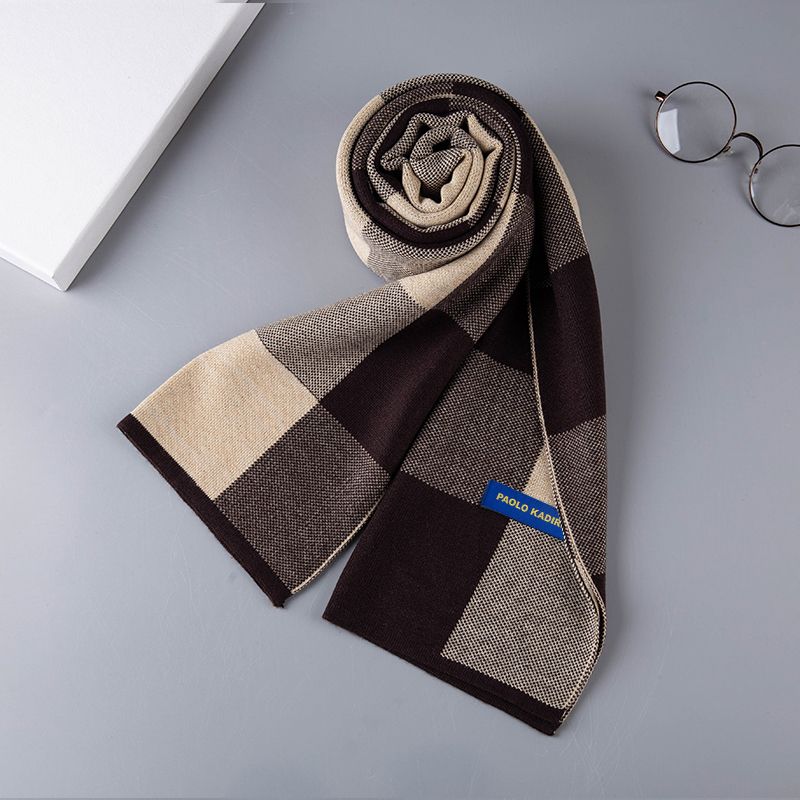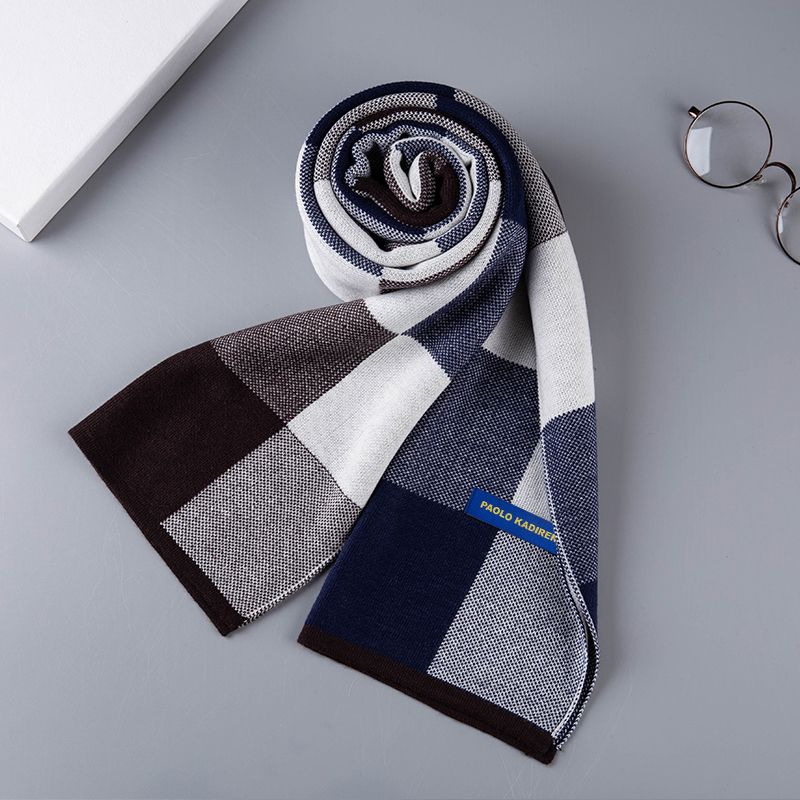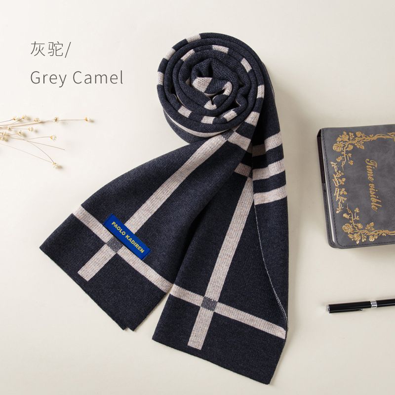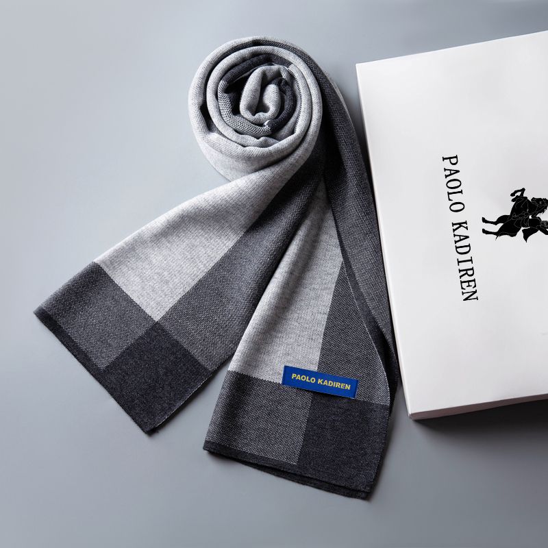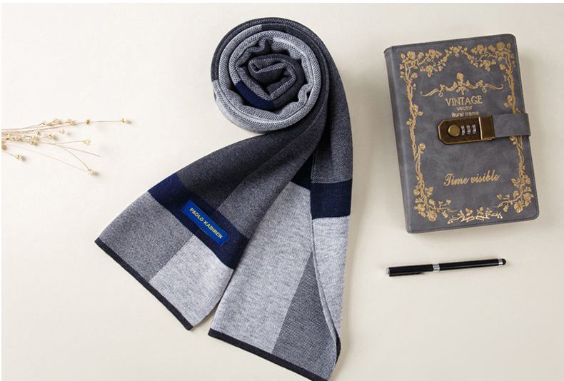 2024新款羊毛围巾男士冬季男韩版百搭保暖格子围脖礼盒装生日礼物