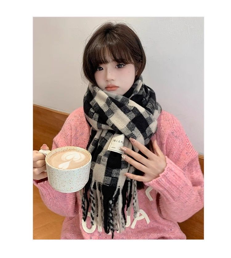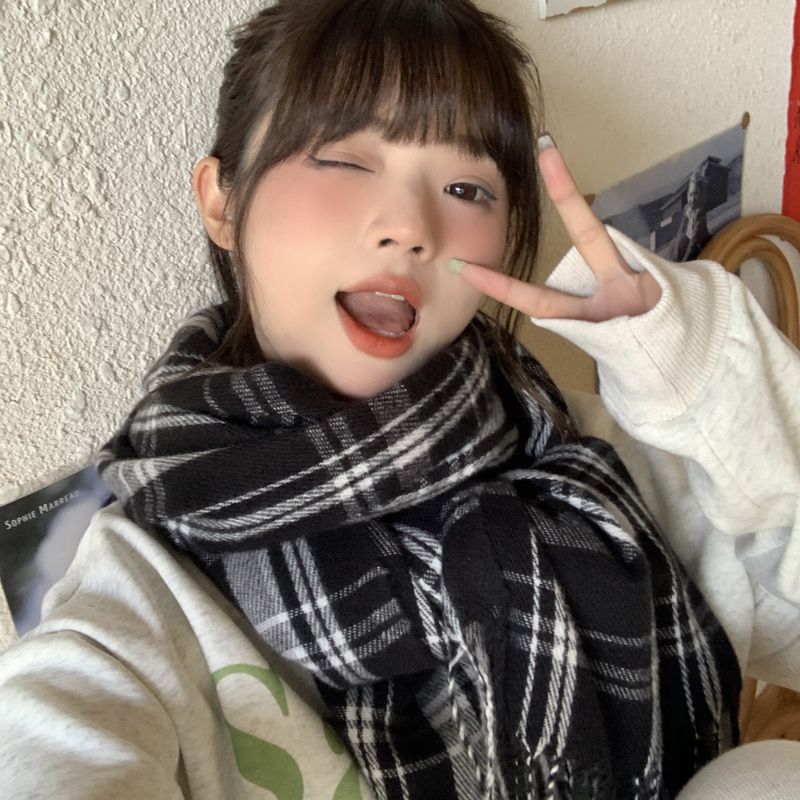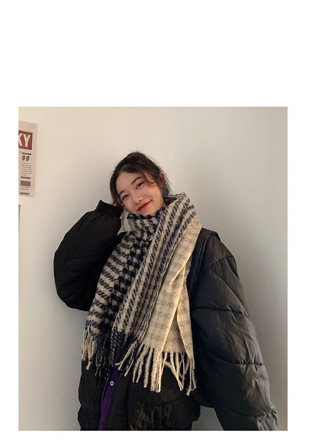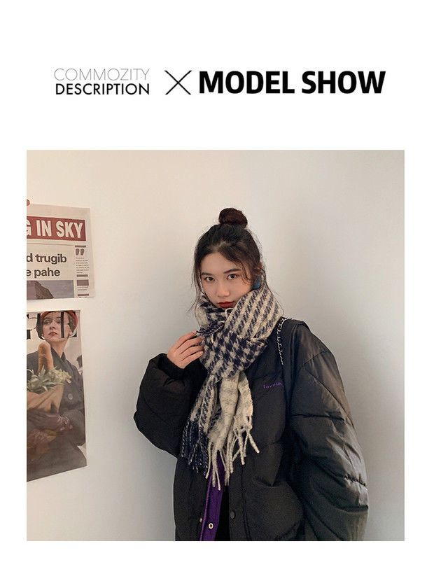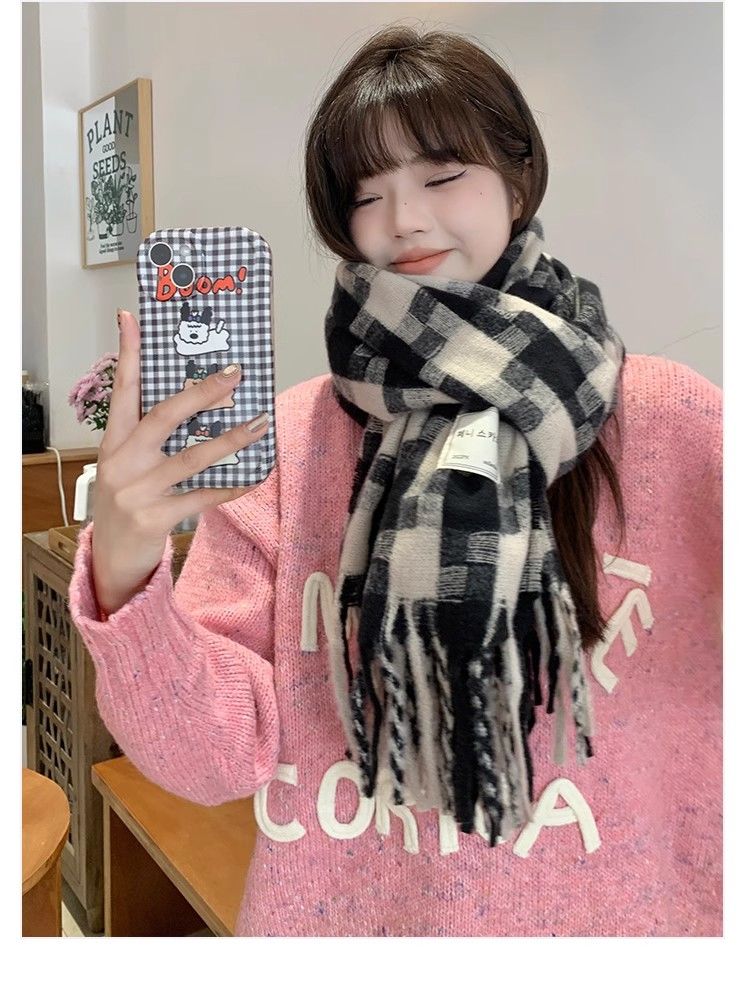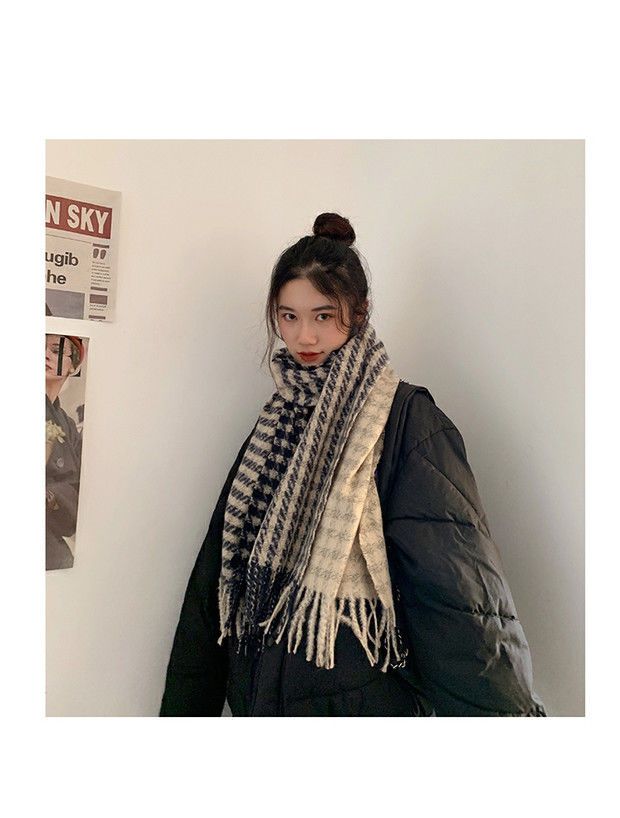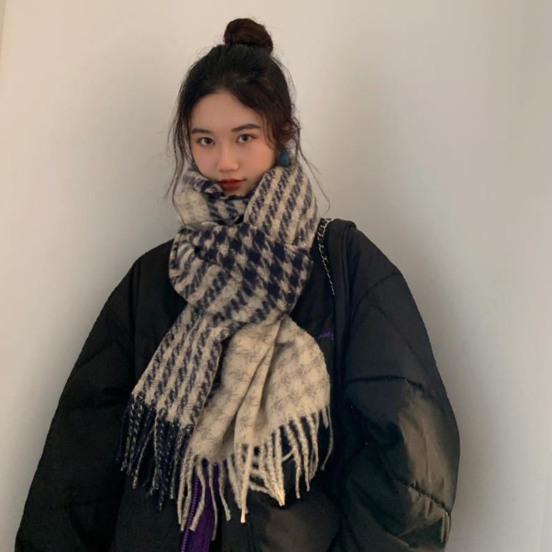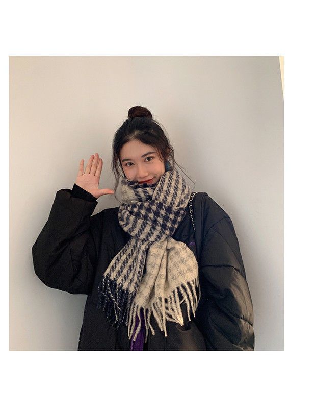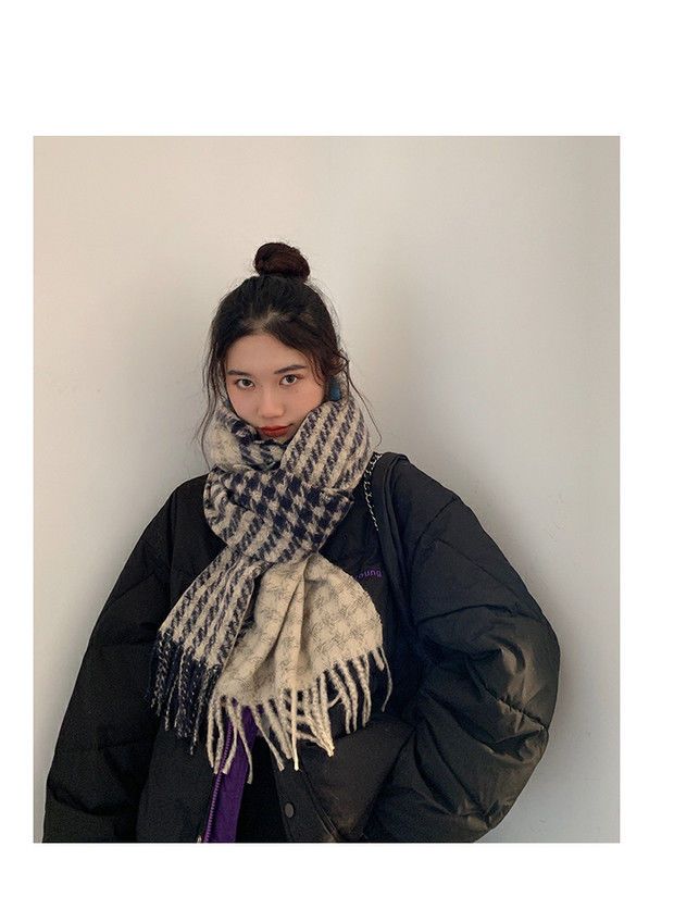 千鸟格子ins围巾女秋冬季2024新款高级感厚实百搭韩系保暖围脖男